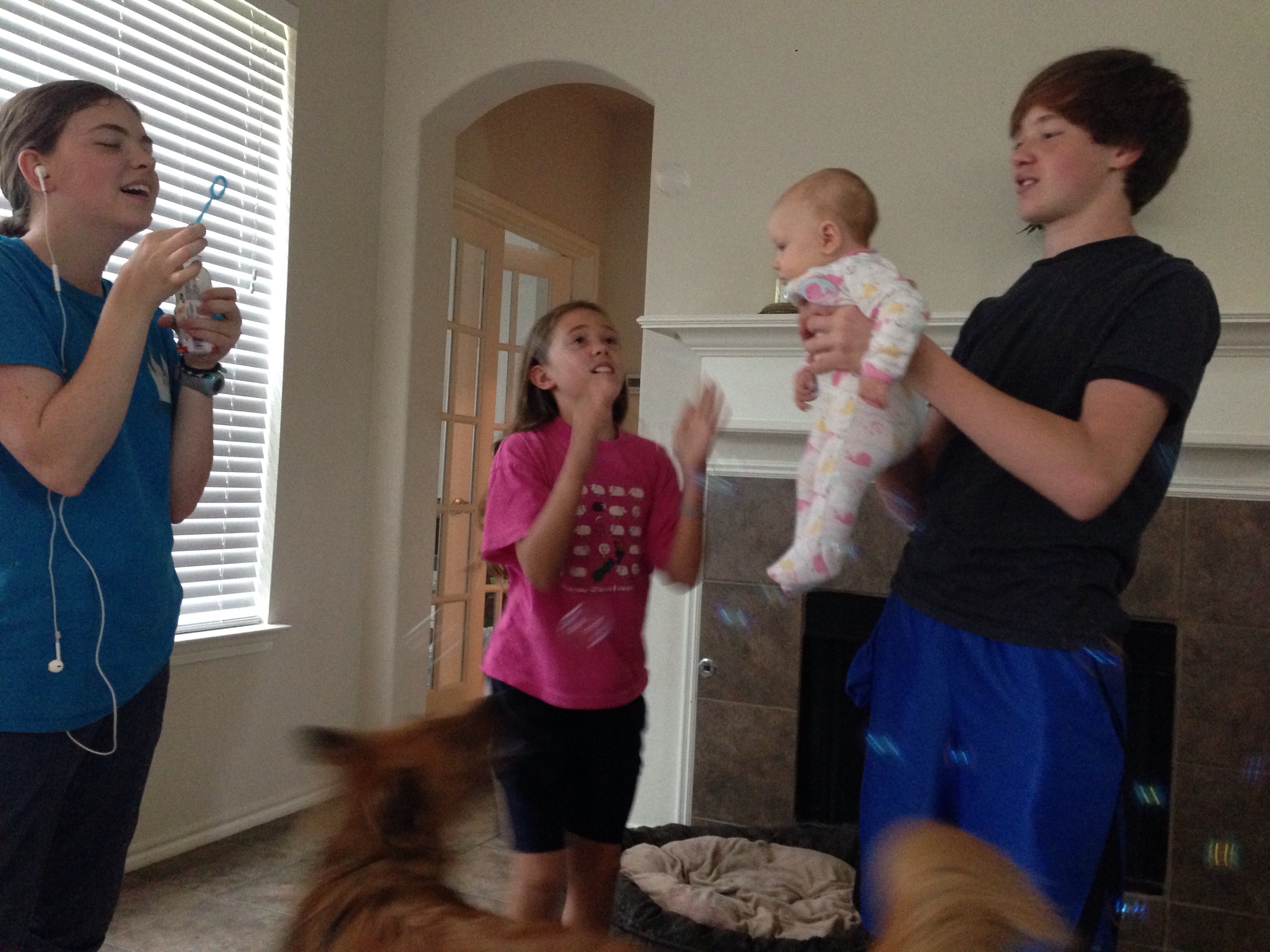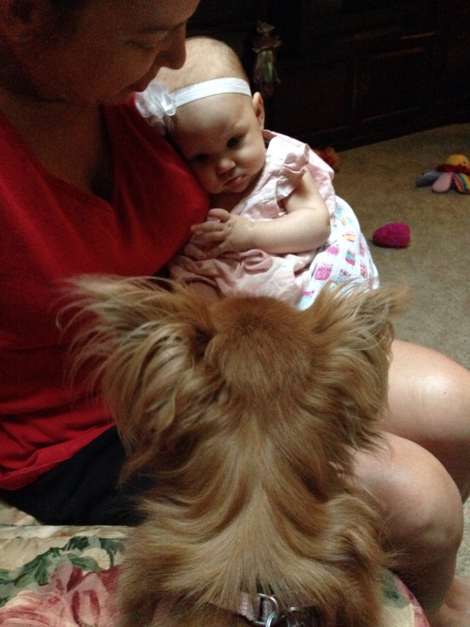 With Big Alex off at A&M, we thought it would be fun to surprise Ms. Nicole with a visit. Lucy was a bit fussy, but we got in a little happy time with her. It was hilarious to see how protective the dogs became of Lucy. Especially Brandi. She acted just like a little fur covered mommy. When Lucy would cry, Brandi would get all concerned.