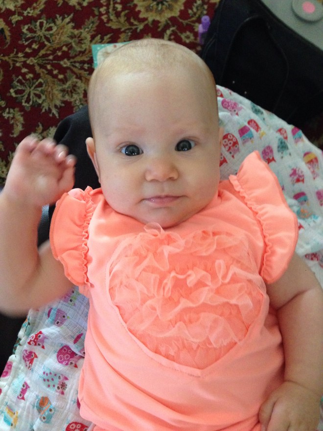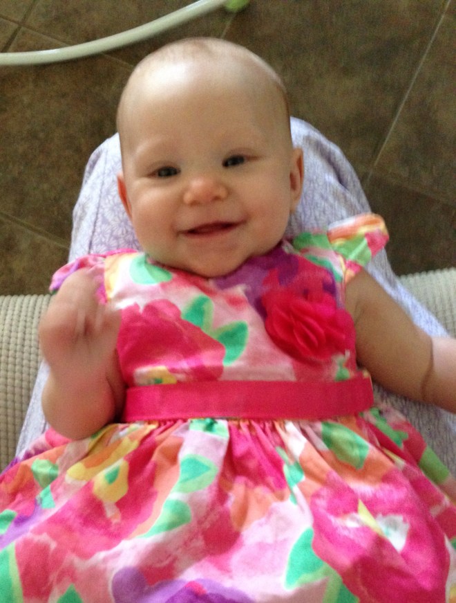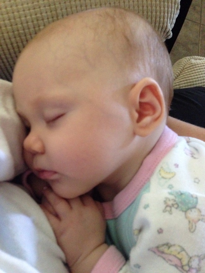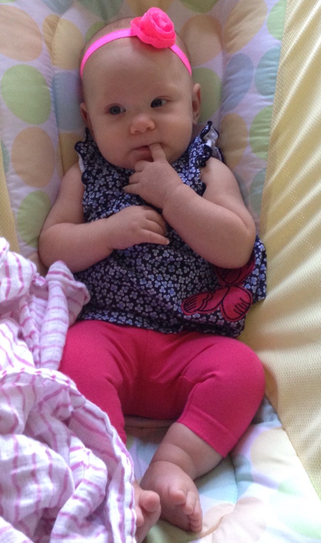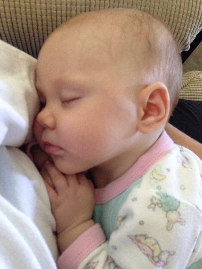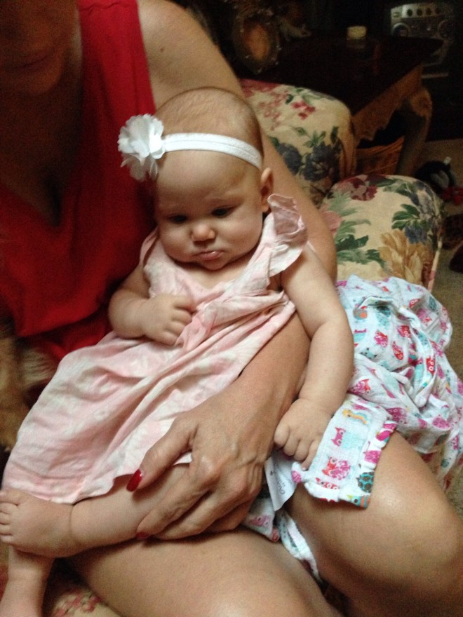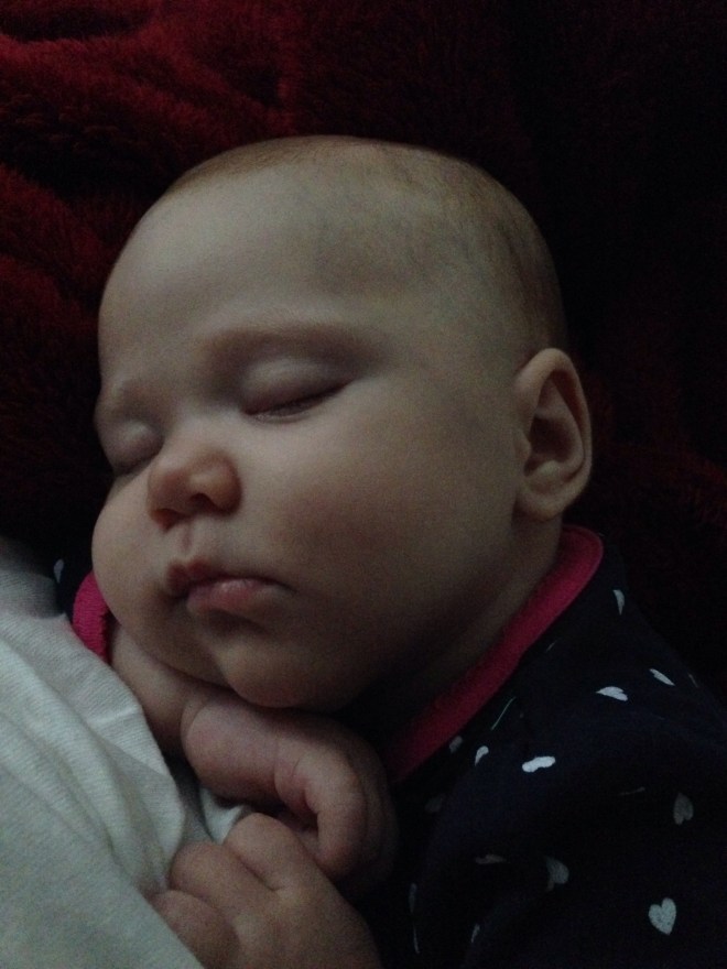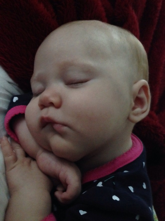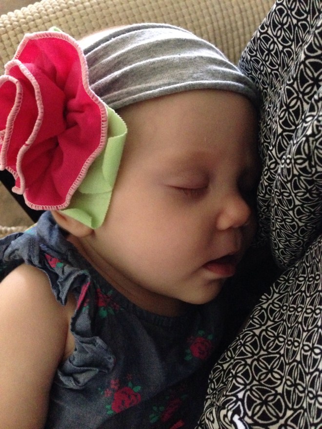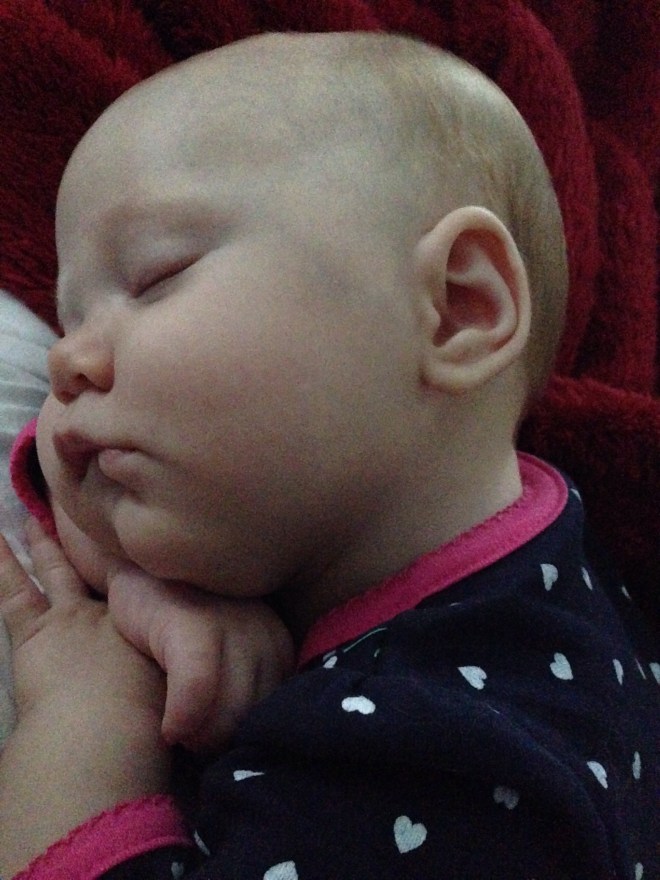 Not sure if it is still her shots or something I ate, but boy Lucy has had a rough past 24hrs. She started really crying early afternoon yesterday, and that continued pretty much the rest of the day. She even had a hard time going down for the night, which isn’t like her. Then, she woke up so many times I lost track of how many times I got up with her. The only thing that actually helped her stay asleep was for me to hold her. Great for her, but that ended my night’s sleep. I LOVE holding my sweet little girl, I just hope I’ll make it through the day today.