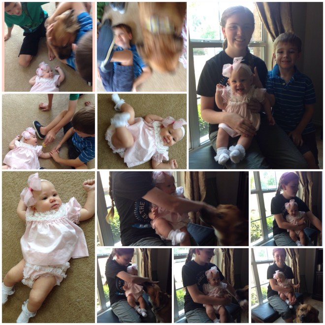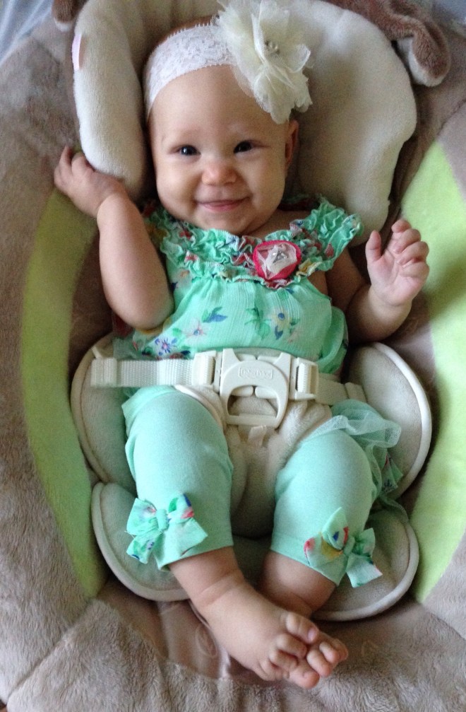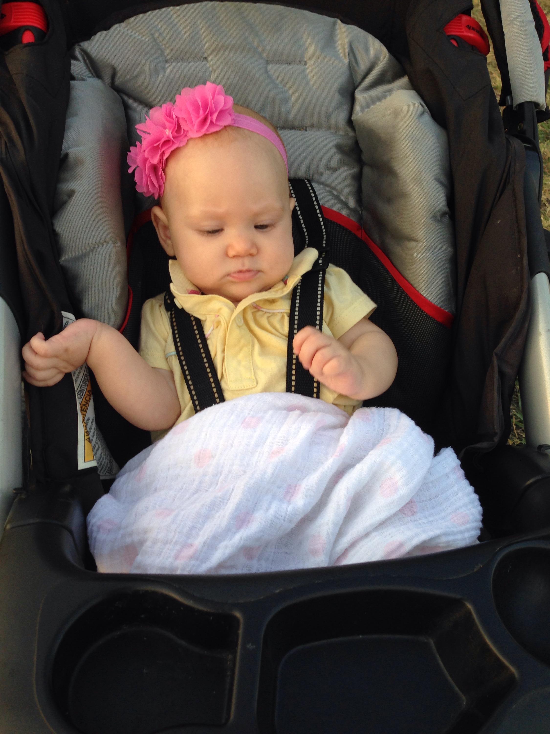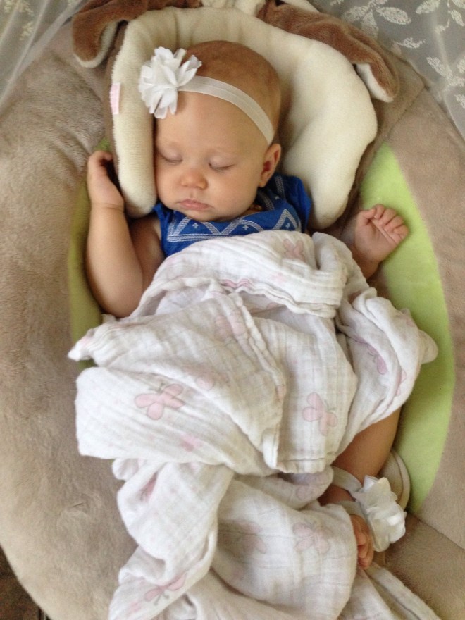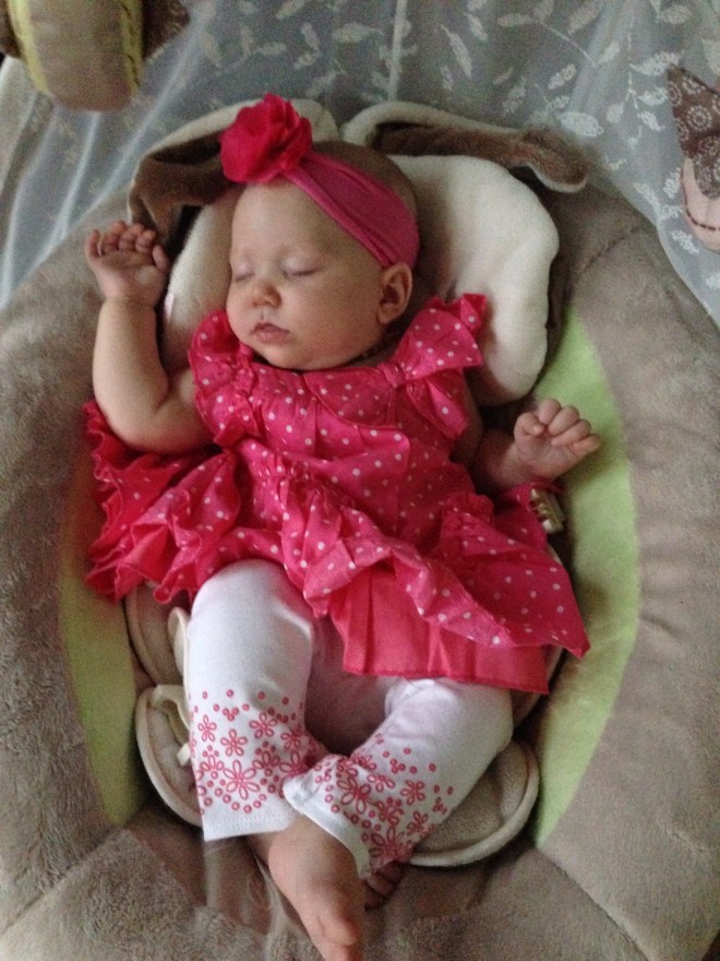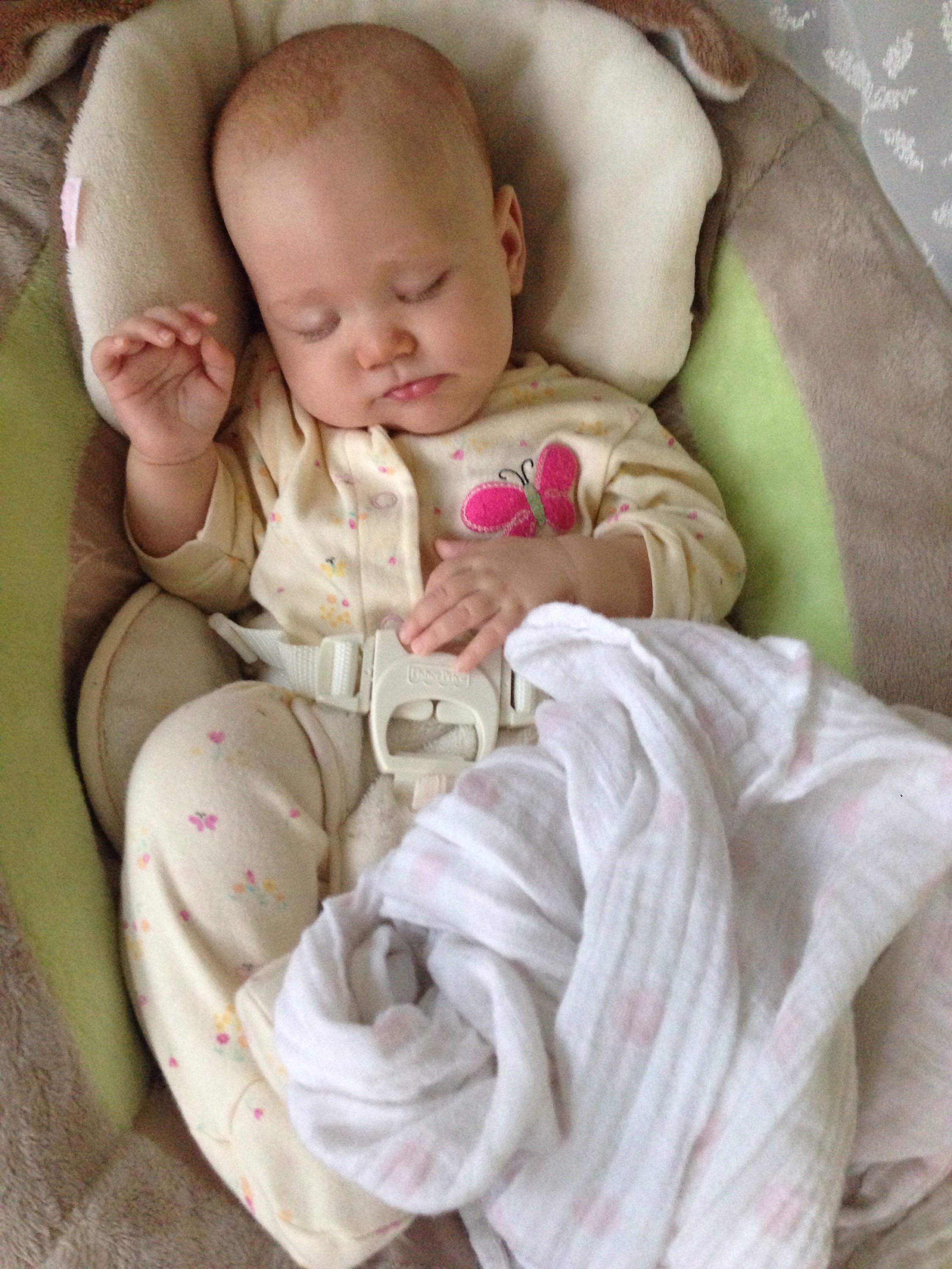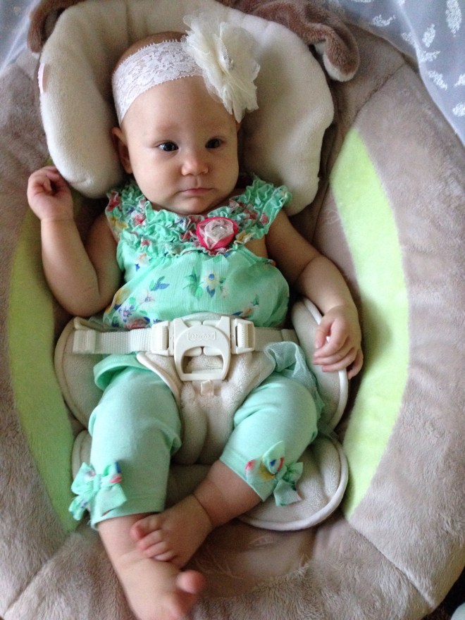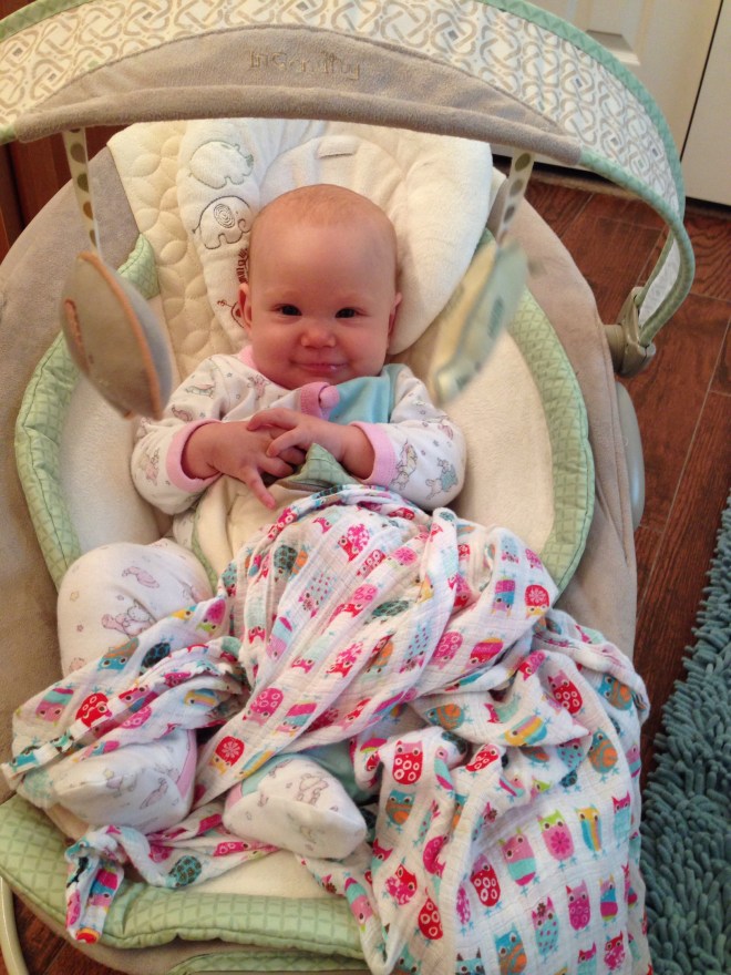 Lu actually played in her bouncer this morning while I got a shower! Nice treat! 😊