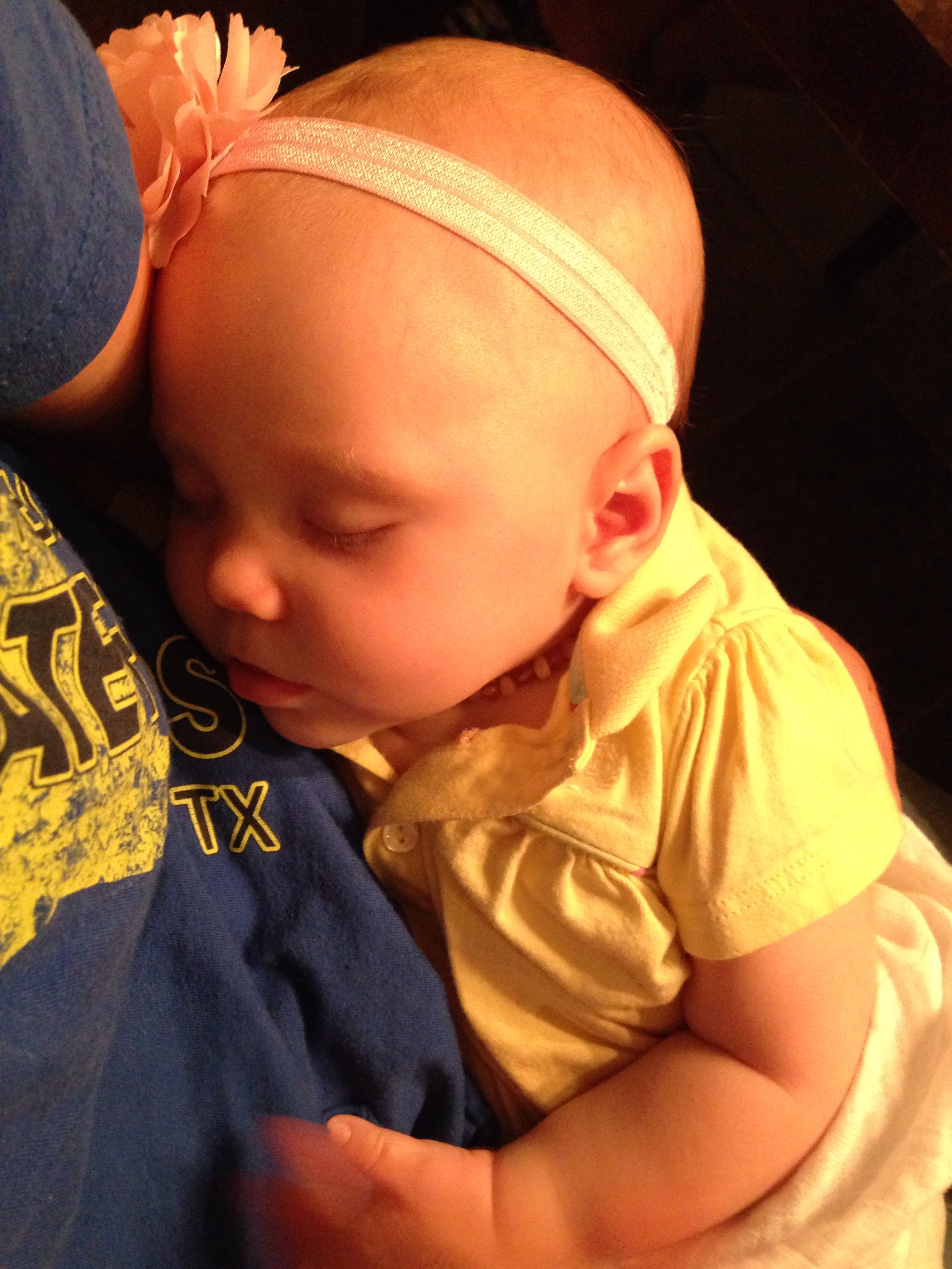Lucy got her first owie today. Not quite sure how she did it, but she now has a bruise on the right side of the tip of her tongue. I think she might have chomped her tongue between her teether and her gums. Luckily she does not seem too bothered by it. It just looks bad. She had a fantastic day today. For most of the day, Lucy was very happy, smiling a lot and even laughing several times. She was only fussy when she was getting tired, hungry, or the dog woke her up from her nap. Tonight, we face timed Brianna and Lucy really enjoy that! So nice to see Brie’s face.