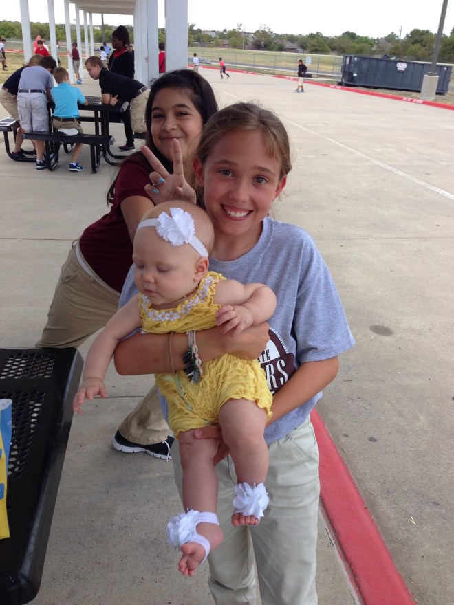 Today was Lucy and I’s first day to visit the kids for lunch. Natalie was chosen first out of the box, so we visited her. We had a great time! Natalie seemed so excited to have us there. Lucy loved staring at all the kids. They loved having her there too.