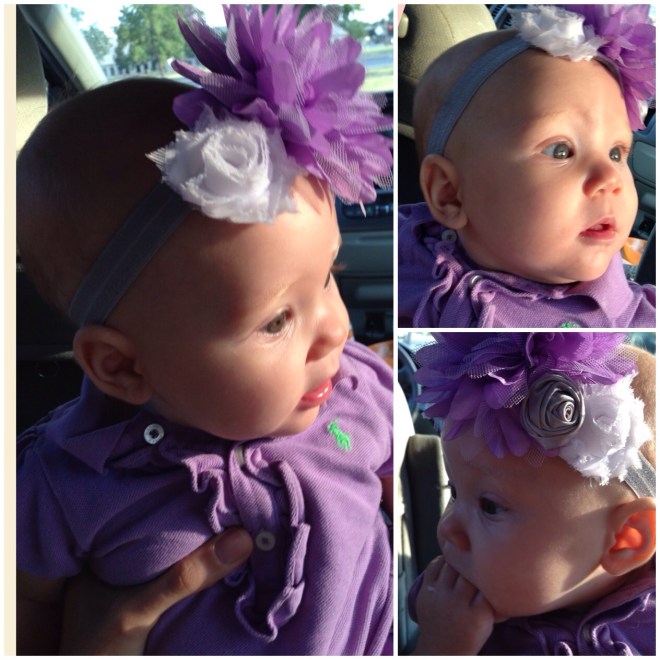 This past month has been so much fun! Lucy is laughing & “talking” up a storm. I am even convinced she can say Mama. Sam has heard her too, so I am not just going crazy or hearing things. She loves musical nursery rhymes, sitting up and down, eating her toes & trying to fit both of her fists in her mouth, getting tickled, and still Piano Guys Jurassic Park. Lucy is very good at rolling over both ways now, and tries to take off when she is on her tummy. (I want to slow her down.) She still does not sleep through the night consistently, but has come close a couple of times. I think we still need to get her tummy under control before that gets better. Lu also drools a ton off and on still, but no sign of teeth yet. Lucy loves to smile at everyone, but is also in a separation anxiety/stranger anxiety phase. If she doesn’t know you, she’ll smile, but then she’ll give you the big lip and probably cry. If she wants Mom, she better get me soon or Lucy will cry so hard she has a hard time catching her breath. Sam and I both feel it is a little early for this phase for her, but it has been 5 years since we have had an infant, so we might just not remember very well. We all love her so much though! She makes the entire family smile. Happy 4 Months Sweet Baby Girl!