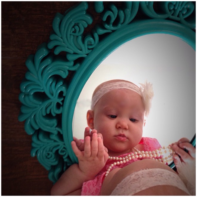 Since yesterday was a bit crazy, I did not have time to take pictures of Lucy for turning 4 months. Today, we made up for that. She woke up in such a good mood, we played dress up all morning. What a sweetie pie!
