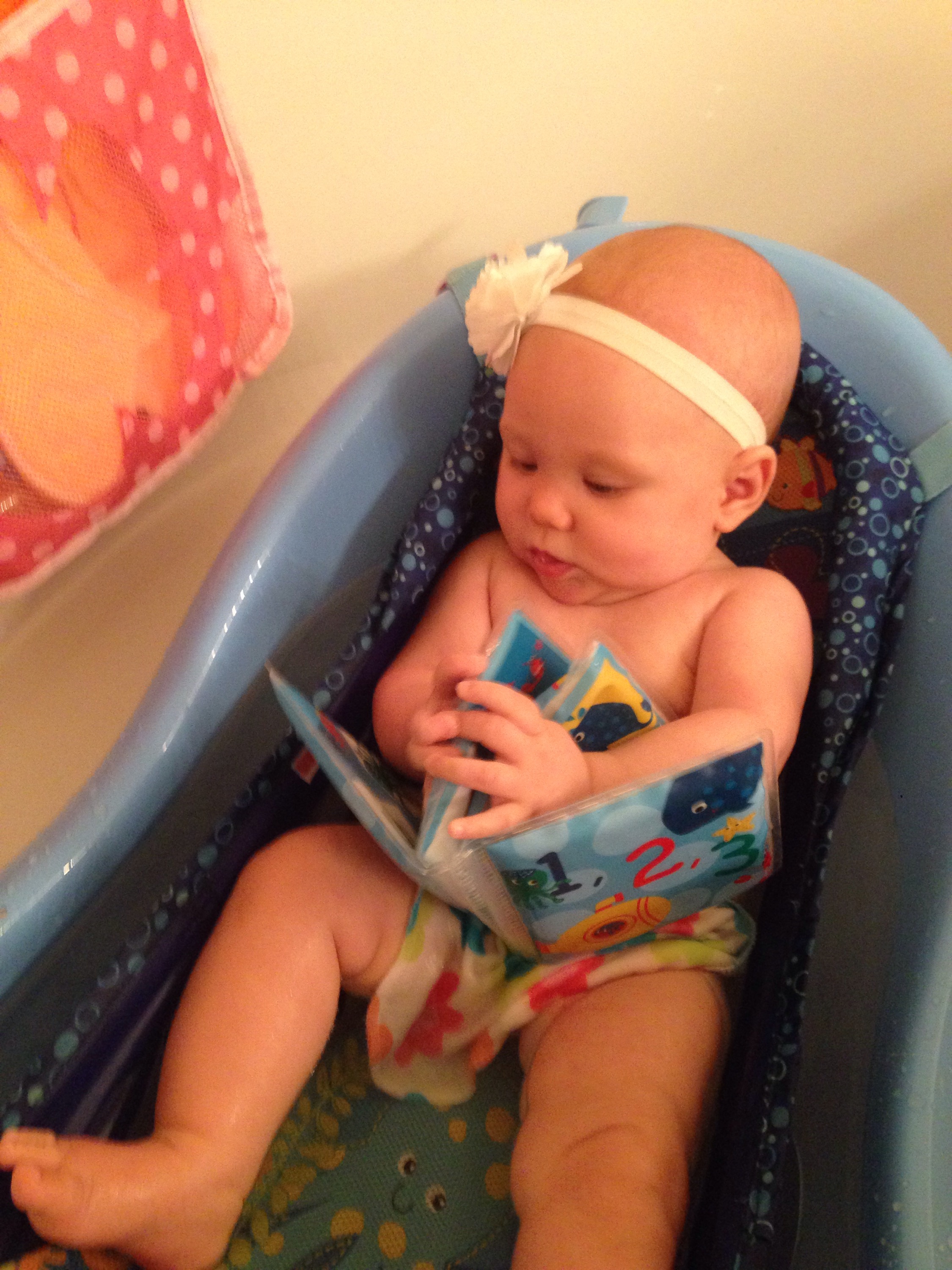 Sam’s friend Michael, from EDS, has a little baby girl just a few days younger than Lucy. This week Sam had lunch with Michael and his family gave Lucy a special surprise… Bath Toys! They are so incredibly cute! Tonight Lucy got to play with them for the first time, and she LOVED them, especially the bath book! She was talking away to it. We are so grateful to Michael, Brandi, and baby Maedreigh for the awesome gifts! That was so sweet of them!π