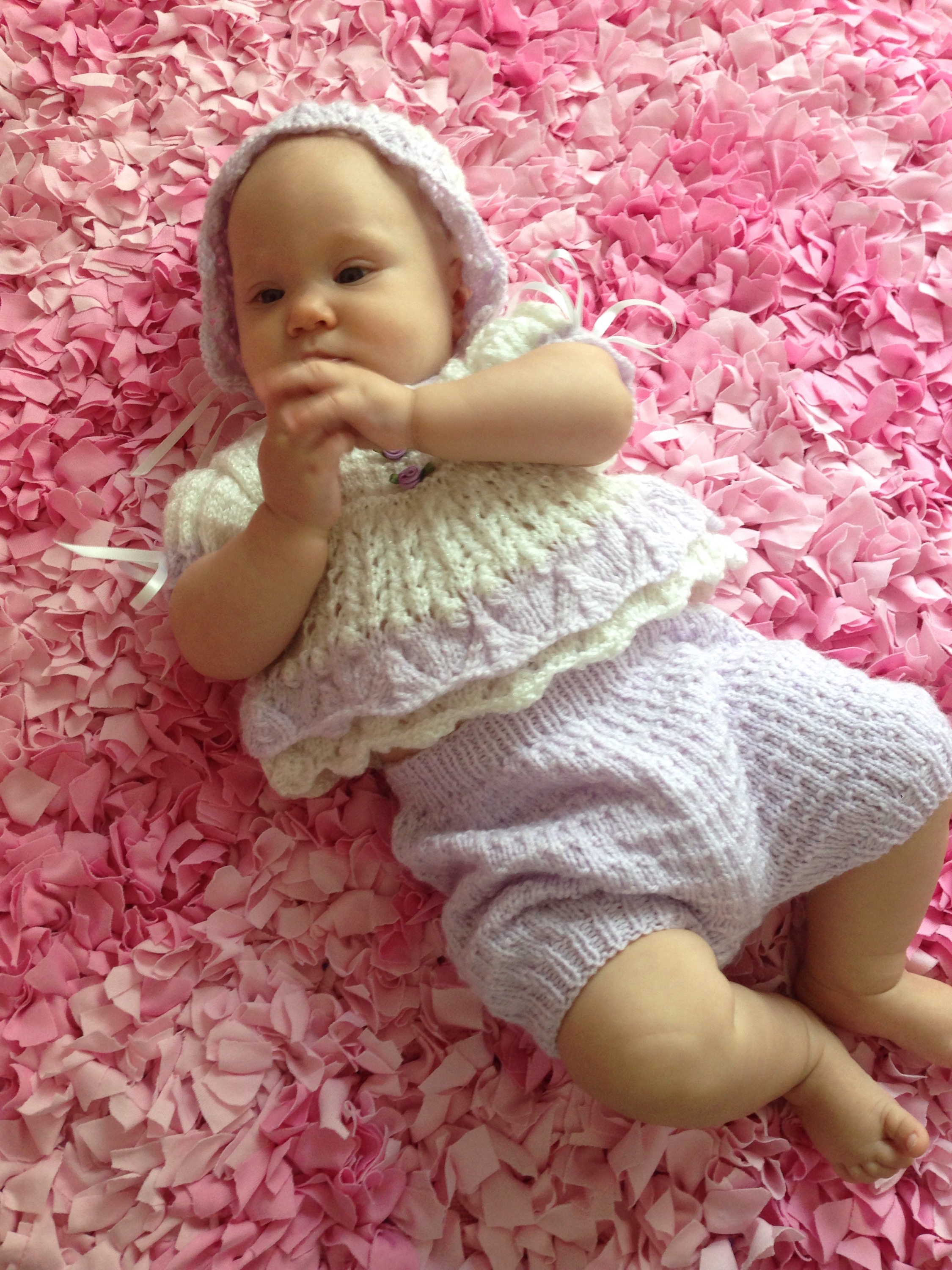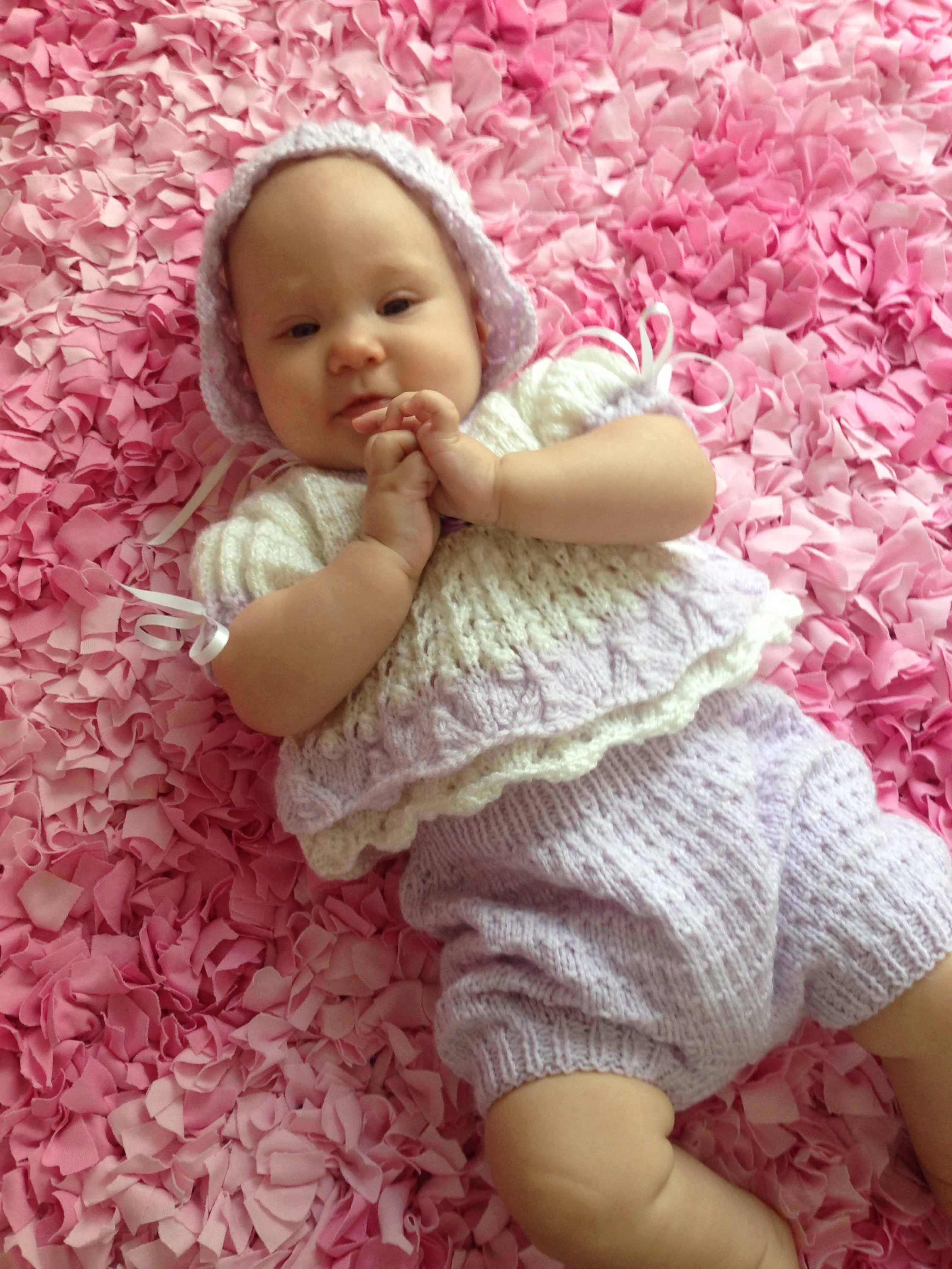 With each baby we have had, the hunt for a Take Home Outfit is always an adventure. I think only Brianna and Alex actually had one that worked up to this point. I ordered this little outfit for Lucy from London. The pictures were very hard to see exactly what it looked like, but I thought it was cute and unique. When it arrived, it was not what I thought. Also, the sizing I could tell was going to be a huge issue. The bottoms looked very big, and the “dress” looked very small. Trying it on today, things still didn’t work. π Lucy still does not fit in the very large bloomers, and the dress is obviously a shirt now. The bonnet is also very small. Oh well, I tried. Little chubbs missed the mark for this outfit.