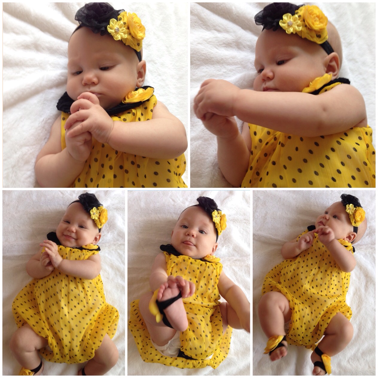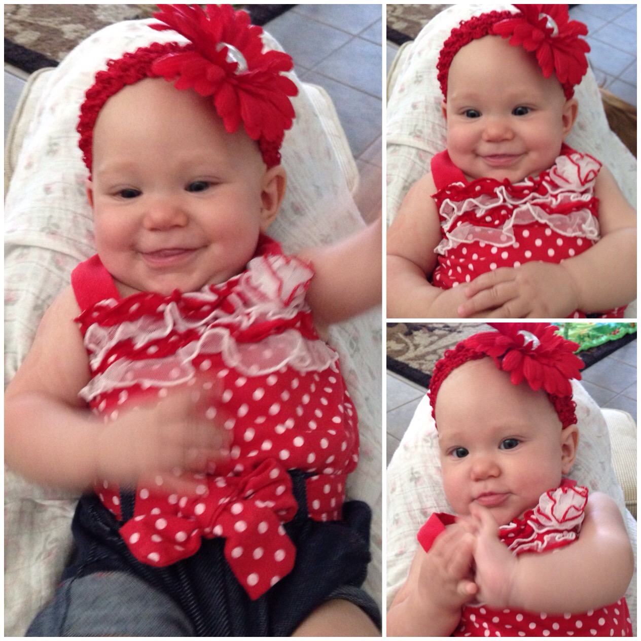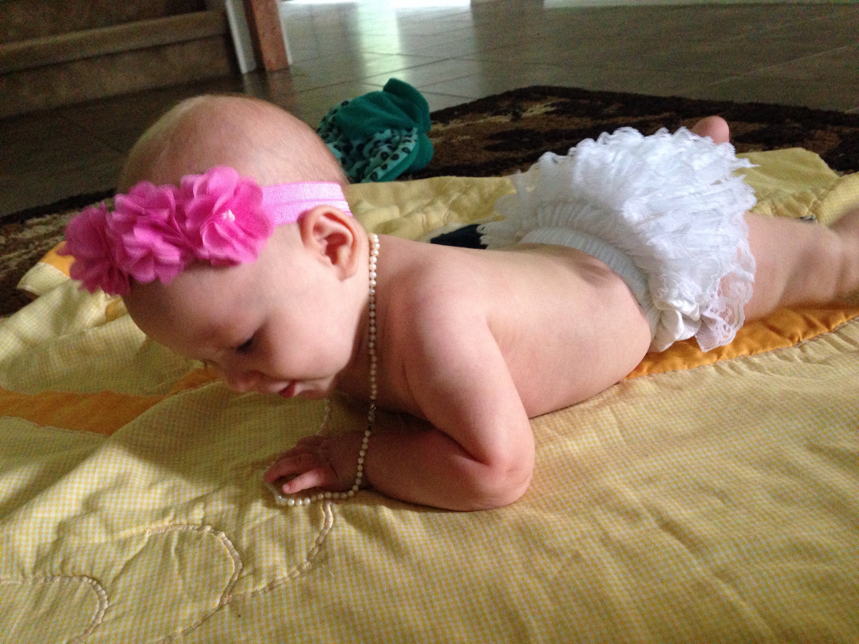 Since yesterday was a bit crazy, I did not have time to take pictures of Lucy for turning 4 months. Today, we made up for that. She woke up in such a good mood, we played dress up all morning. What a sweetie pie!