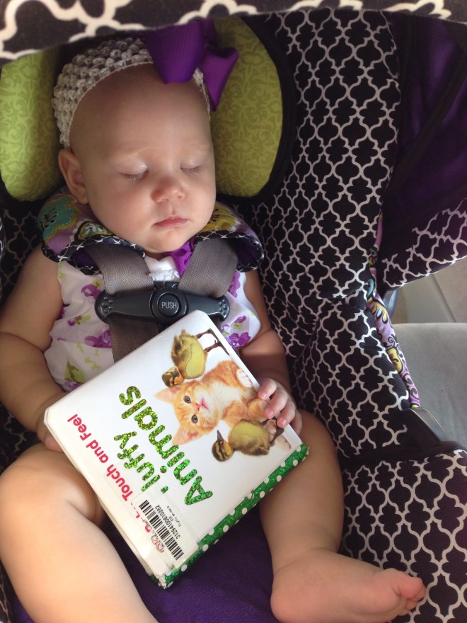 Storytime sure wears Lucy out! She always sleeps so hard after we get home. Today, she fell asleep before we even got home, with her library book in her hand still. 😆 I think I am having dejavous of some other Hardy kid.