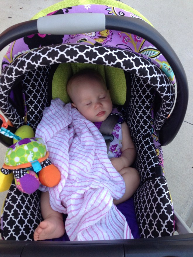 When Lucy woke up, she was ready to play. Her absolute favorite toy right now is this darn VTech carousel that her Aunt Emily gave to her. Lucy loves it so much, but it is really age inappropriate for her. It is made of hard plastic, and often falls in her face. Lucy tries to play with it, but often times gets very frustrated and starts yelling at it. I’ve tried to hide it to avoid such issues, but when she catches a glimpse of it, her arms and legs start swinging and she starts panting for it. If I walk away without letting her see it, she will start to cry.