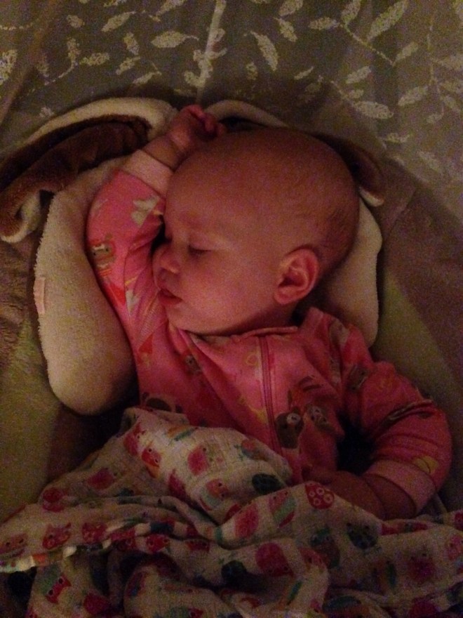 Lucy woke up with a 101.1 temperature this morning. Not sure what it is exactly that she has at this point, but it seems like a cold. She is a bit stuffy and her nose is a little runny. Other than that she has been happy. The only other things I can think of is possible teething still, but not likely with a fever that high, or an ear infection. She has been nursing weird the past couple of days. She doesn’t seem to want to lay on her right side. Hopefully she will be better tomorrow. After giving her Tylenol this morning, her fever has yet to come back. Fingers crossed.