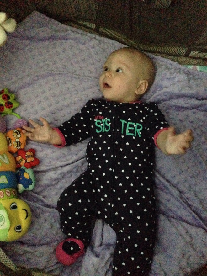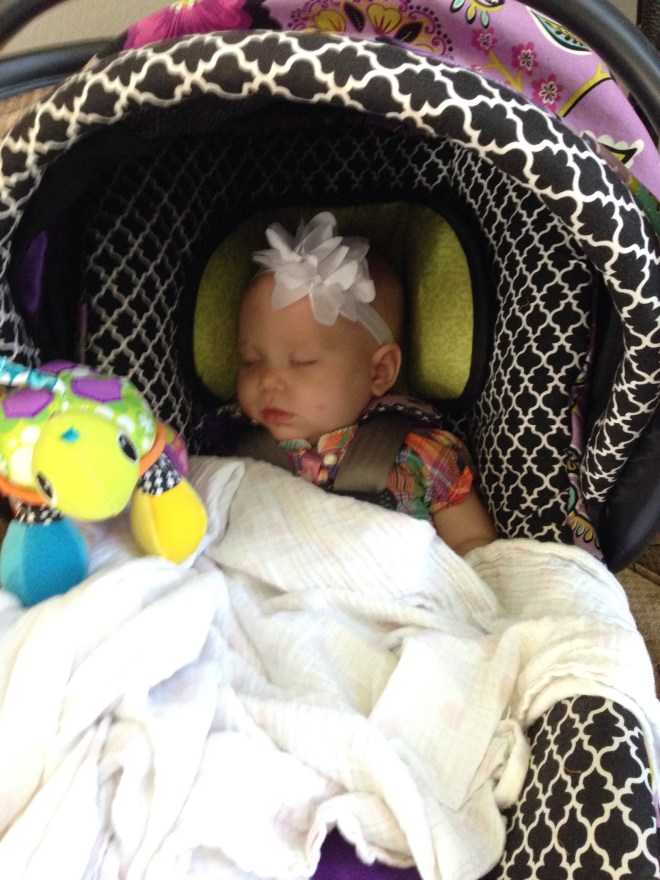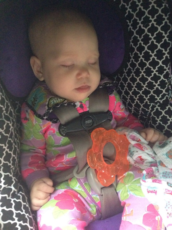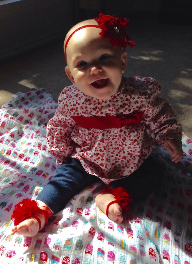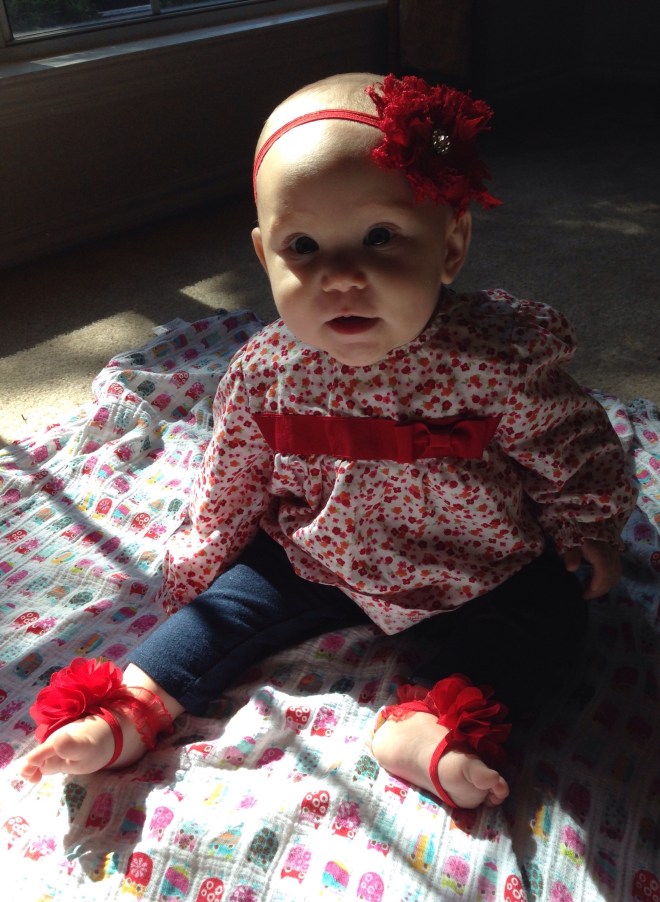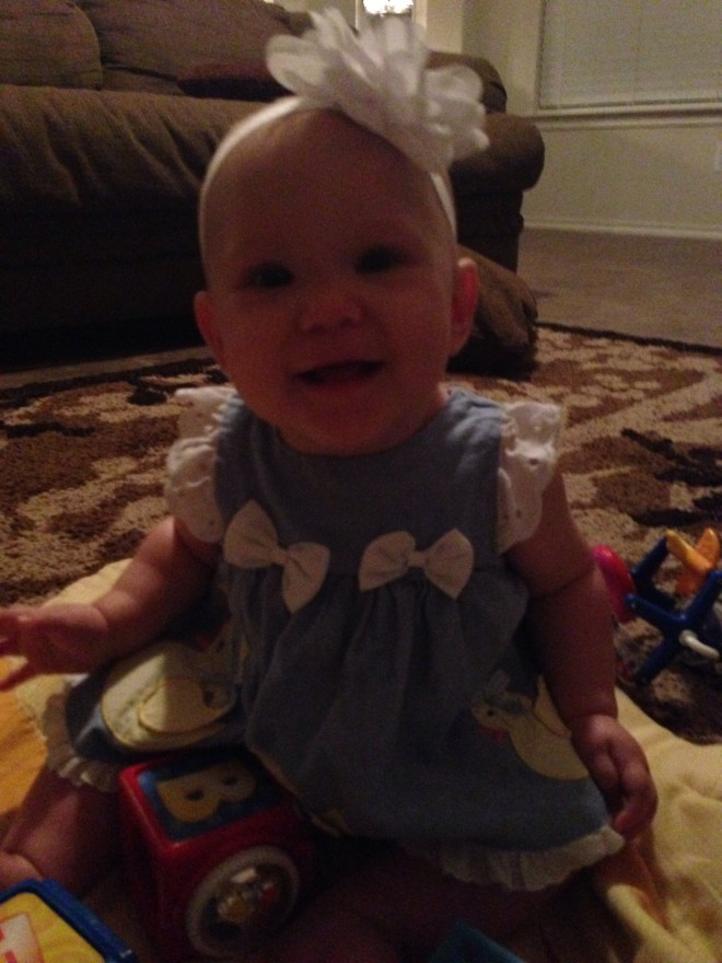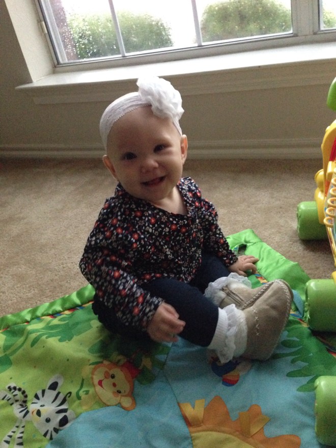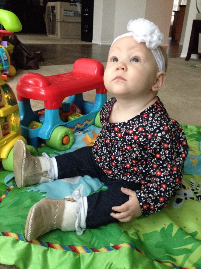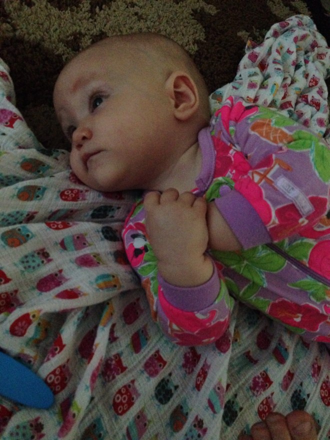 Lucy woke up with a 101.1 temperature this morning. Not sure what it is exactly that she has at this point, but it seems like a cold. She is a bit stuffy and her nose is a little runny. Other than that she has been happy. The only other things I can think of is possible teething still, but not likely with a fever that high, or an ear infection. She has been nursing weird the past couple of days. She doesn’t seem to want to lay on her right side. Hopefully she will be better tomorrow. After giving her Tylenol this morning, her fever has yet to come back. Fingers crossed.