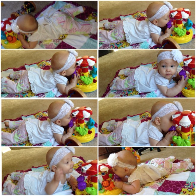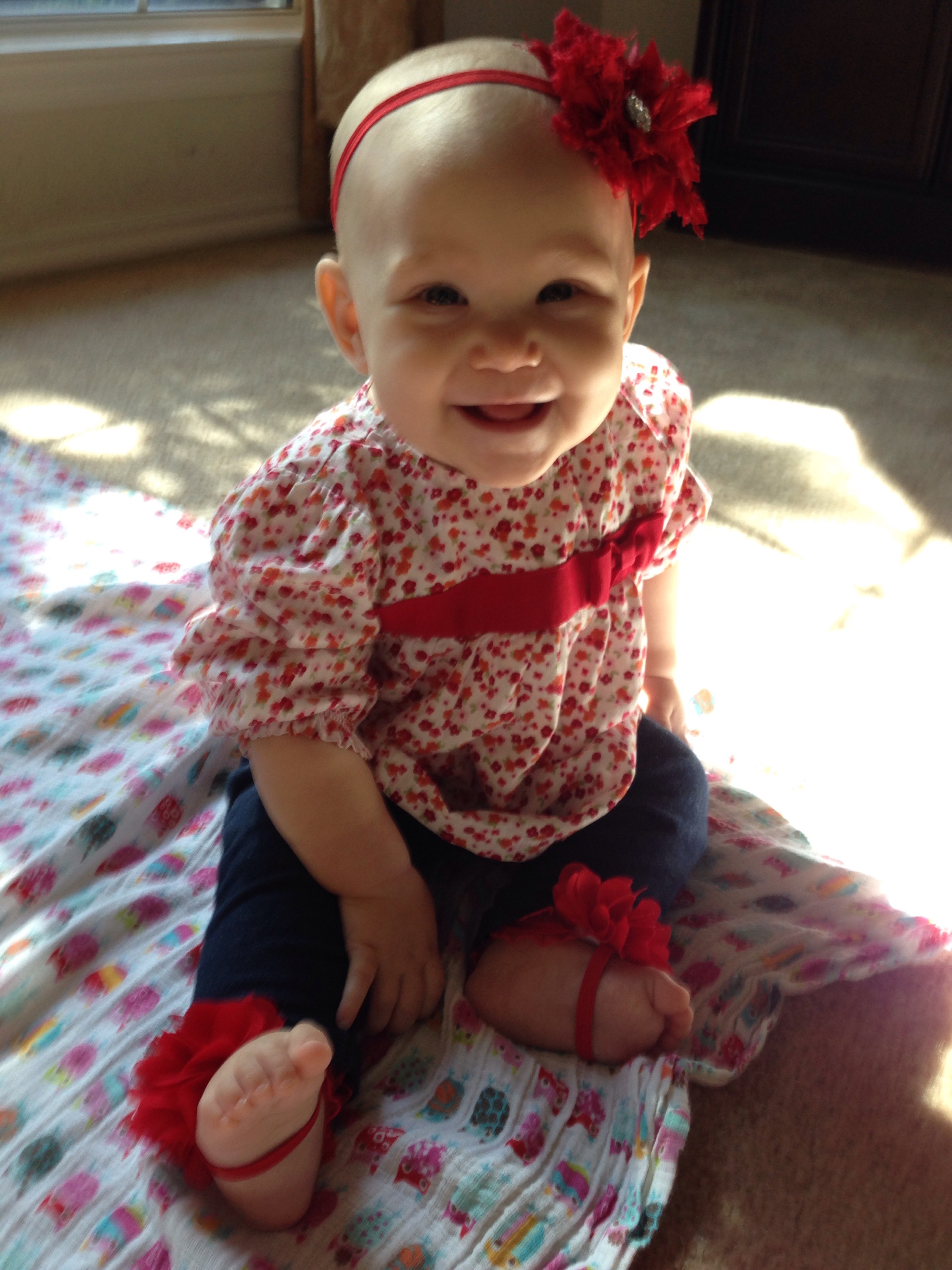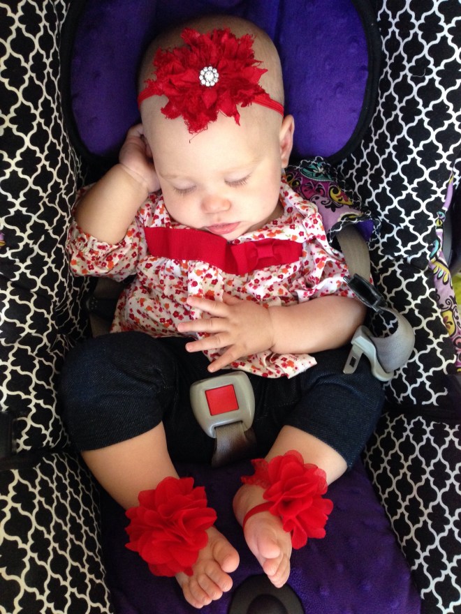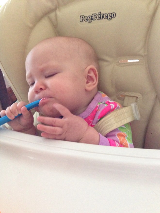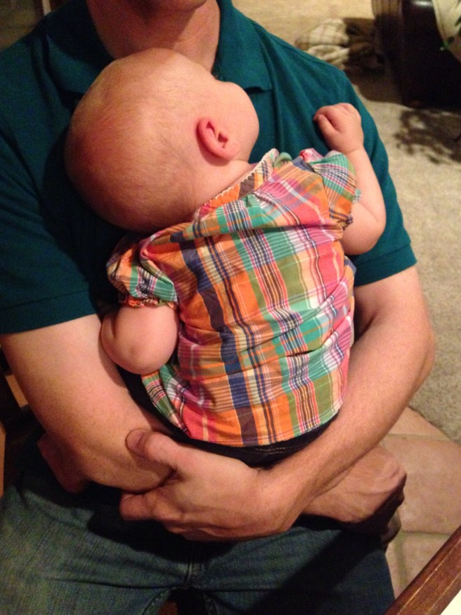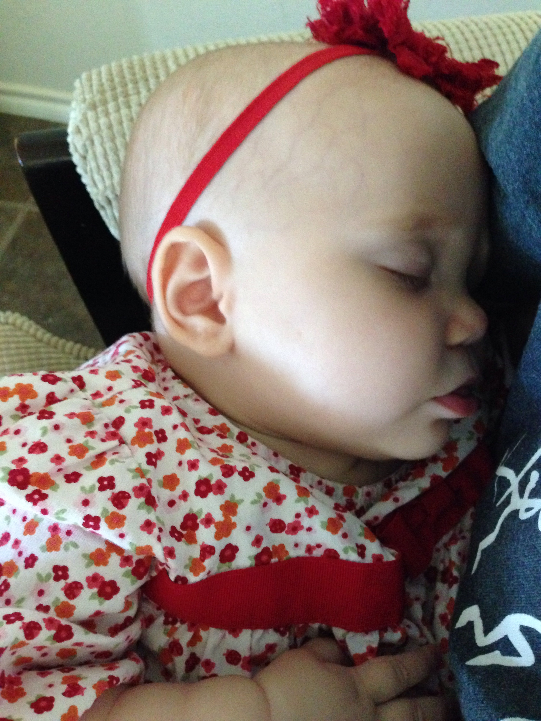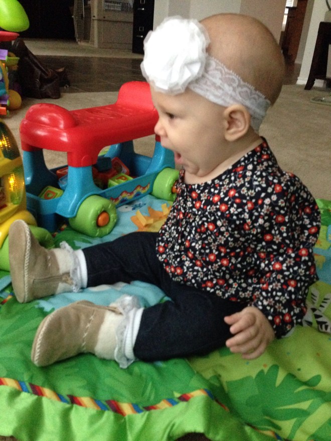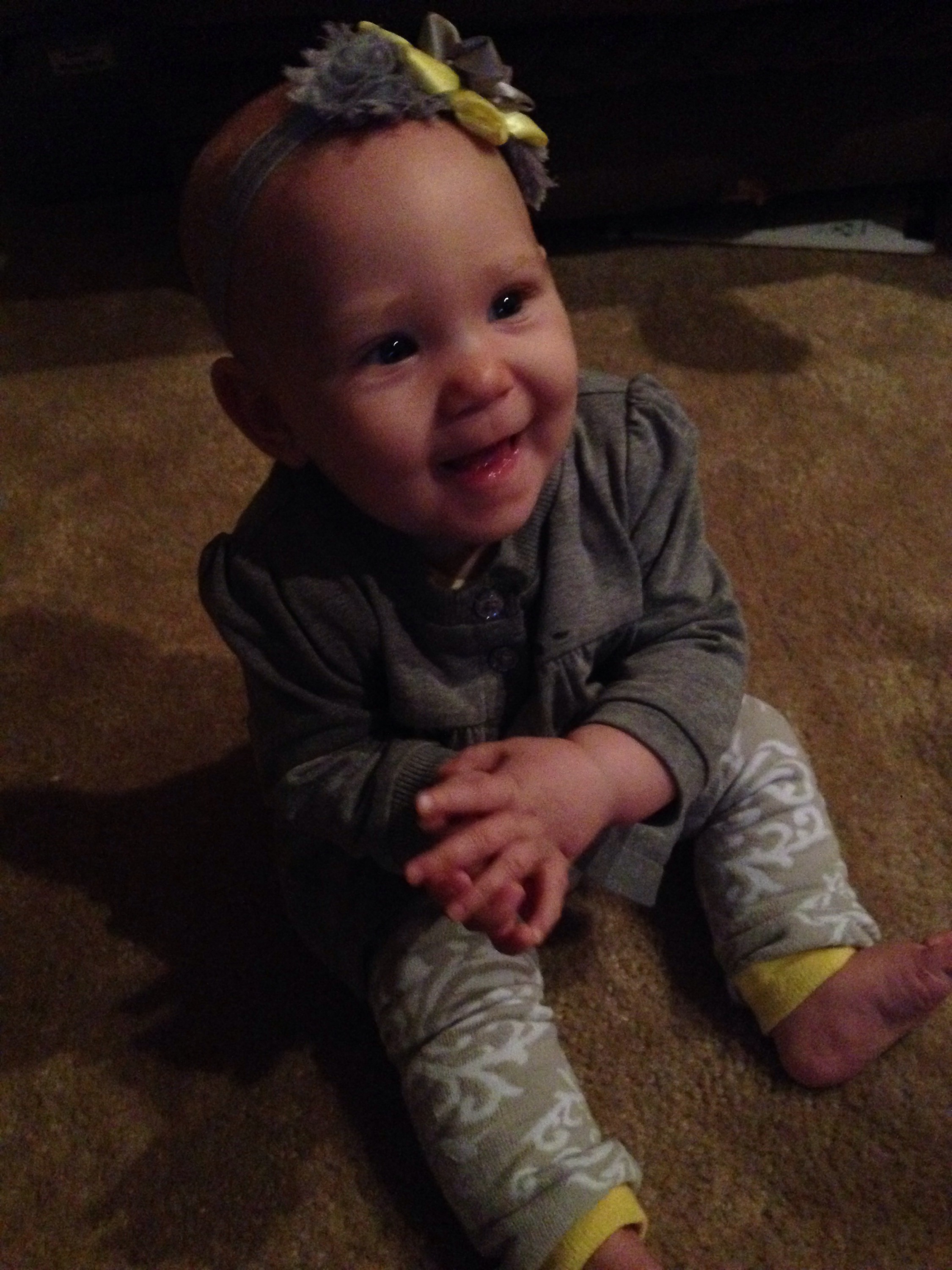 Lucy woke up with a 101.1 temperature this morning. Not sure what it is exactly that she has at this point, but it seems like a cold. She is a bit stuffy and her nose is a little runny. Other than that she has been happy. The only other things I can think of is possible teething still, but not likely with a fever that high, or an ear infection. She has been nursing weird the past couple of days. She doesn’t seem to want to lay on her right side. Hopefully she will be better tomorrow. After giving her Tylenol this morning, her fever has yet to come back. Fingers crossed.