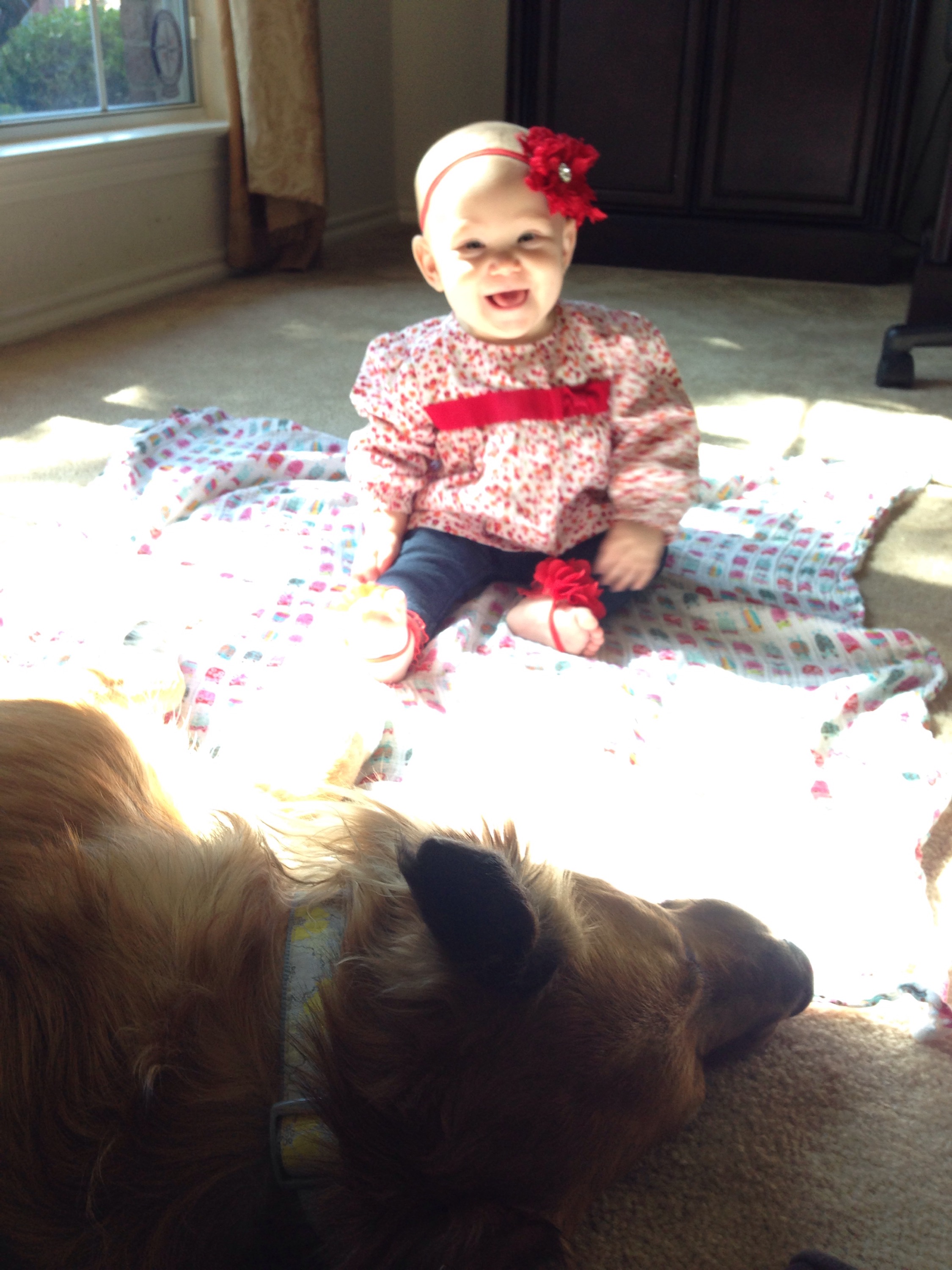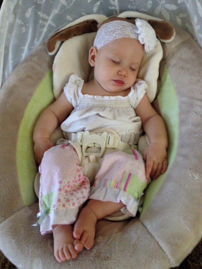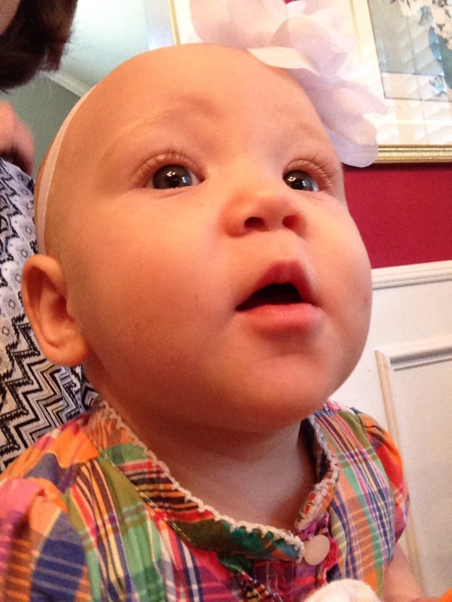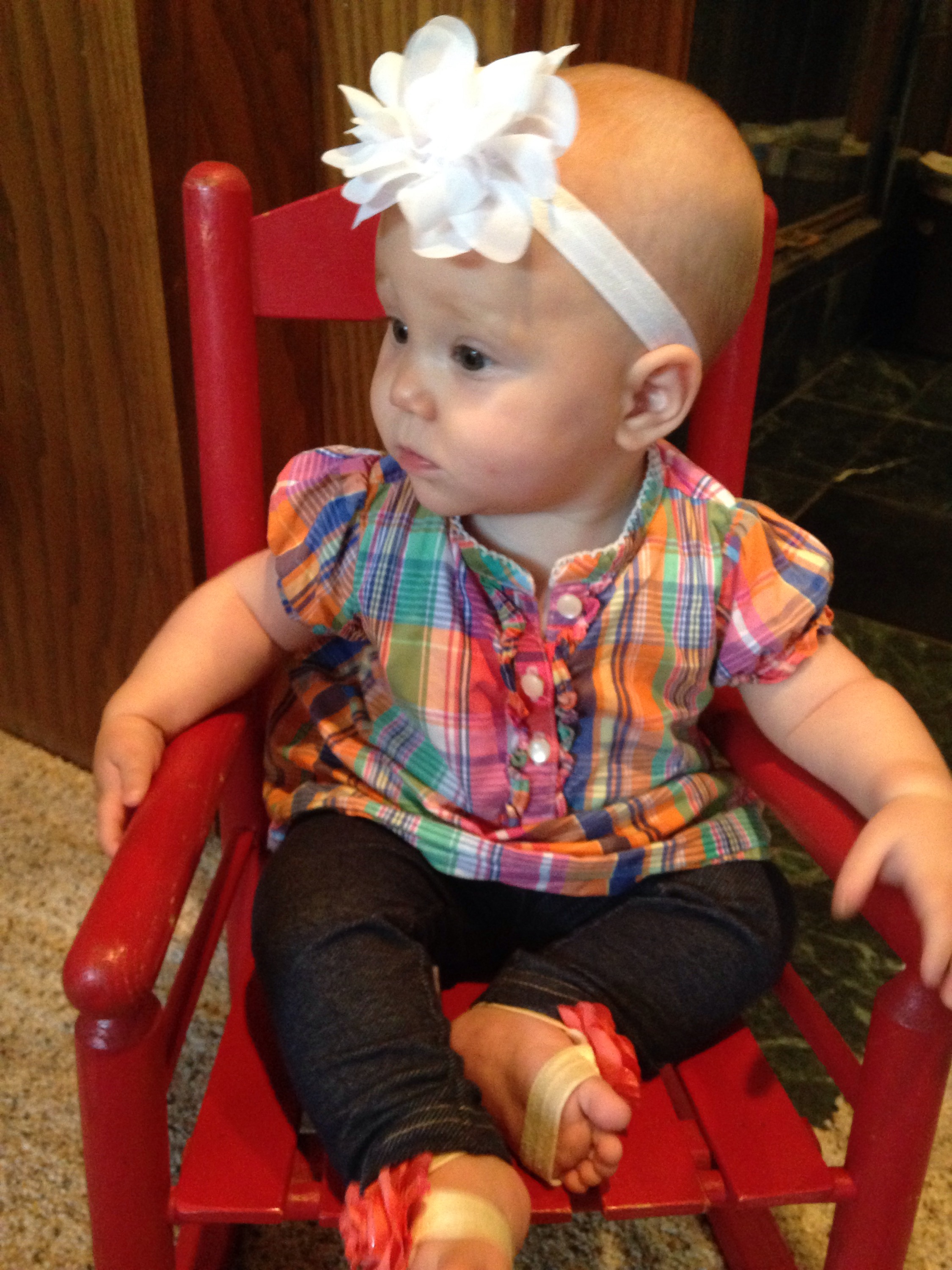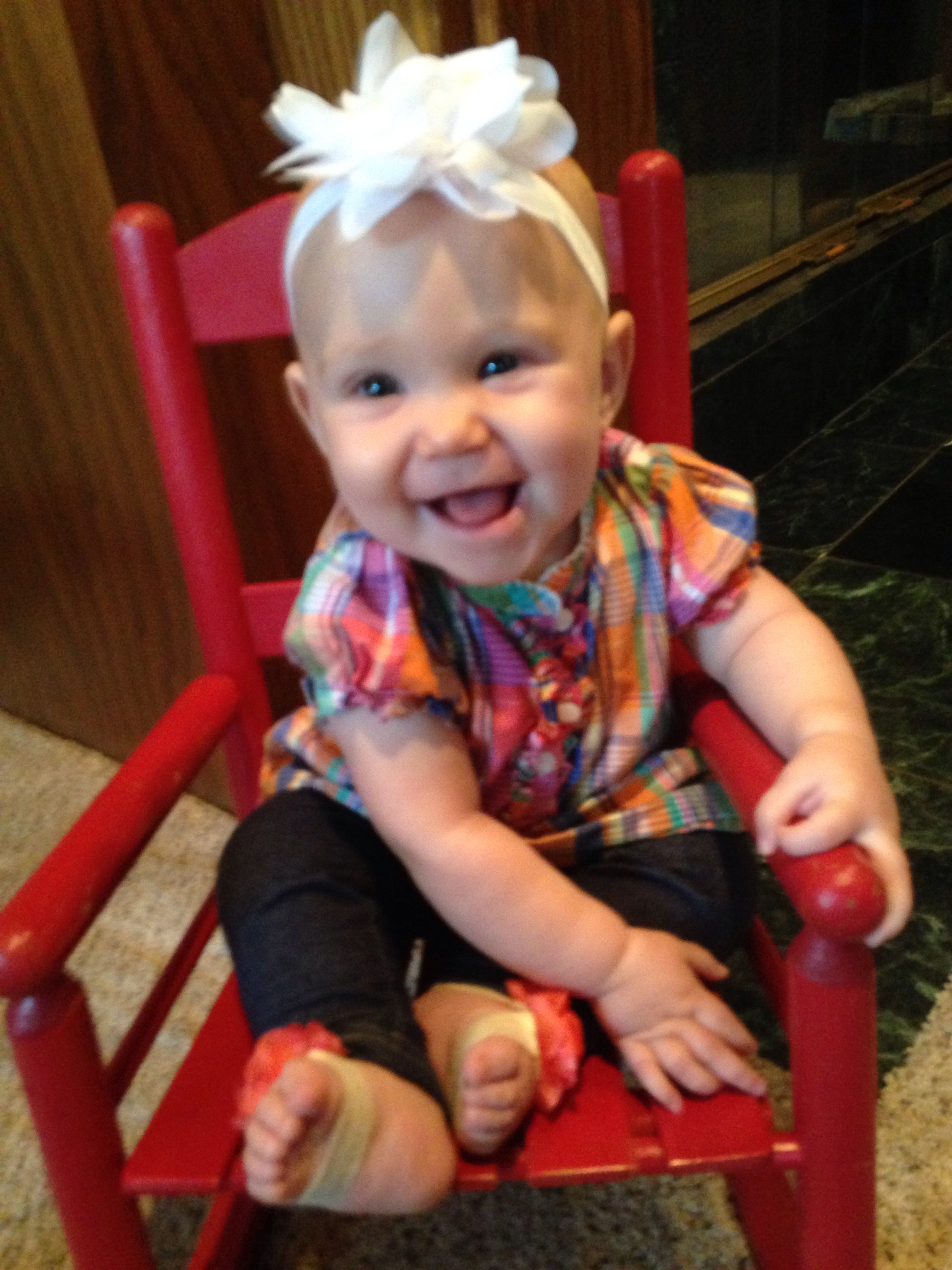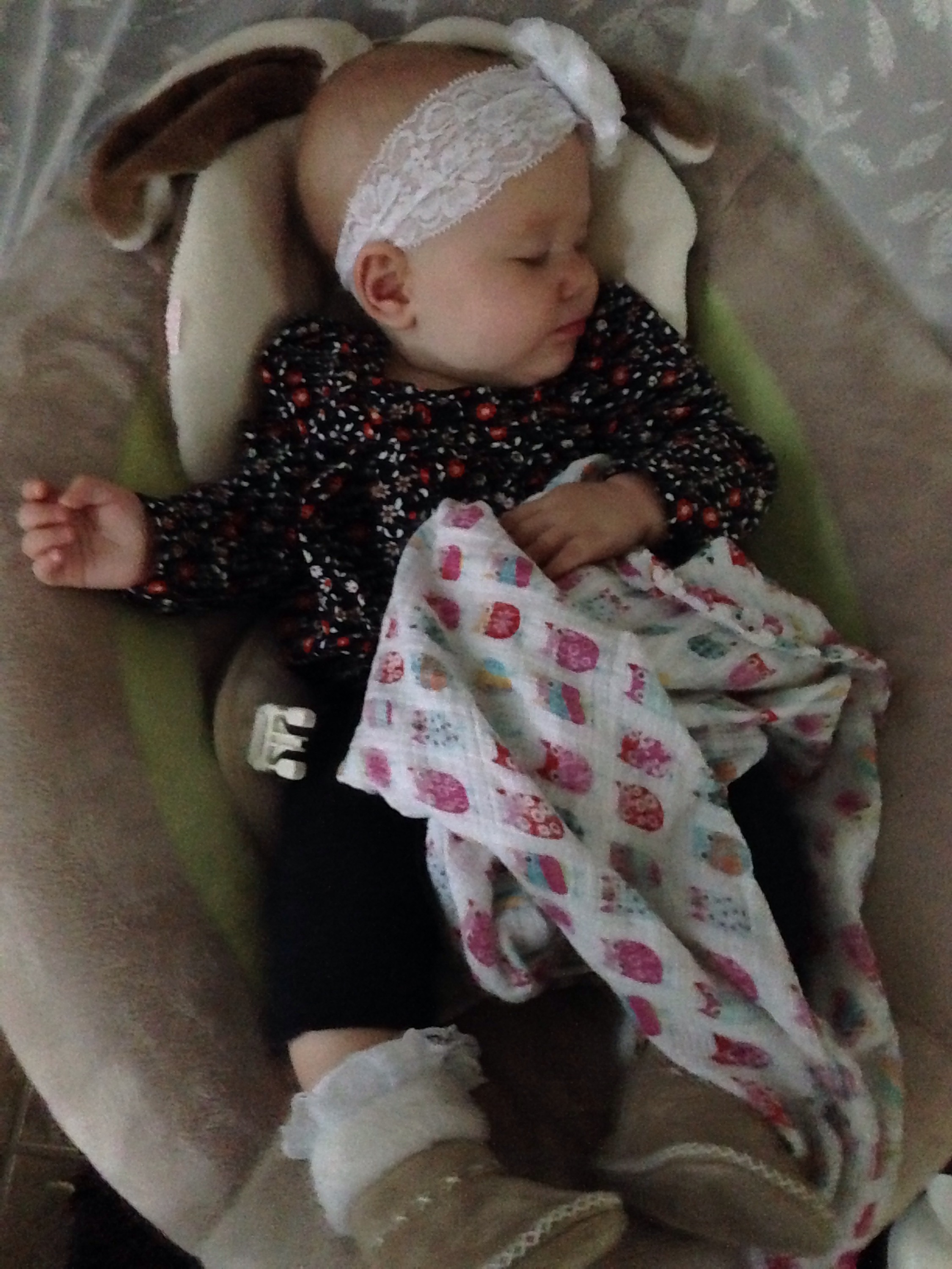Lucy woke up with a 101.1 temperature this morning. Not sure what it is exactly that she has at this point, but it seems like a cold. She is a bit stuffy and her nose is a little runny. Other than that she has been happy. The only other things I can think of is possible teething still, but not likely with a fever that high, or an ear infection. She has been nursing weird the past couple of days. She doesn’t seem to want to lay on her right side. Hopefully she will be better tomorrow. After giving her Tylenol this morning, her fever has yet to come back. Fingers crossed.