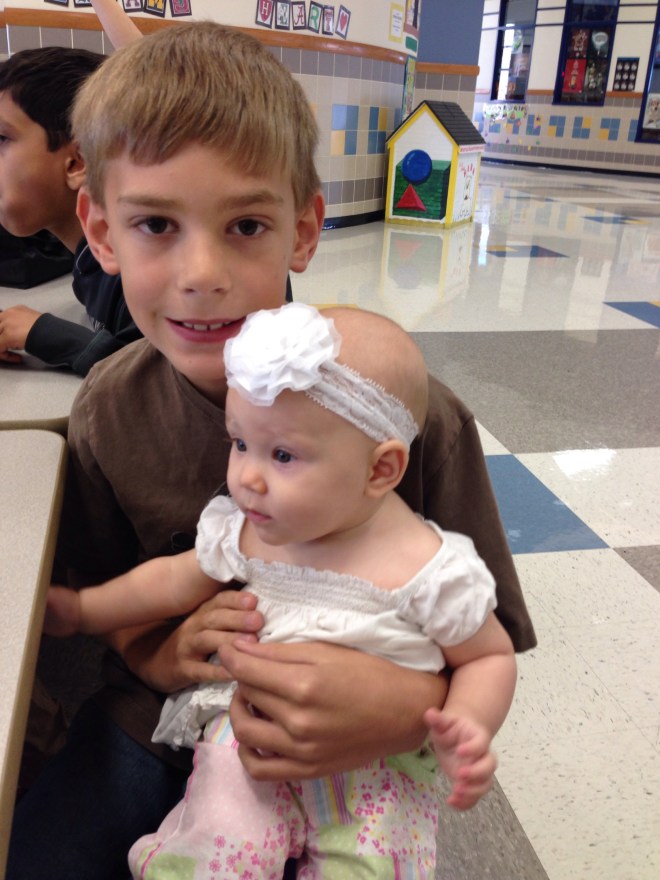 Lucy and I also ate lunch with Wii today. He is such a great big brother. I love how gentle he is with her, and how much he wants to make her happy.