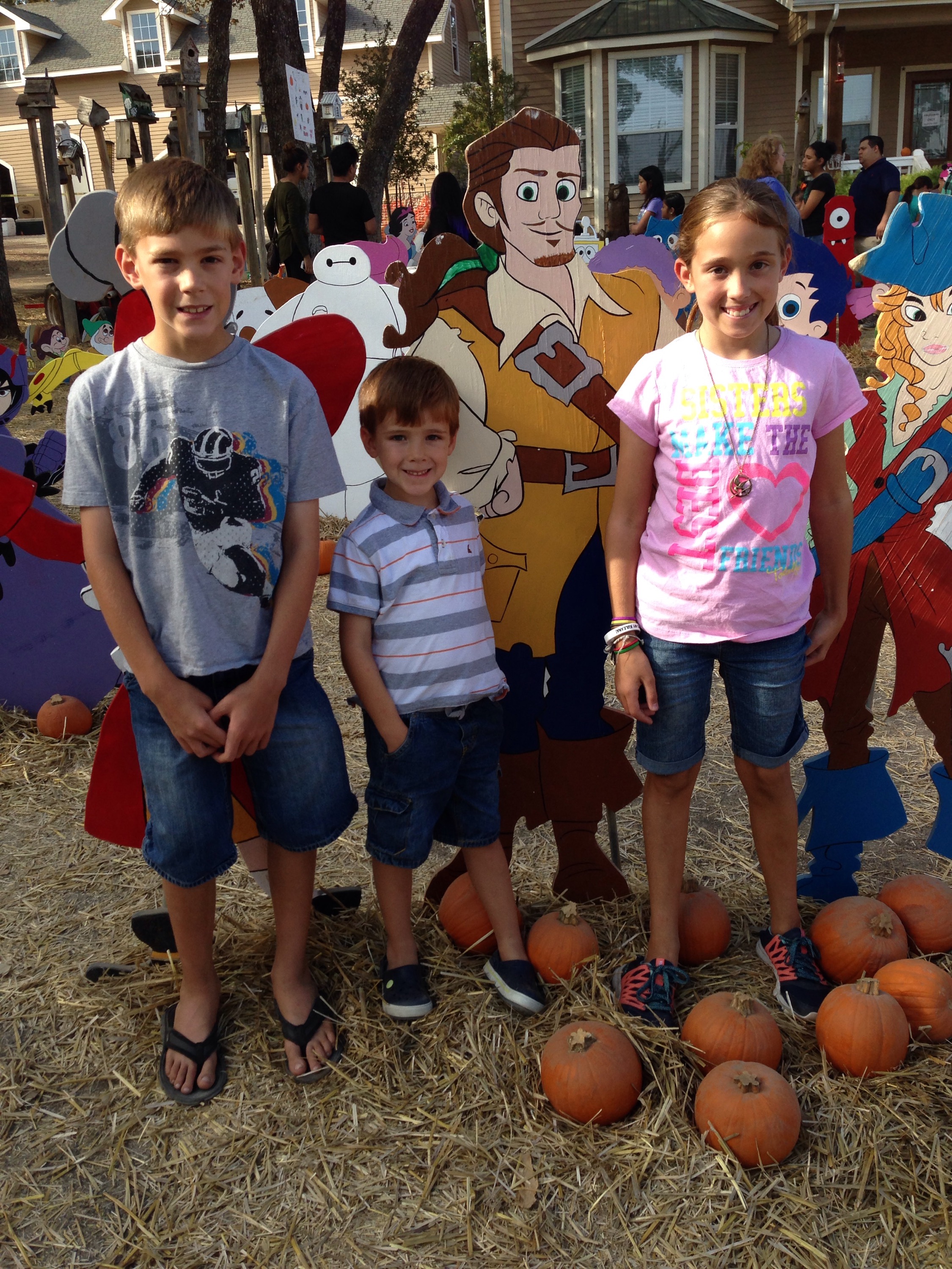It is family tradition to visit the Flower Mound Pumkpin Patch every year. This year, since all the kids are in school except Lucy, we decided to go on a Saturday. Woah, was that mistake! It was CRAZY! People were crammed in everywhere! Next year we will do things differently. The kids did have a good time, except Alex was heart broken that he could not go into the hay bale maze. Totally ridiculous in my opinion. They said he had to be 6. Their sign said 4-11, but someone crossed through it with a sharpie and changed it to 6. Last year Alex went through it and he was 4. Oh well. Next year he will be 6.