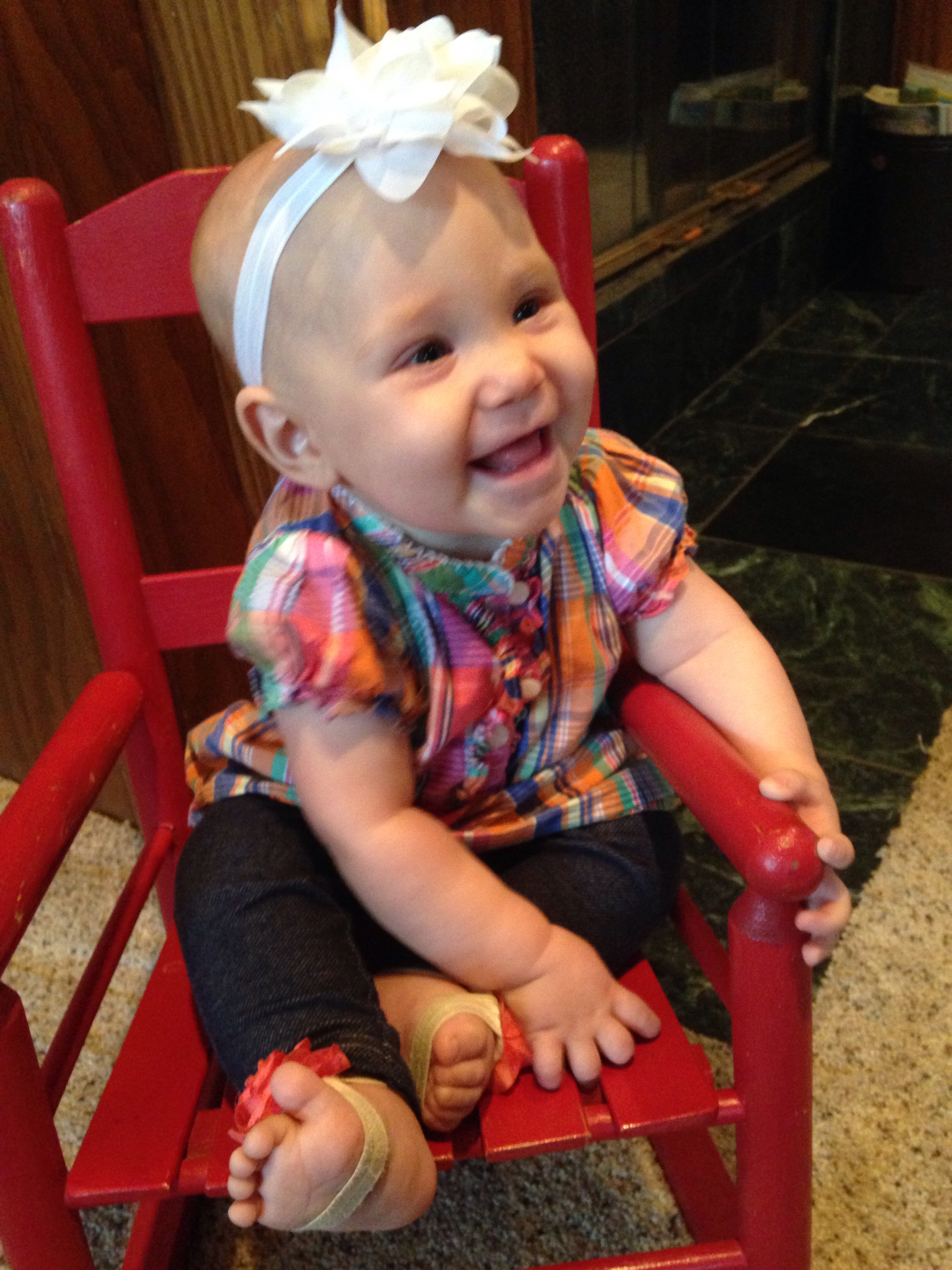 Silly girl liked sitting in Grandma’s little rocker.