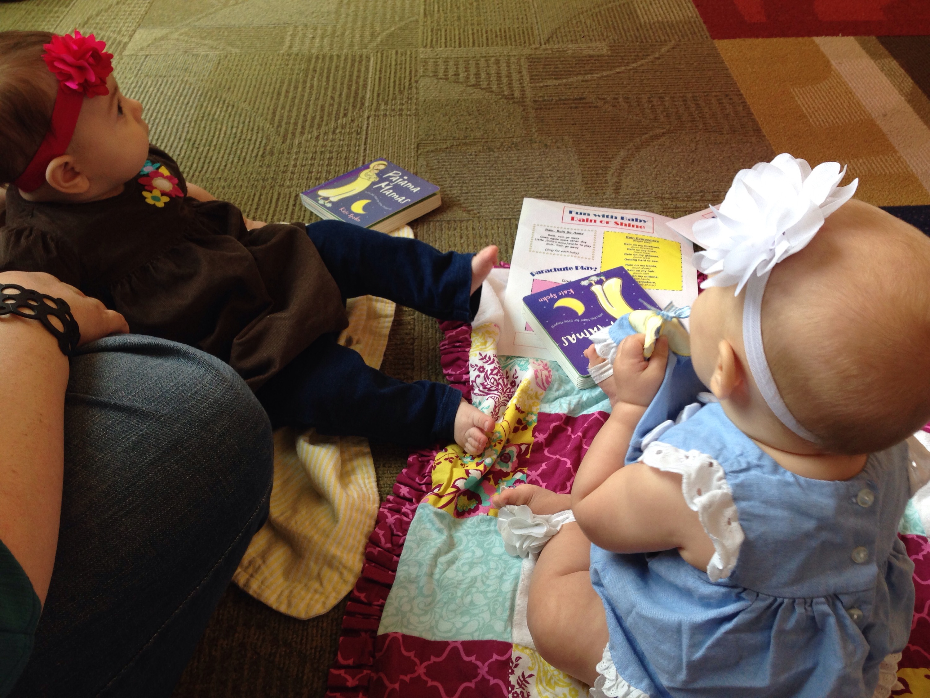 I finally had to wake her up because we were meeting Mrs. Brandi and Maedreigh for storytime at 10:45. The girls are so incredibly cute! I love when they are able to get together. (I love my time with Brandi too.π) Today’s storytime was quite crazy. The library had early voting, so they had the babies off in a corner of the library behind some book shelves. There were SO MANY babies! Given the situation, the girls did fabulous. It was nice when storytime was over and Lucy and Maedreigh got to just hang out with the toys in peace.