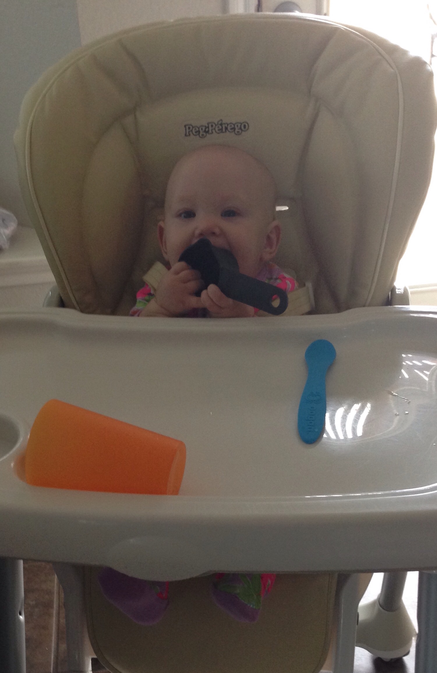 We finally got Lucy a high chair yesterday. After finding out the chair Emmy gave us was recalled, I wanted to make sure I looked around and researched before I got a new one. It is crazy how all the high chairs I thought were fabulous with the other kids are all gone. Lucy really seemed to like her chair at first. She seems so tiny in it though!