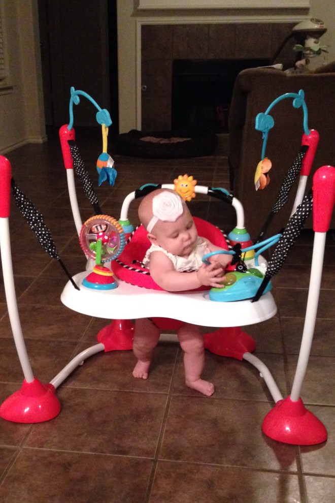 Lucy is really beginning to display her personality. She is such a funny little girl. She LOVES being the center of attention! She is such a ball of smiles if people are paying attention to her. However, you can’t take Mommy out of the mix. She is still very attached. Lucy loves to try and do what everyone else in the house is trying to do, but that leads to lots of frustration. She is still only 5 months old, in a 5 month old baby body. Today at storytime, she wanted so badly to hold and look through her book by herself, but it kept falling because it was a bigger heavier board book than most. She got so mad it wasn’t cooperating, she let out a loud scream. The librarians and other parents started laughing. I just felt bad for her because you could tell she was very frustrated.