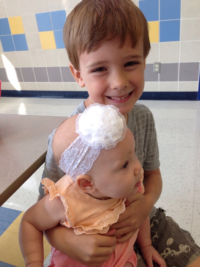 Lucy and I ate lunch with Alex today. I absolutely love how much he smiles when she comes. All his little buddies comment how cute she is and he just lights up with pride and pats her head. It is so sweet.
