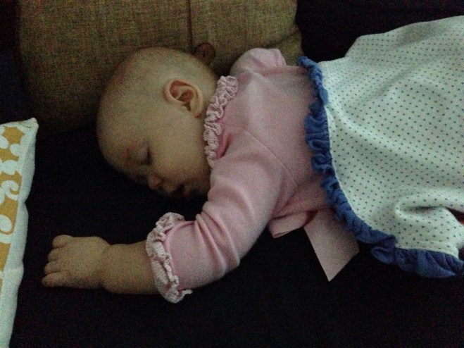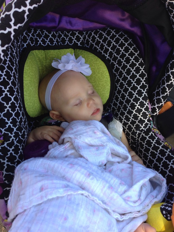 Saturdays always seem to get crazy. Luckily, Lucy slept like a champ last night, and only woke up twice in the night. I felt like a new person! I did feel bad having to wake Lucy up at almost 10am when she still was not awake yet. I had to run some errands before Mrs. Dawn’s baby shower and wanted to make sure Lucy ate before I left. She looked so sweet sleeping.