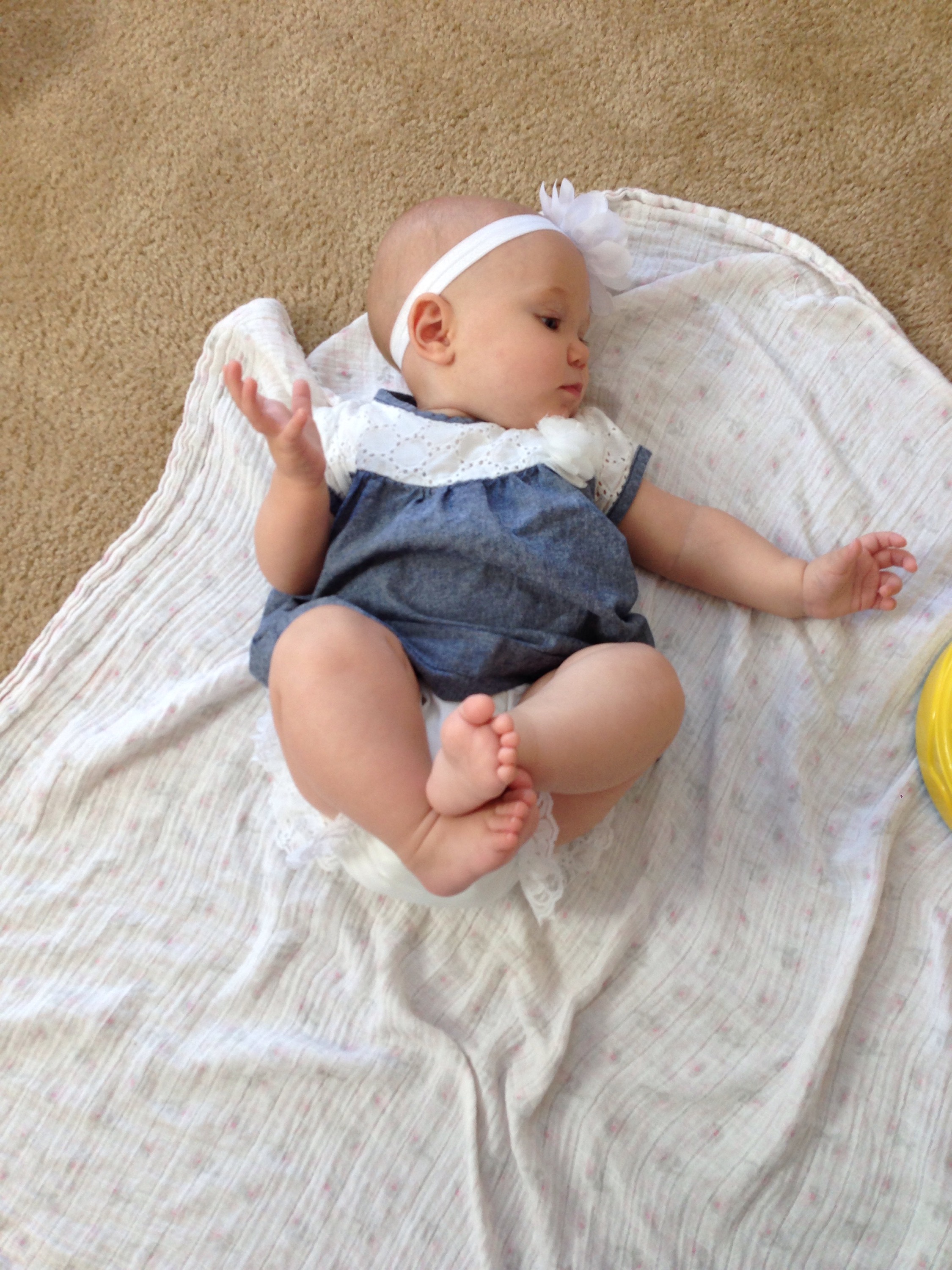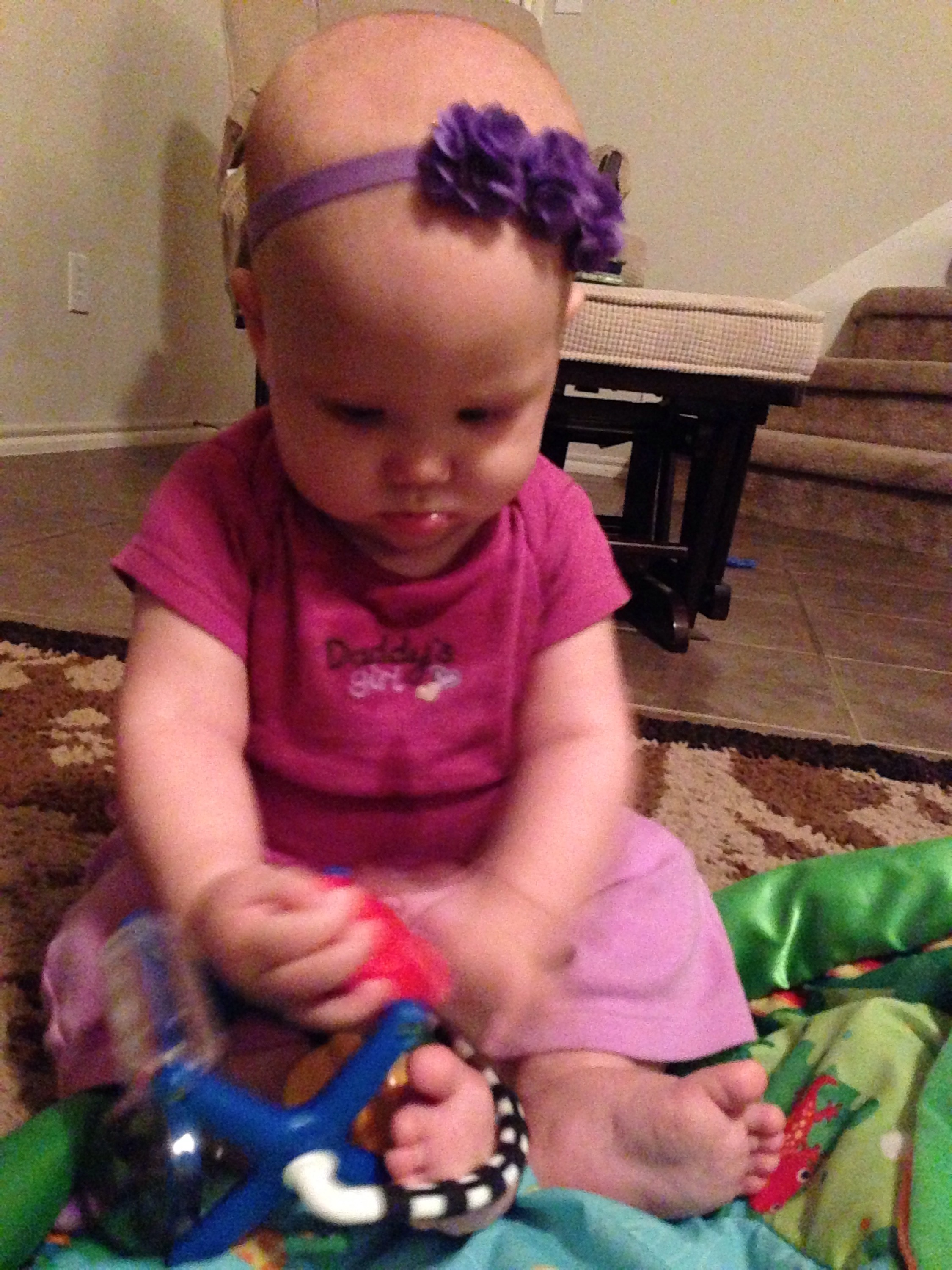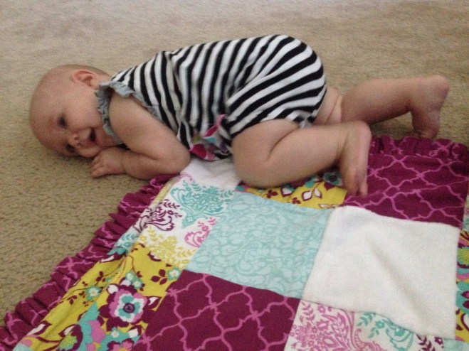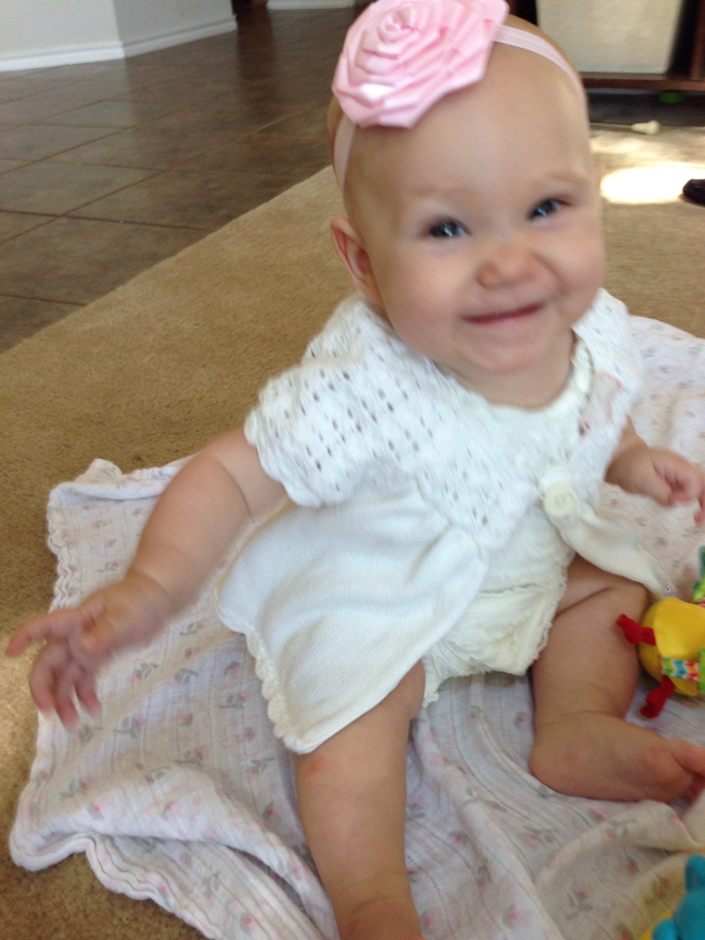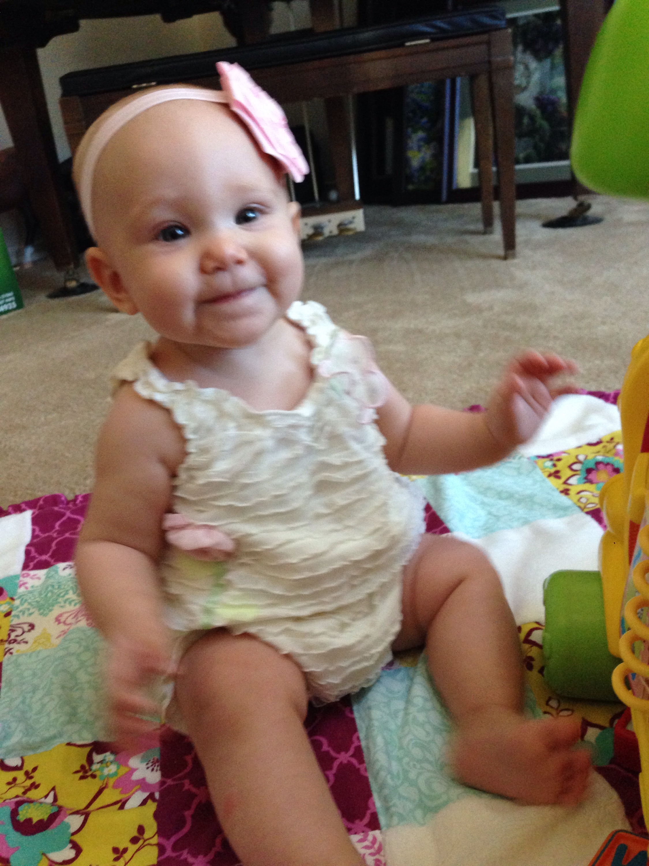Daddy spent most of the day with her after that. I was able to squeeze in a little playtime after feeding her in the afternoon, before I took William fishing for his date night. She seems like she is going to just take off any day. She wants to get places so badly. If her body would just cooperate.