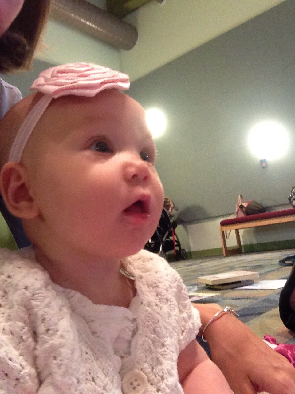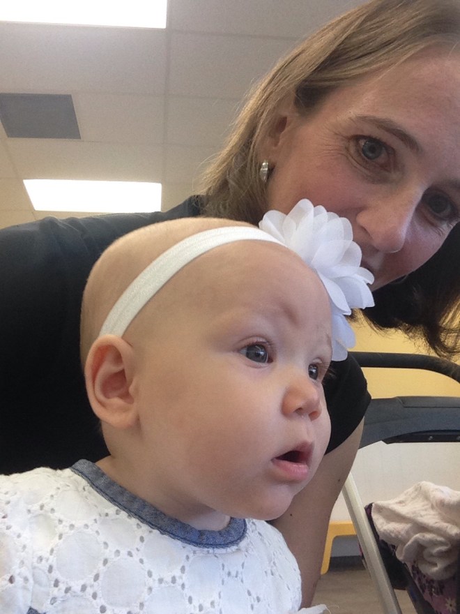 Lucy is really beginning to display her personality. She is such a funny little girl. She LOVES being the center of attention! She is such a ball of smiles if people are paying attention to her. However, you can’t take Mommy out of the mix. She is still very attached. Lucy loves to try and do what everyone else in the house is trying to do, but that leads to lots of frustration. She is still only 5 months old, in a 5 month old baby body. Today at storytime, she wanted so badly to hold and look through her book by herself, but it kept falling because it was a bigger heavier board book than most. She got so mad it wasn’t cooperating, she let out a loud scream. The librarians and other parents started laughing. I just felt bad for her because you could tell she was very frustrated.