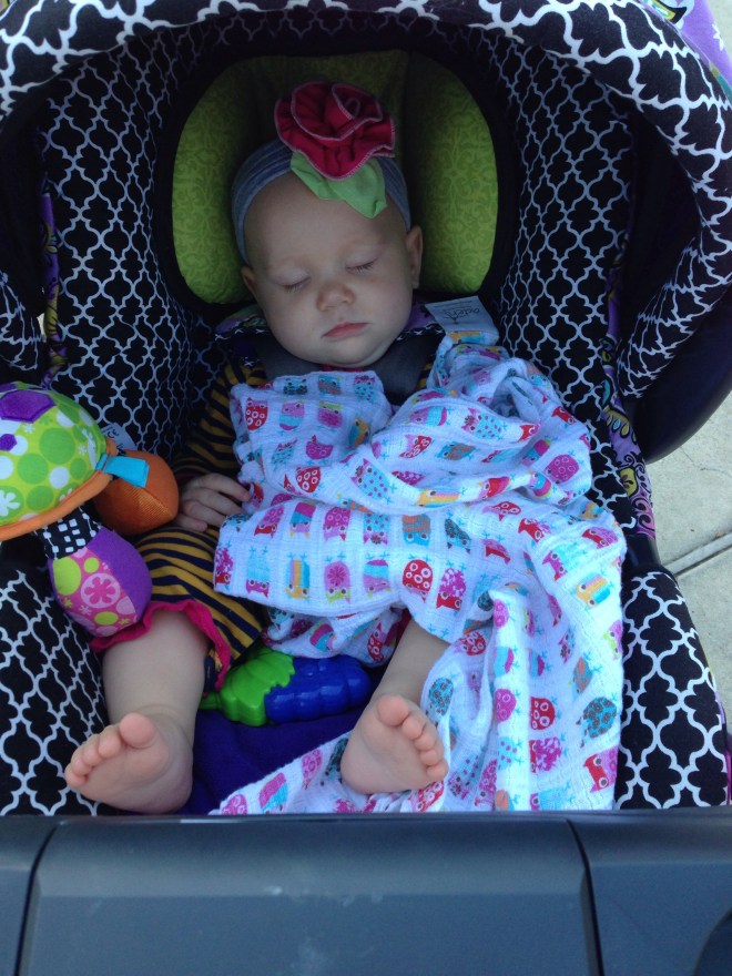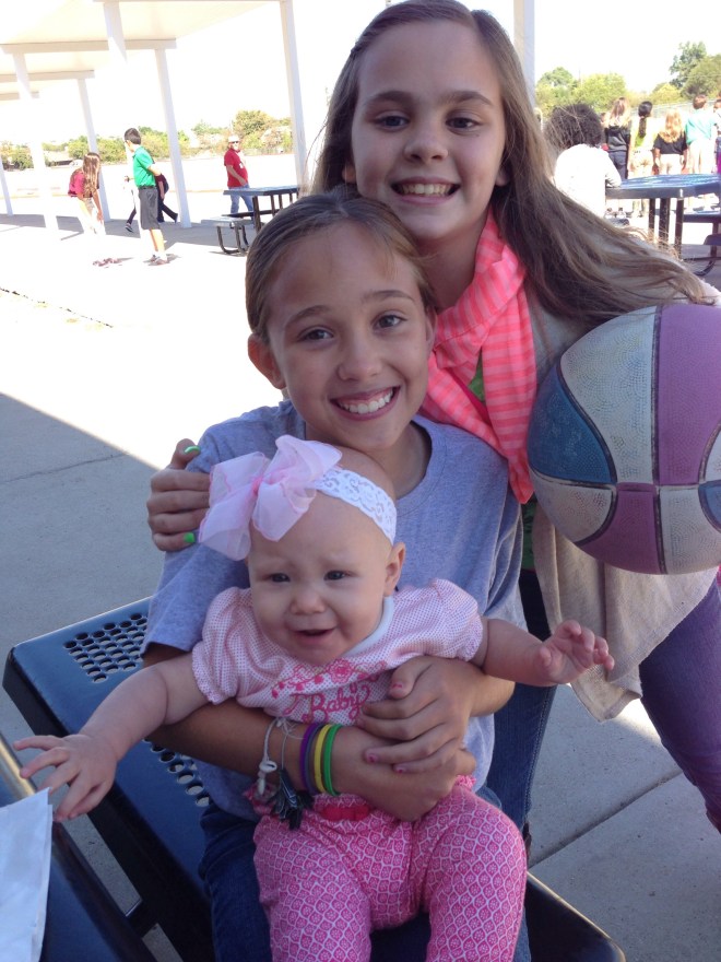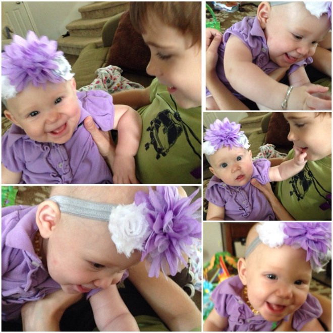 I have had a lot of time to ponder today on how blessed I am to have such amazing children, and such a special blessing Lucy is in our family. Today, a dear friend of mine is fighting a cancer battle with her precious two year old little girl McKenzie. I have realized, while learning of how quickly their lives have changed through their trials, how much I need to count every blessing, even when it might not be easy. Today, Lucy had quite a rough day. I really think she is trying to cut teeth, but it still makes it challenging when she just wants to be held all day long. I want to be there for her every moment, but have realized that sometimes I have to put her down. I ate lunch at 4:00 because I was trying to put off setting Lu down. I knew she would cry, which she did. Also, earlier this morning, we were going to story time with Maedreigh and Mrs. Brandi. Lu woke up at 9, ate at 9:20, and story time started at 11. Usually Lucy LOVES story time, but today she realized she was hungry in the middle of it, and could not get past that thought. I ended up having to take her out early because she got so upset. She has been biting her hands, sucking in her lower lip, and just acting agitated. Once she ate, she was a bit of a happy camper for a little while. It was so sweet. Mrs. Brandi had Mardreigh dressed in the cutest purple outfit. She did not even know we were wearing purple today in support of Kenzie’s battle. It made for the cutest first picture of the girls.