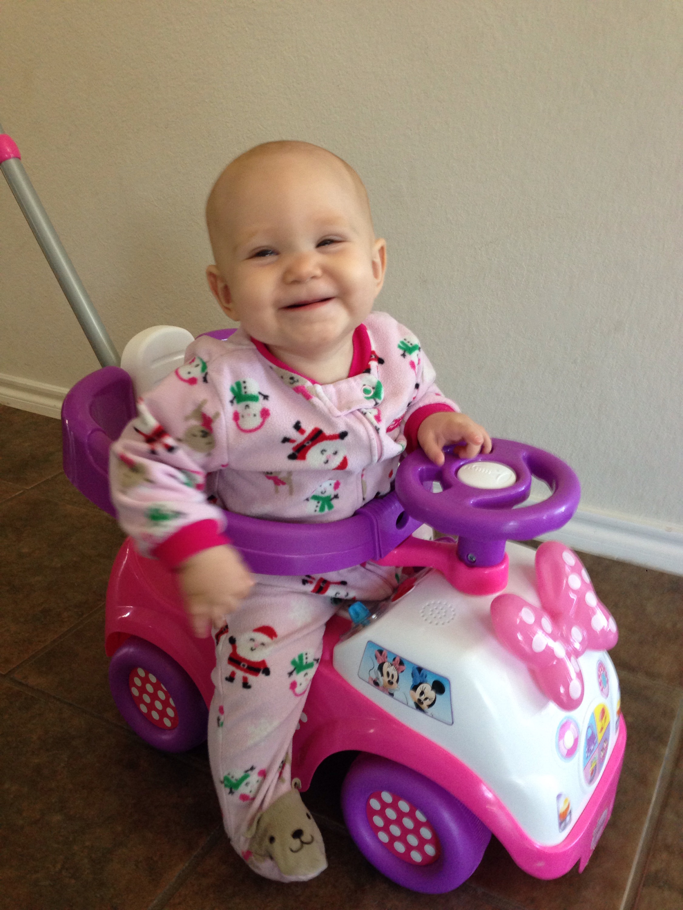 Lucy slept horribly last night! By the time she finally slept hard, we were late getting up for church. It was freezing outside. I was utterly exhausted. So, I decided to stay home with her. Good move too! She was so grouchy when she woke up. She has just been SO crabby. She was awake for about an hour, then fell back asleep for 2 1/2 hours. I just held her the entire time. She was so tired too! She woke up much happier, and even enjoyed riding on her Minnie car.