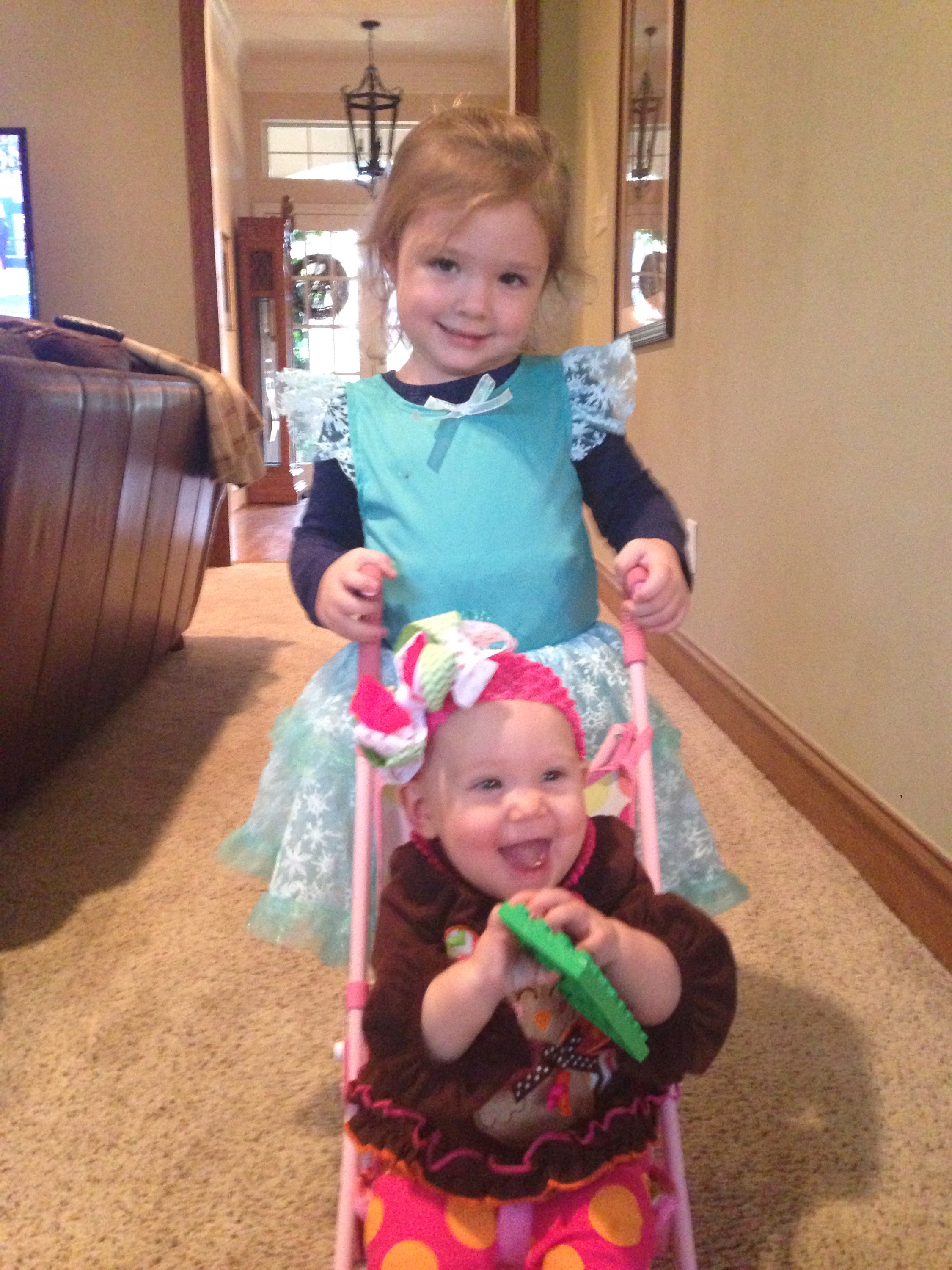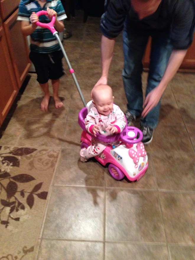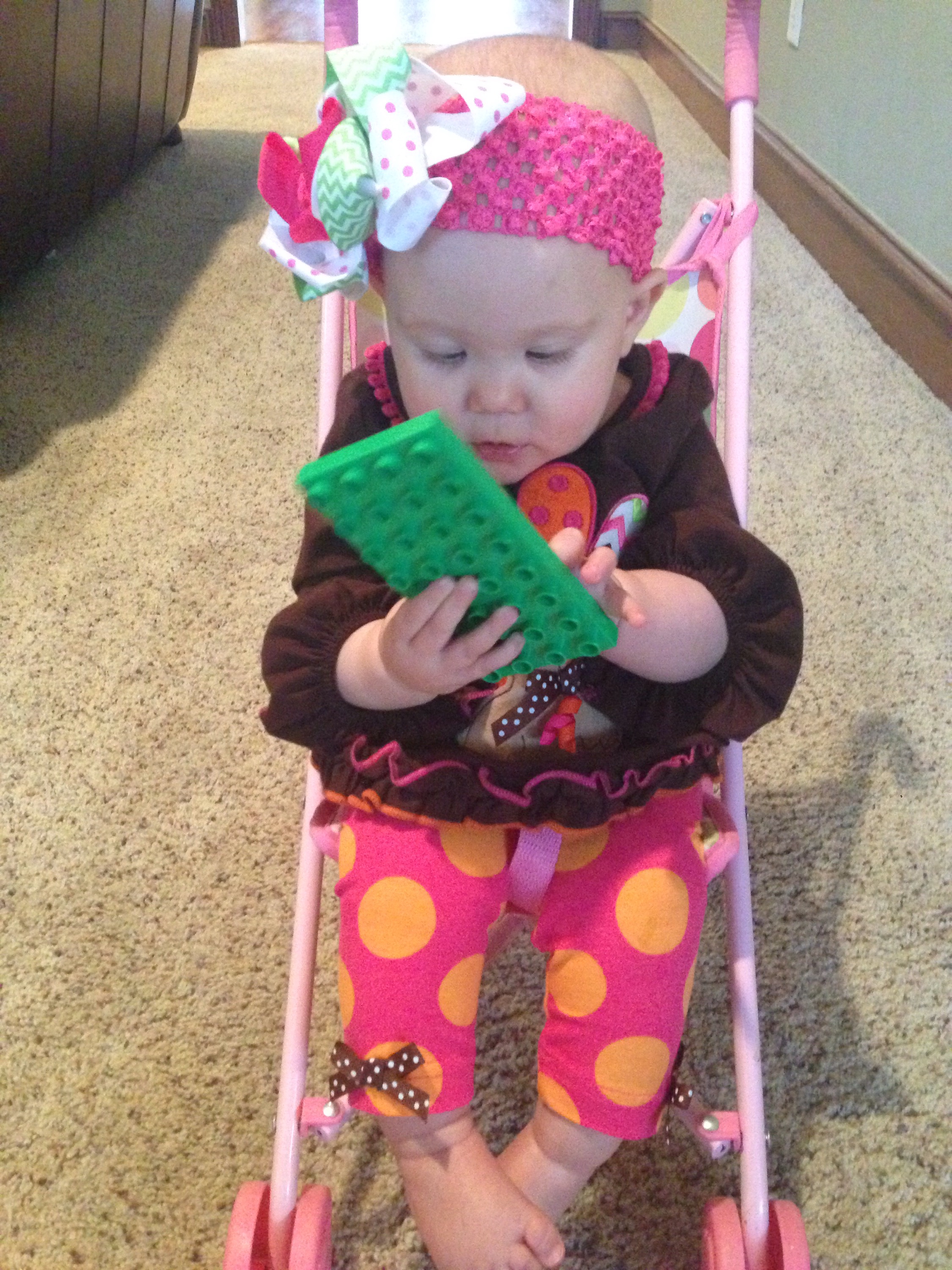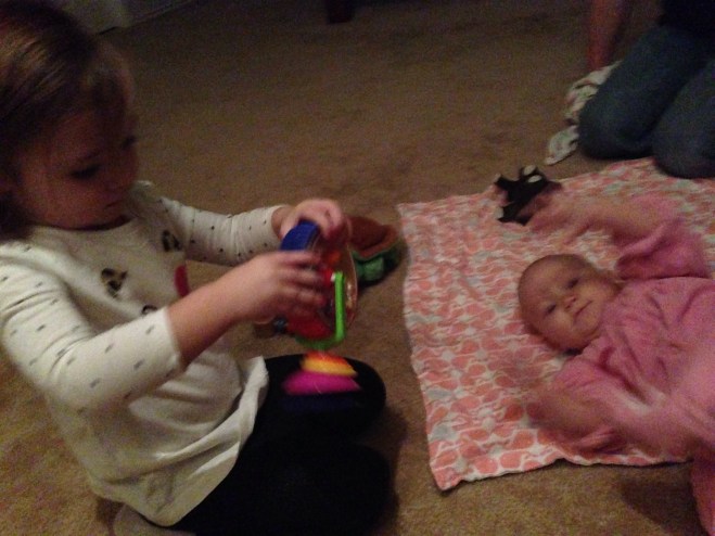 The kids had fun buckling her into Quinn’s baby doll stroller. Lucy loved it! She loves Quinn too. It will be so neat to see their relationship blossom once Lucy gets a little more mobile.