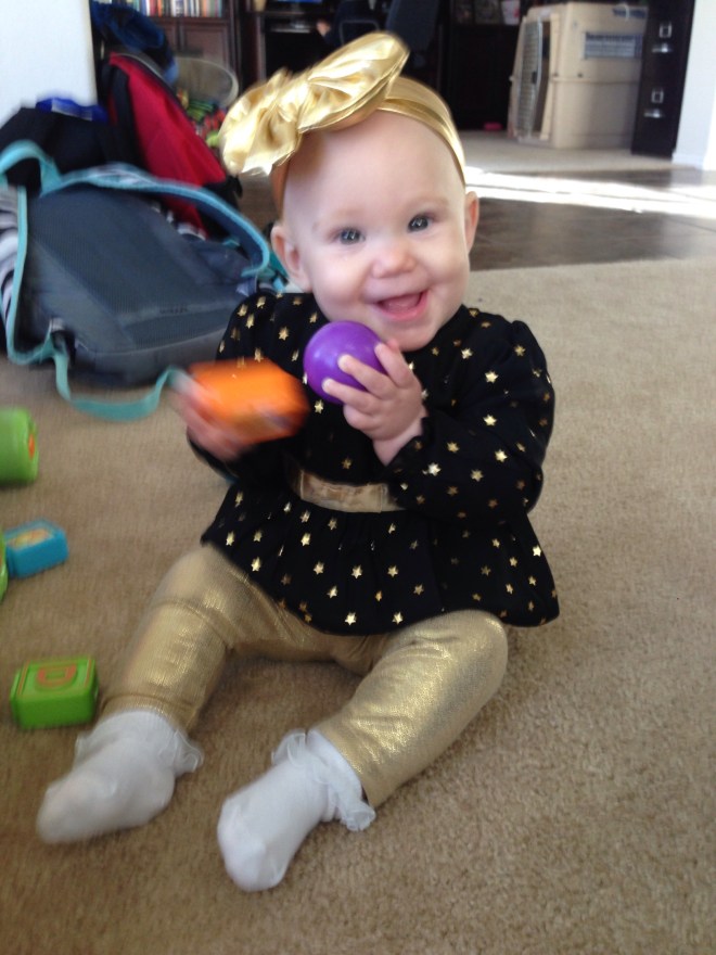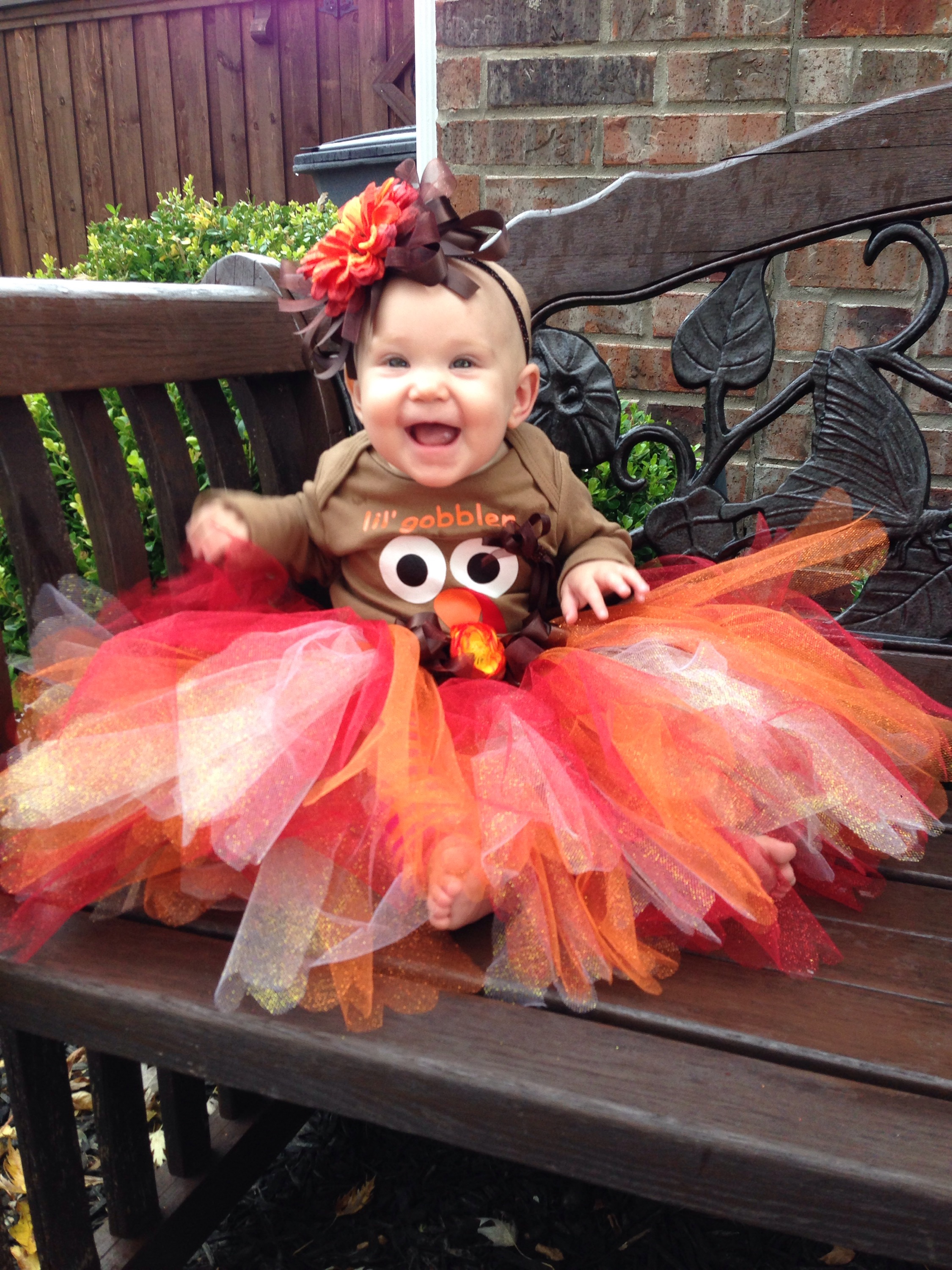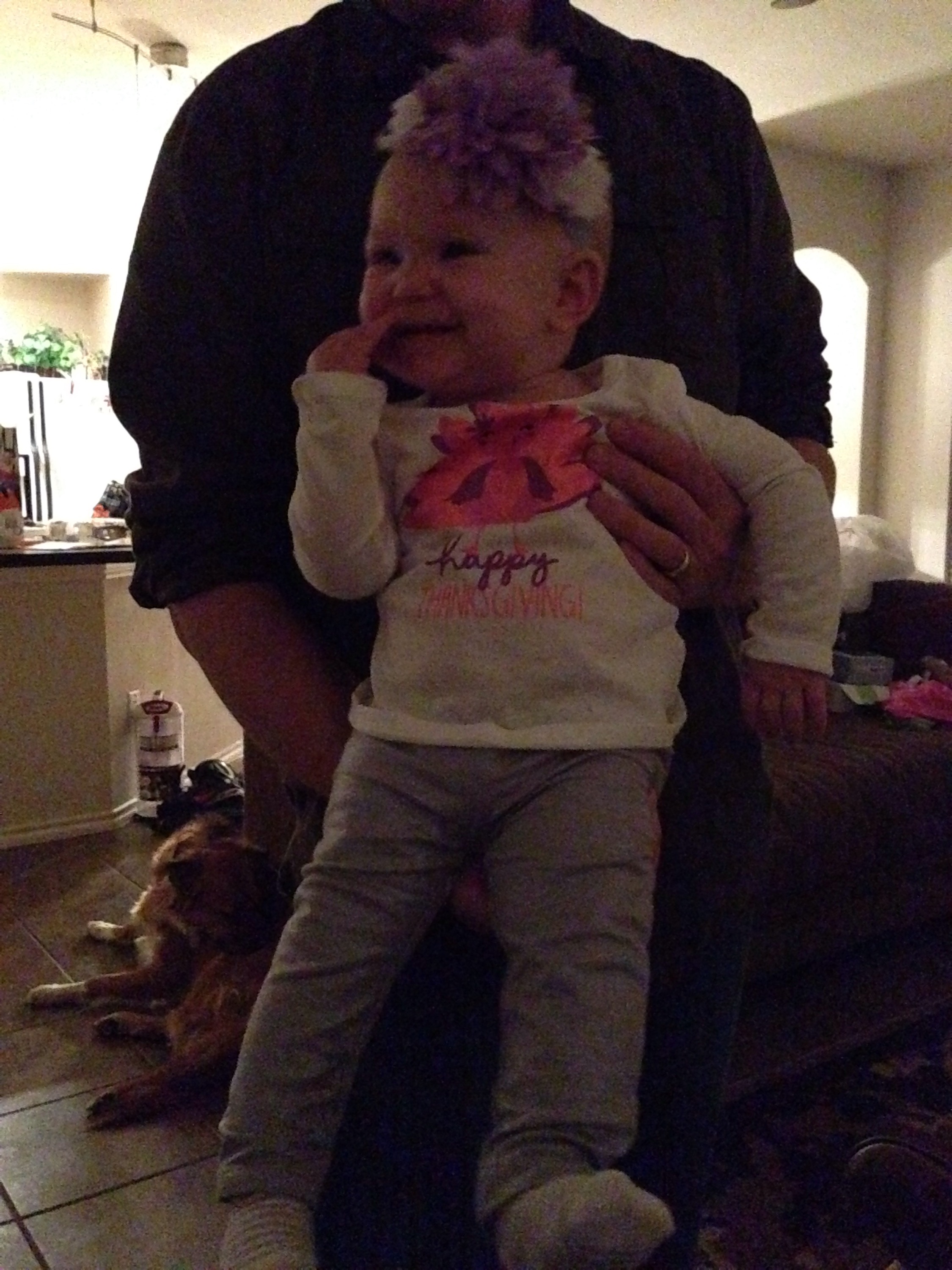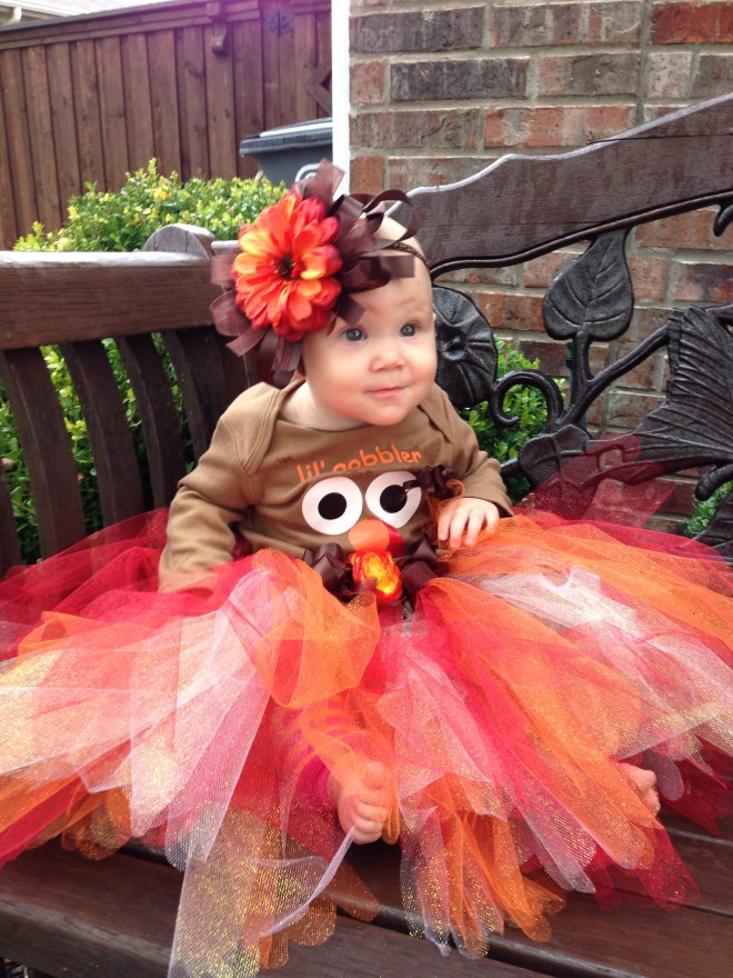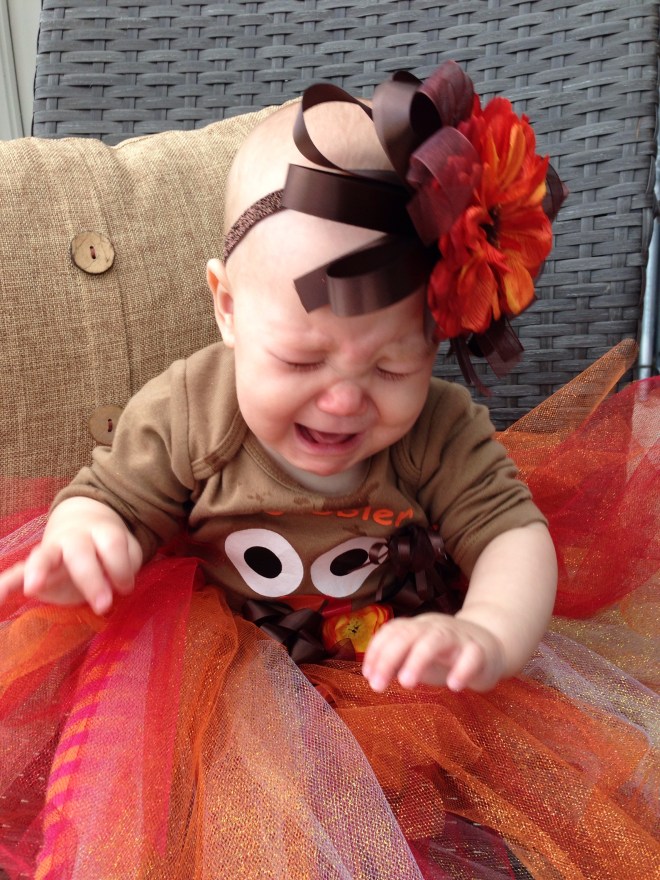 We have so much to be thankful for this Thanksgiving! One of our biggest blessings is Lucy! She is such a delight to our entire family. She makes everyone smile. Today was rainy and cool. I made Lucy a little turkey outfit (with LOTS OF GLITTER!) for a cute photo op. However, trying pictures before her nap was not the best idea.