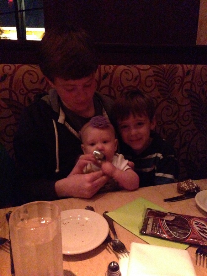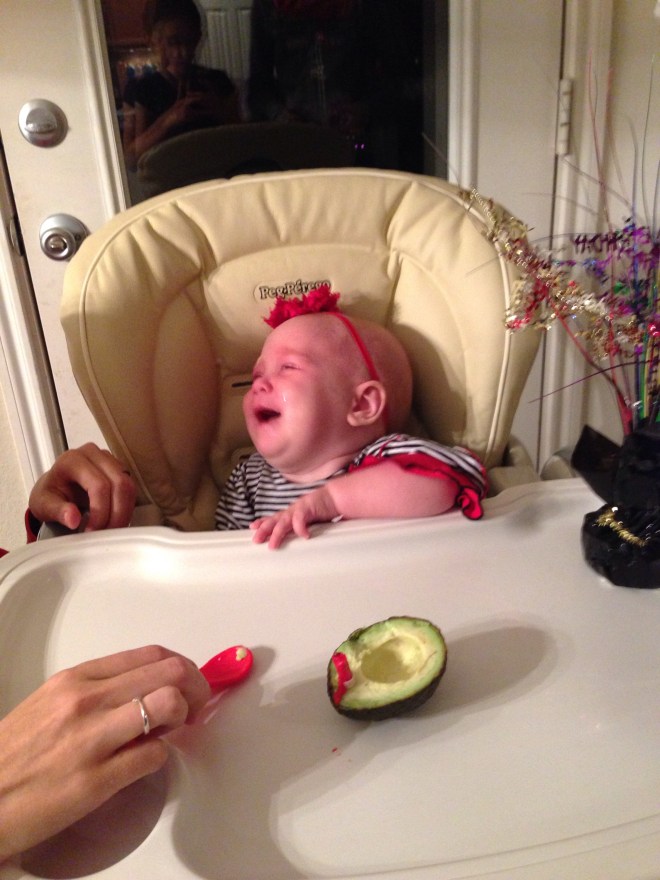 I really wanted to have Lucy try her birthday avacodo and open her present the kids got her, but Natalie was at choir practice until late. By the time Natalie got home, Lucy had fallen asleep on Sam. Trying something new out ended up being a disaster.