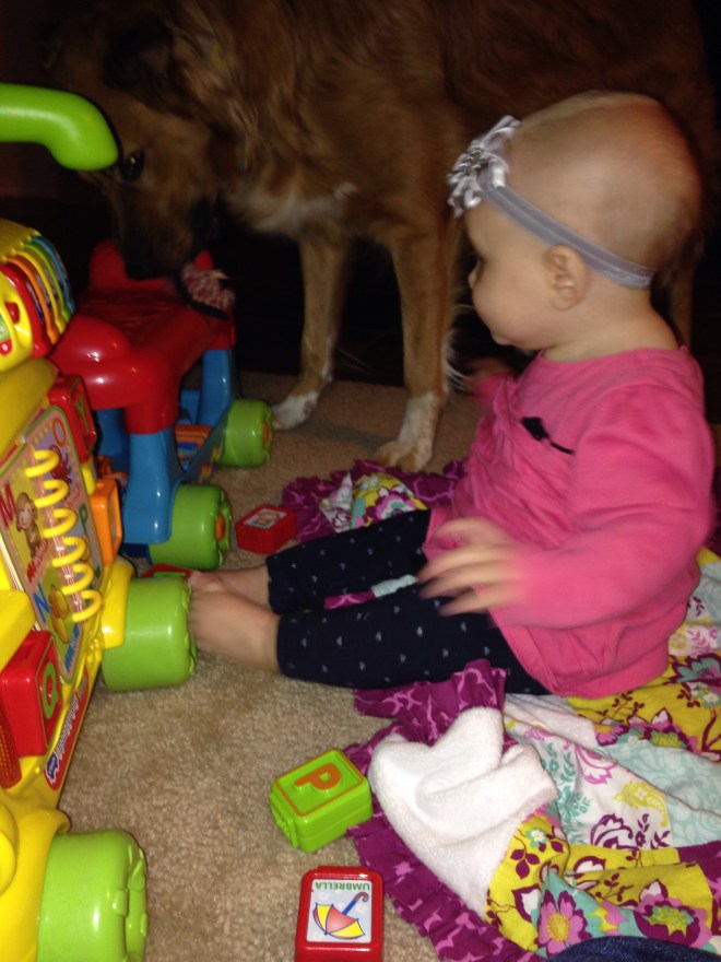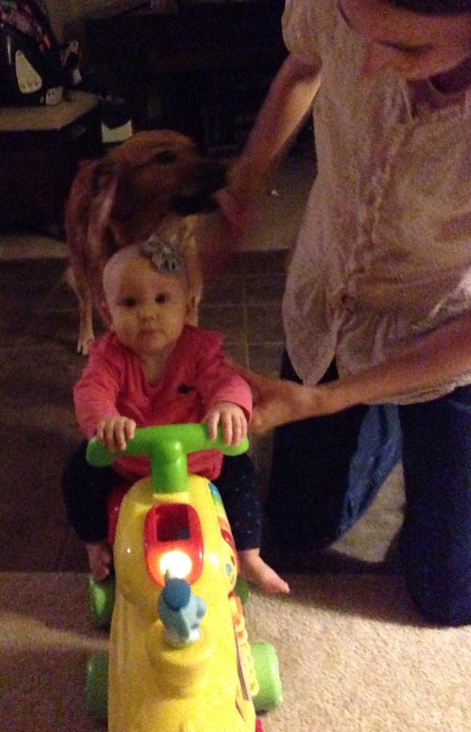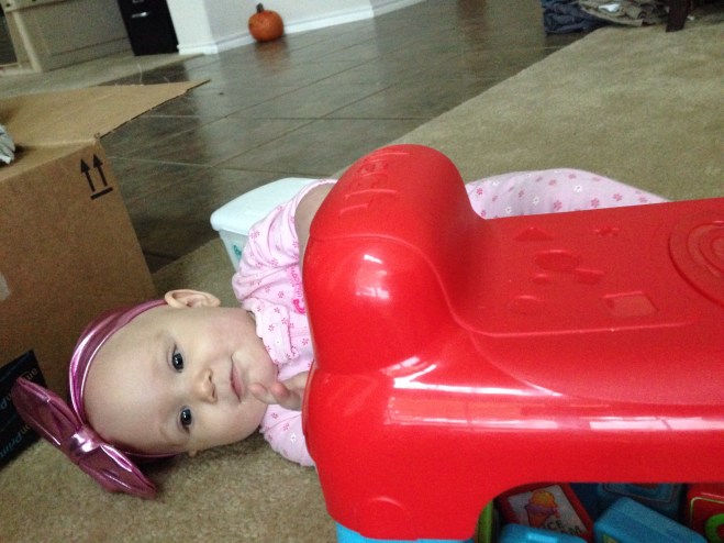 Being Sunday, it usually is pretty crazy, but we had regional conference at church. Since my vision is still shot and Lucy barely makes it through a normal church session, I decided to stay home with her. (That wasn’t before I already got her dressed.π) She looked so cute in her poofy dress. Boy, poofy is cute but restricting!