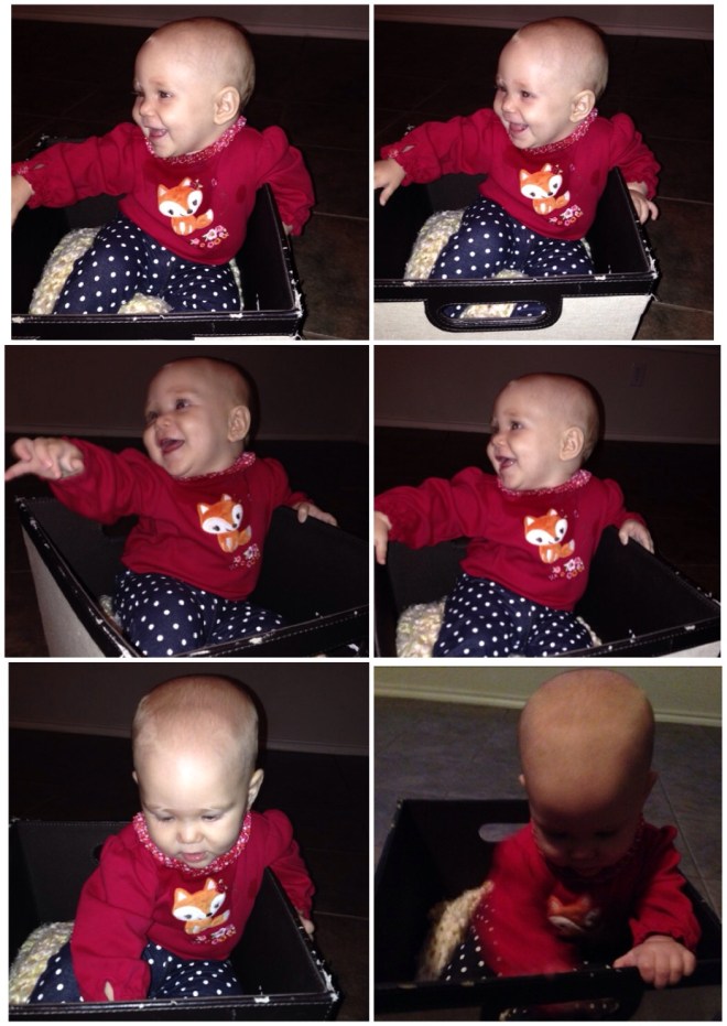 After Lu woke up from her nap, and the Tylenol had kicked in, she was so much happier. She played, and laughed, and smiled all the way to bedtime. She even enjoyed playing “Baby in a Box.” Silly girl! 😆