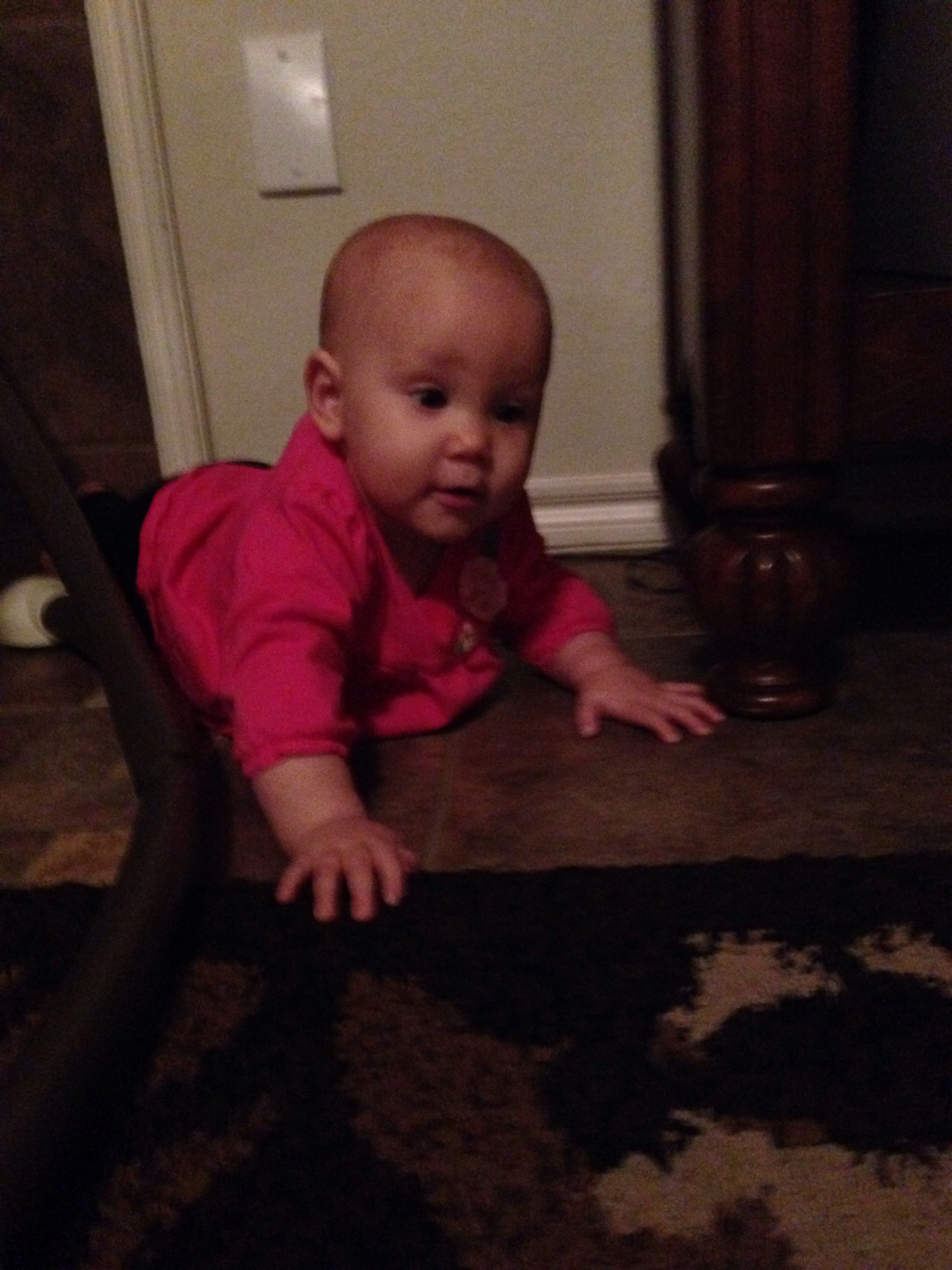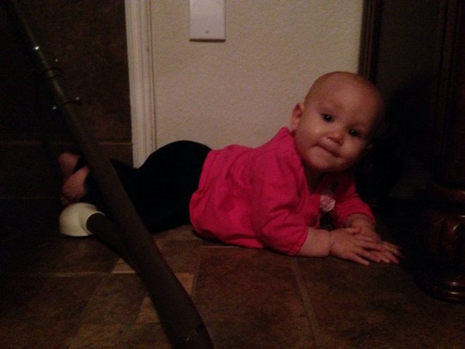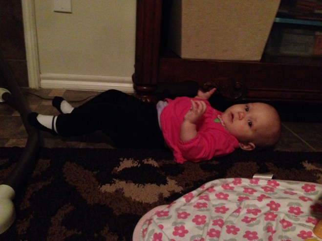 When I came home this evening, Lucy was showing off her moving skills. She has mastered backwards! She just gets so frustrated when what she wants gets further and further away. At least her tummy time is increasing a little.
