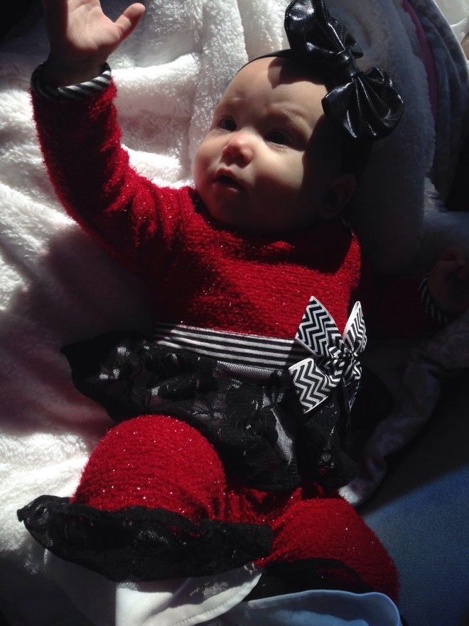 Lucy was up again most of the night las night. I was so exhausted, I missed the entire first 2 hours of church. Feeling zombified is no fun. At least Lucy was a good girl during the time we were there. Natalie picked her outfit today. π