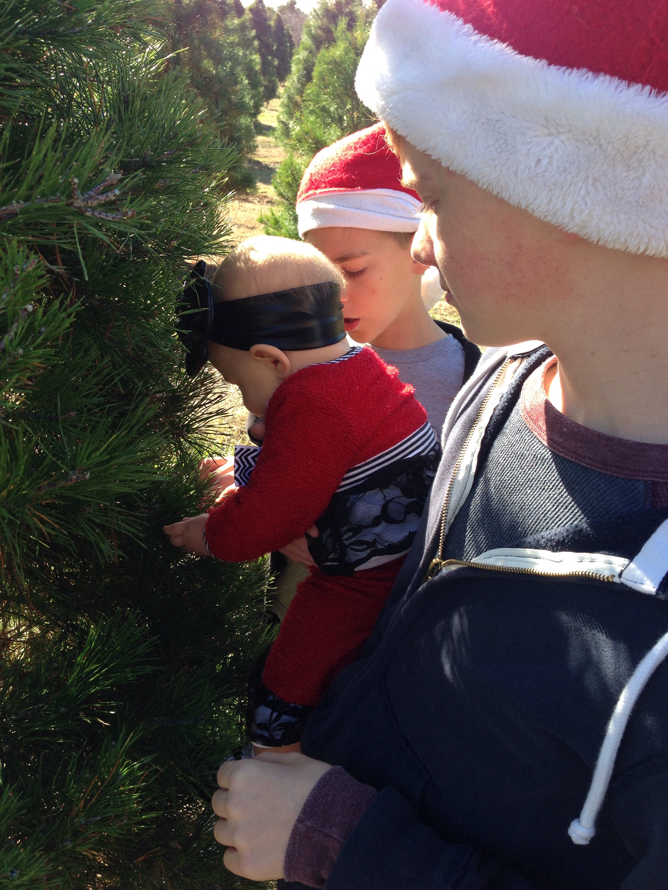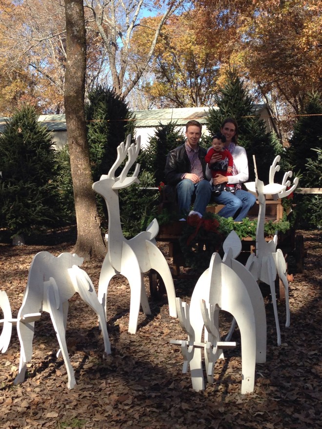 It has been a family tradition for years to cut down our Christmas tree at the local tree farms. We usually do it the weekend right after Thanksgiving. However,since it was raining so bad and cold this year, we waited a week. Lucy had a HORRIBLE night’s sleep. She would not let me or Sam lay her down at all. She would only sleep if we held her. Let’s just say it was a VERY LONG night! We ended up missing our Ward Christmas breakfast, so we just bought donuts and headed out to Wintergreen to hunt for our tree.