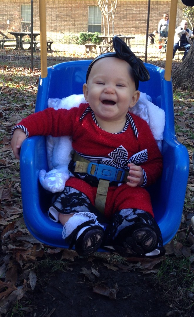 Today has been such a funny day. Lucy is a little crabby with her teeth coming in. However, a few things can really perk her up for a bit. 1. Singing her “If You’re Happy and You Know It!” She woke up around 9:30 this morning. Lately her morning diapers have weighed probably almost as much as she does. I usually like to change her immediately when she wakes up, but this morning she was screaming. I laid her on her changing table and started singing her song. She instantly stopped crying and got the sweetest expression of pure satisfaction on her face. It made my day! βΊοΈ 2.She LOVES swim class! She was very fussy off and on all morning. I was actually having second thoughts about even taking her. When I loaded her in the car she was a crying mess, but she fell asleep not long into the drive. When we got to Elmer, she woke up with a HUGE smile and kicking her arms and flinging her arms about. She knew right where we were and was very excited to be there. She did fabulous in her class, and when it was over, she had a full on conversation with her instructor, and the other class’s instructor as we attempted to leave the pool area. It was so funny! They were talking to her, and she had a lot to say back. I love this little girl so much!