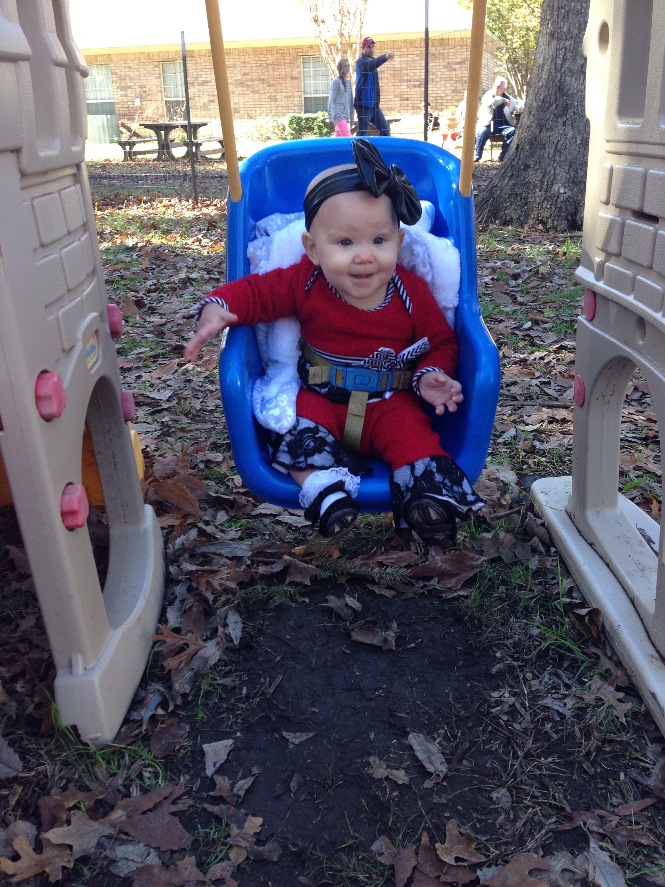 Little Miss looked just like a present ready for Christmas. π