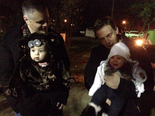 We made a horrific discovery as we were getting ready to leave for church however. We accidentally left the diaper bag, which contains my keys and wallet, not to mention all Lu’s diapers, at the tree farm in VAN ALSTYNE! 1 hour away! Ugh. After church I had to drive all the way out there to get it. I was so incredibly impressed how they handled the situation. The owner locked our bag in her home overnight, and when I came to get it, she personally walked it out to me and made me make sure it had everything still in it. She was so incredibly kind, and I am so grateful for that! When I got back home, we headed out for Waxahachie, to go to Bethlehem Revisited. This year we invited the Taylers to join us. We had a great time. The girls did remarkably well, given that it was probably one of the busiest years that we have been.