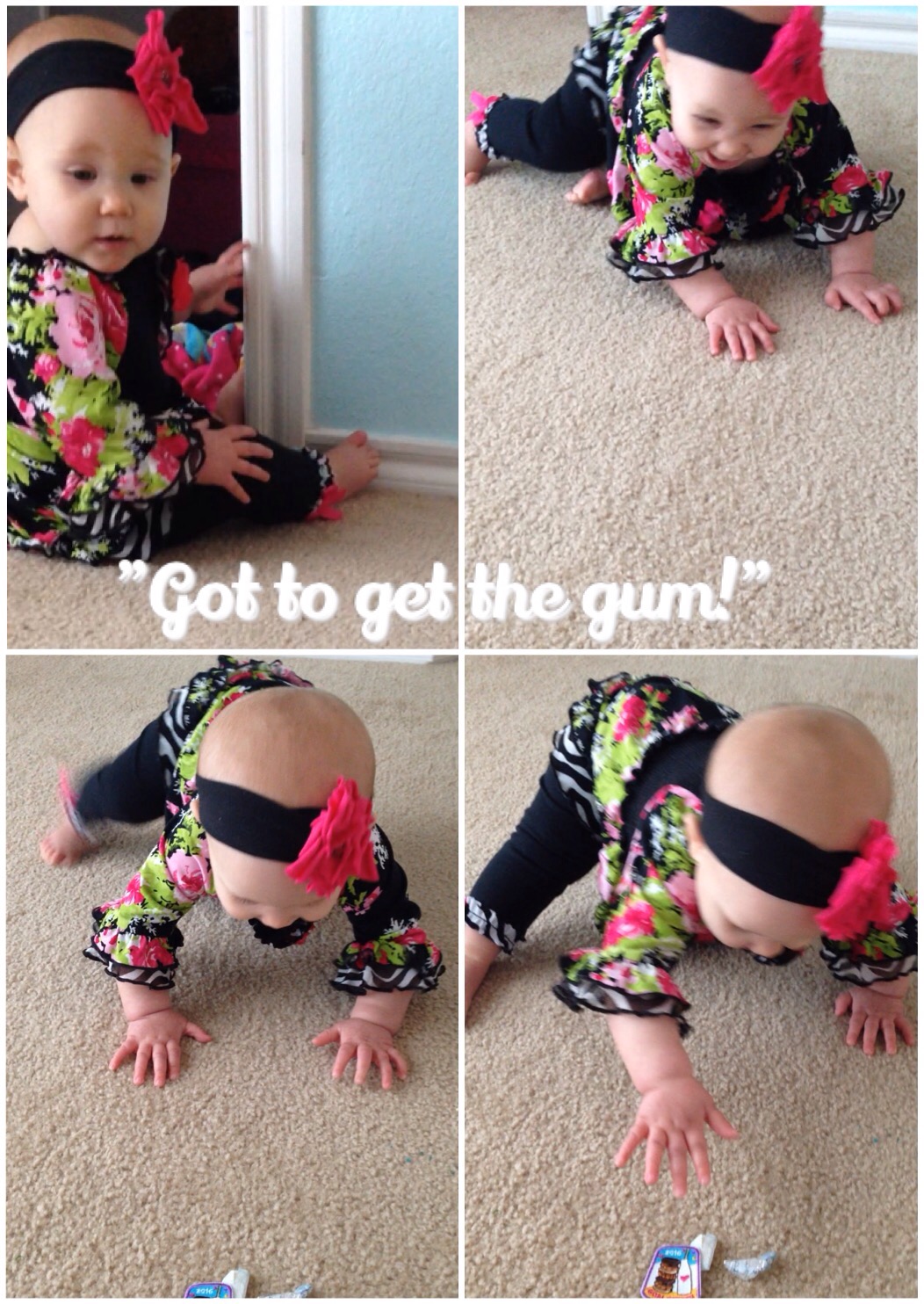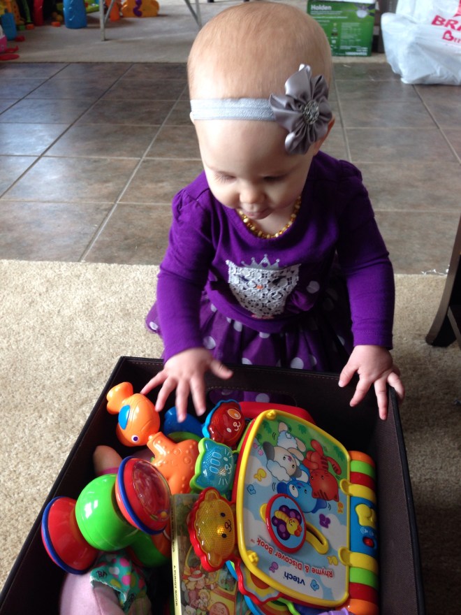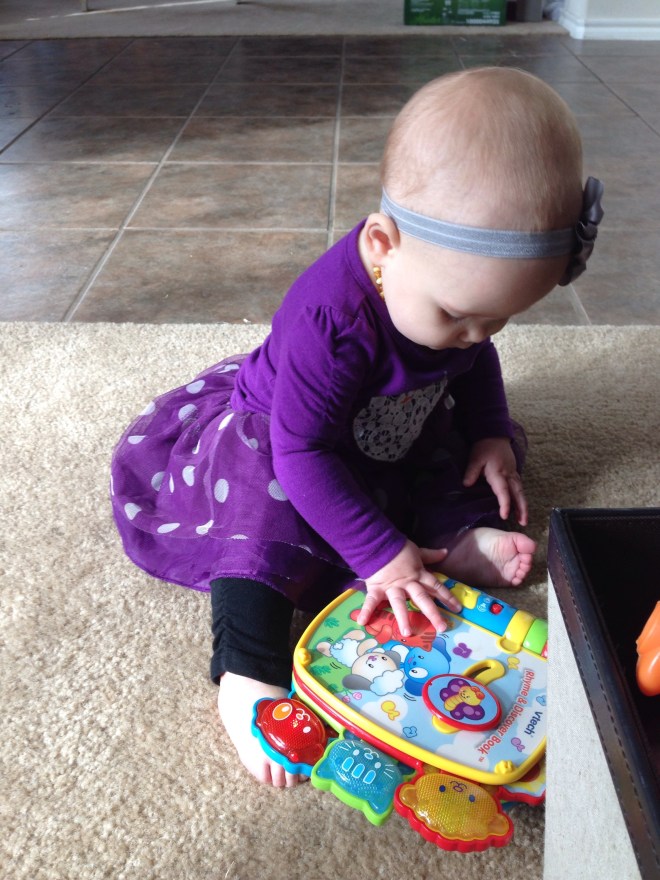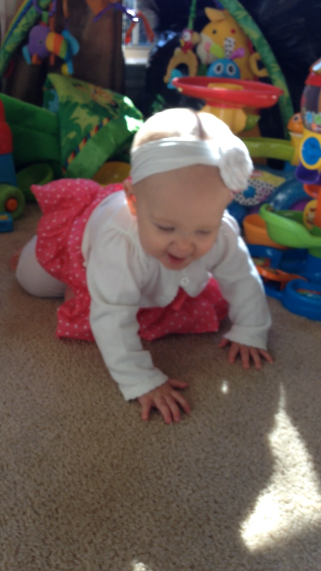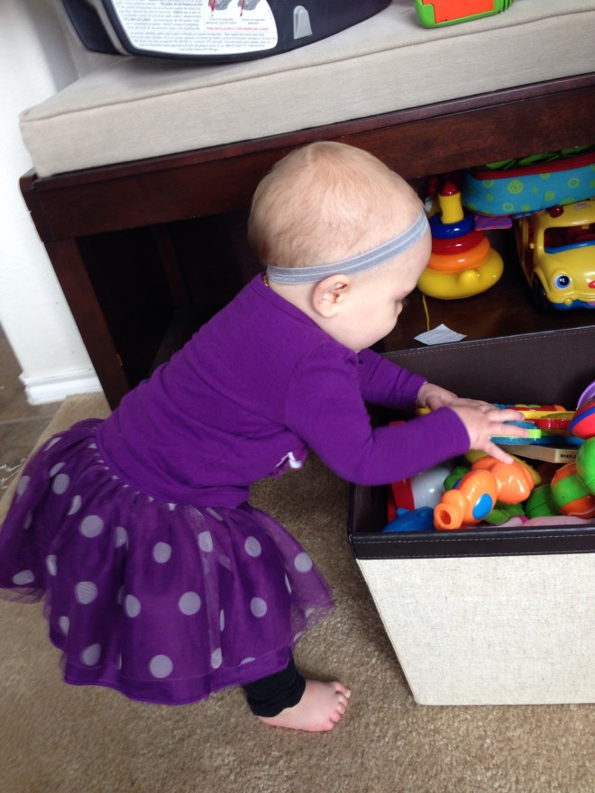 This morning I woke up and felt HORRIBLE! So much for our trip to the aquarium today, and storytime! I was not going to go anywhere! Lucy had other plans! She has finally worked out going forwards, instead of backwards. When she sees what she wants, she really knows how to get it! Today, that desired item was Natalie’s gum wrappers.