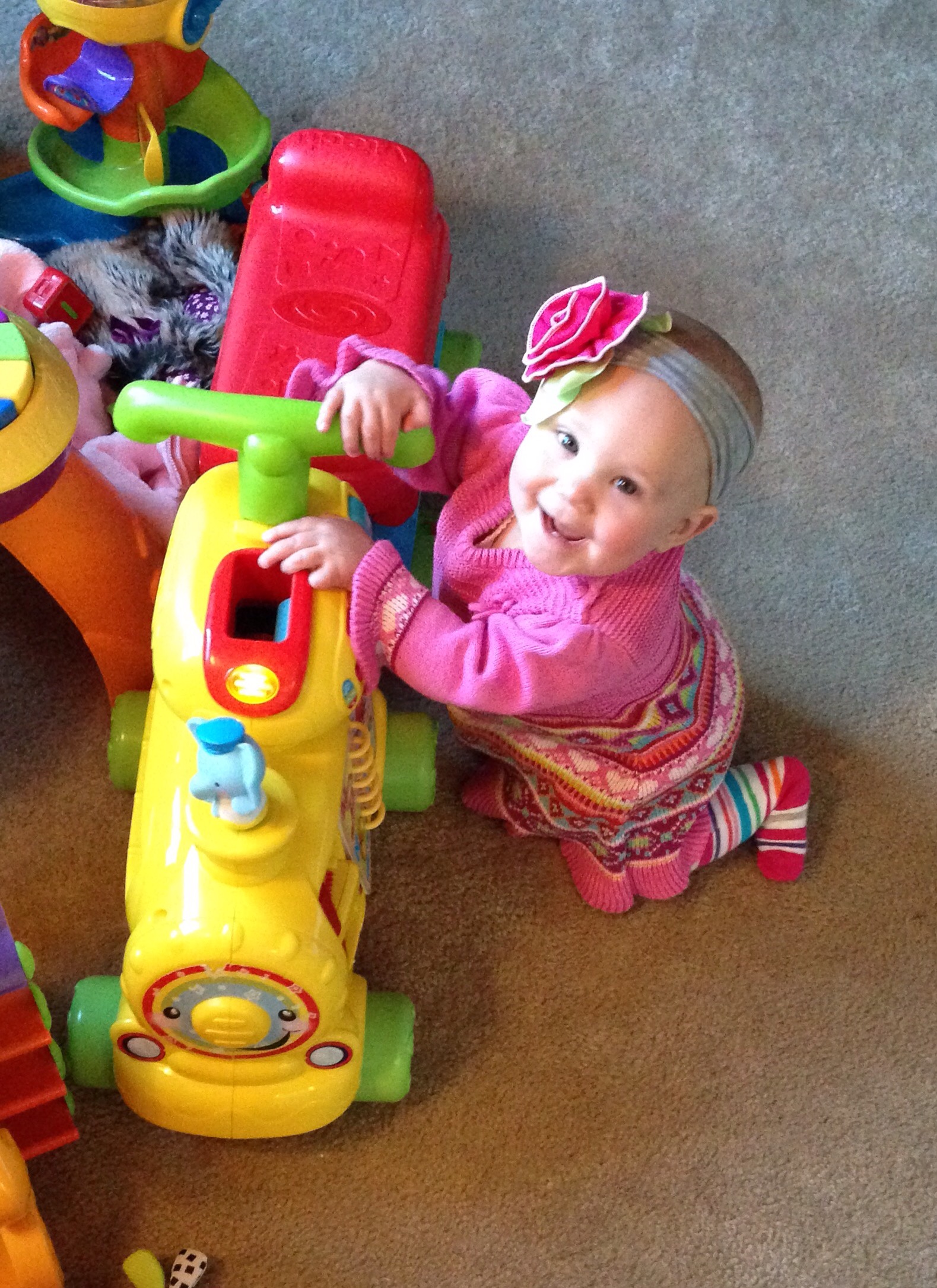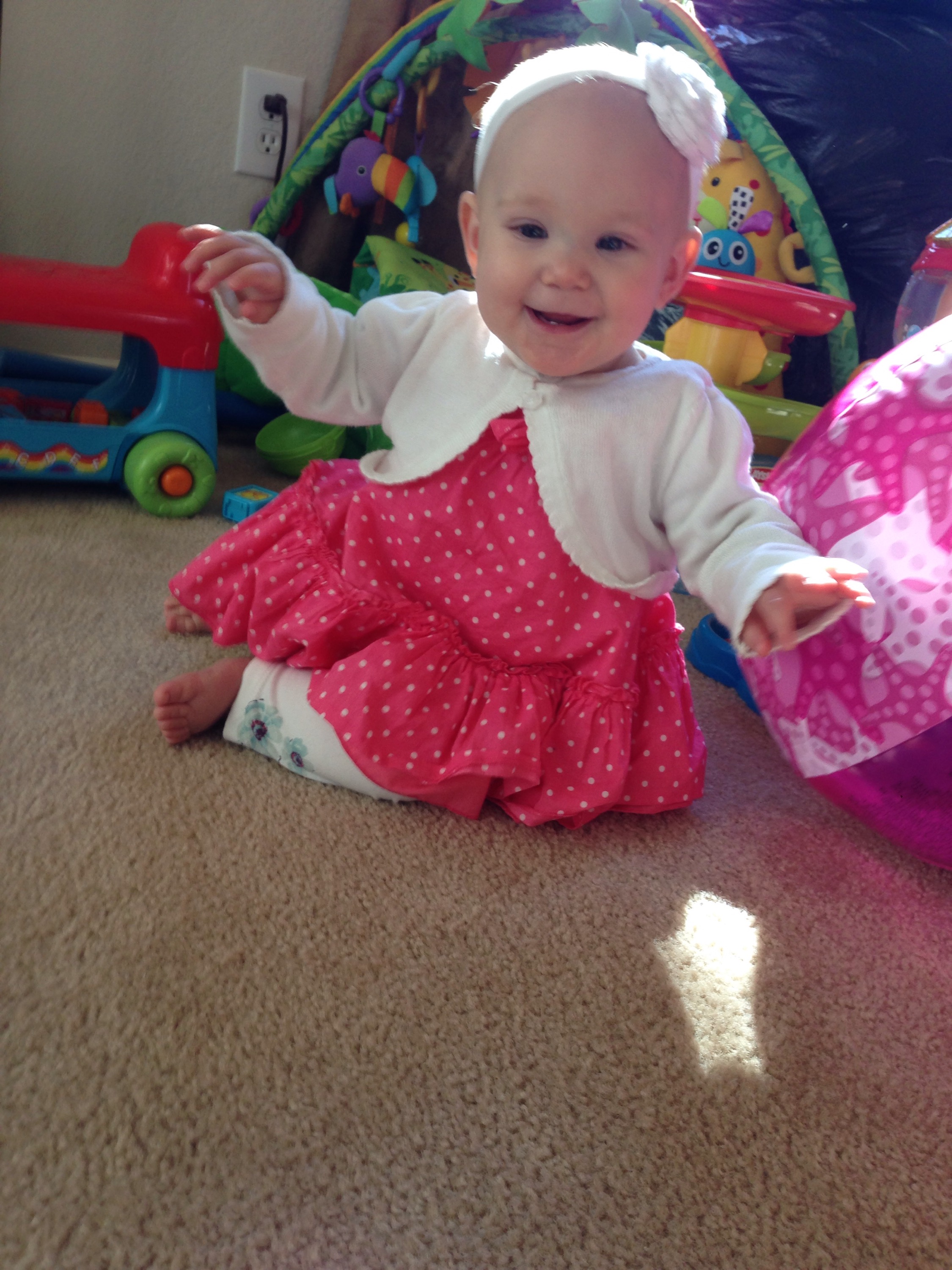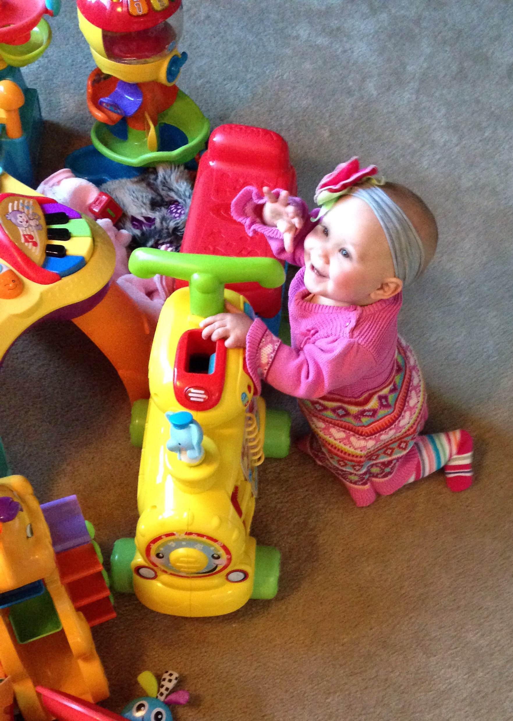 This morning I woke up and felt HORRIBLE! So much for our trip to the aquarium today, and storytime! I was not going to go anywhere! Lucy had other plans! She has finally worked out going forwards, instead of backwards. When she sees what she wants, she really knows how to get it! Today, that desired item was Natalie’s gum wrappers.