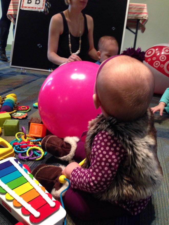 Storytime started up again today at the library. Lucy was so incredibly excited! She was squealing, talking, and shaking her hands.