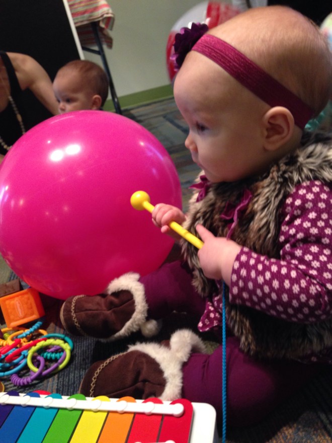 She was mesmerized by Miss Kelsey and Mrs. Debbie. They got new books, one of which was “Pat the Bunny.” I completely forgot about that book. Lucy loves it! We’ll need to try and track it down.