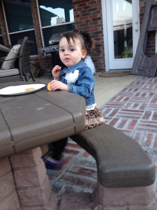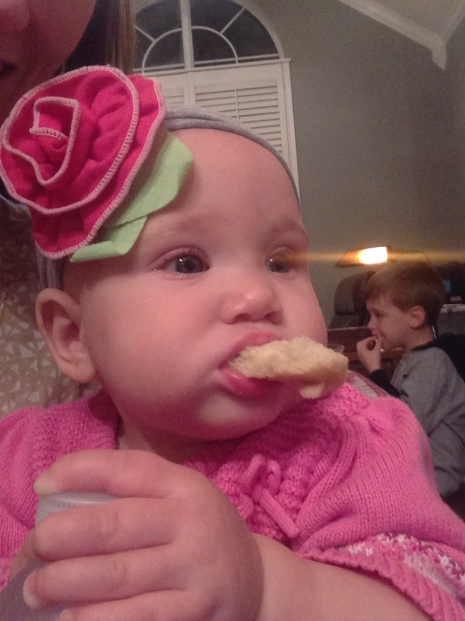 In the evening, we went over to Grandma and Grandpa’s house to celebrate my birthday. Everything was wonderful until little bit decided out of the blue that she wanted Grandma’s soup and stuck her hand in the hot bowl. Barbara felt horrible. We rushed Lucy to the sink, ran her hand under cold water, and then gave her a cold water bottle to hold. She was fine. I think it shocked her more than anything.
