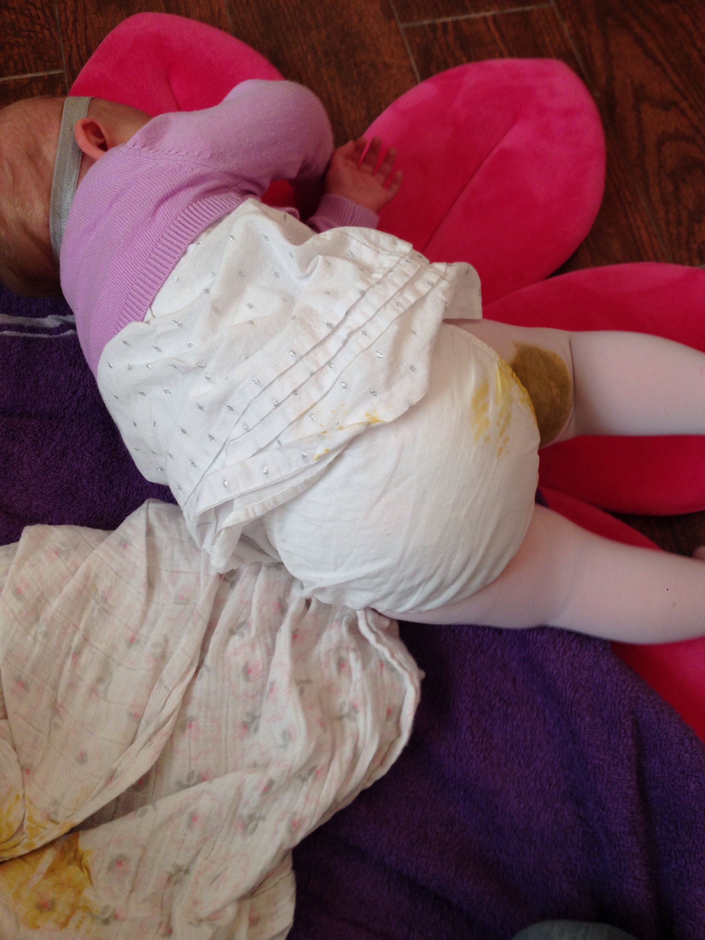 She needed a bath! After getting her all cleaned up, I nursed her and she fell back asleep. She was much happier after she woke up. βΊοΈ