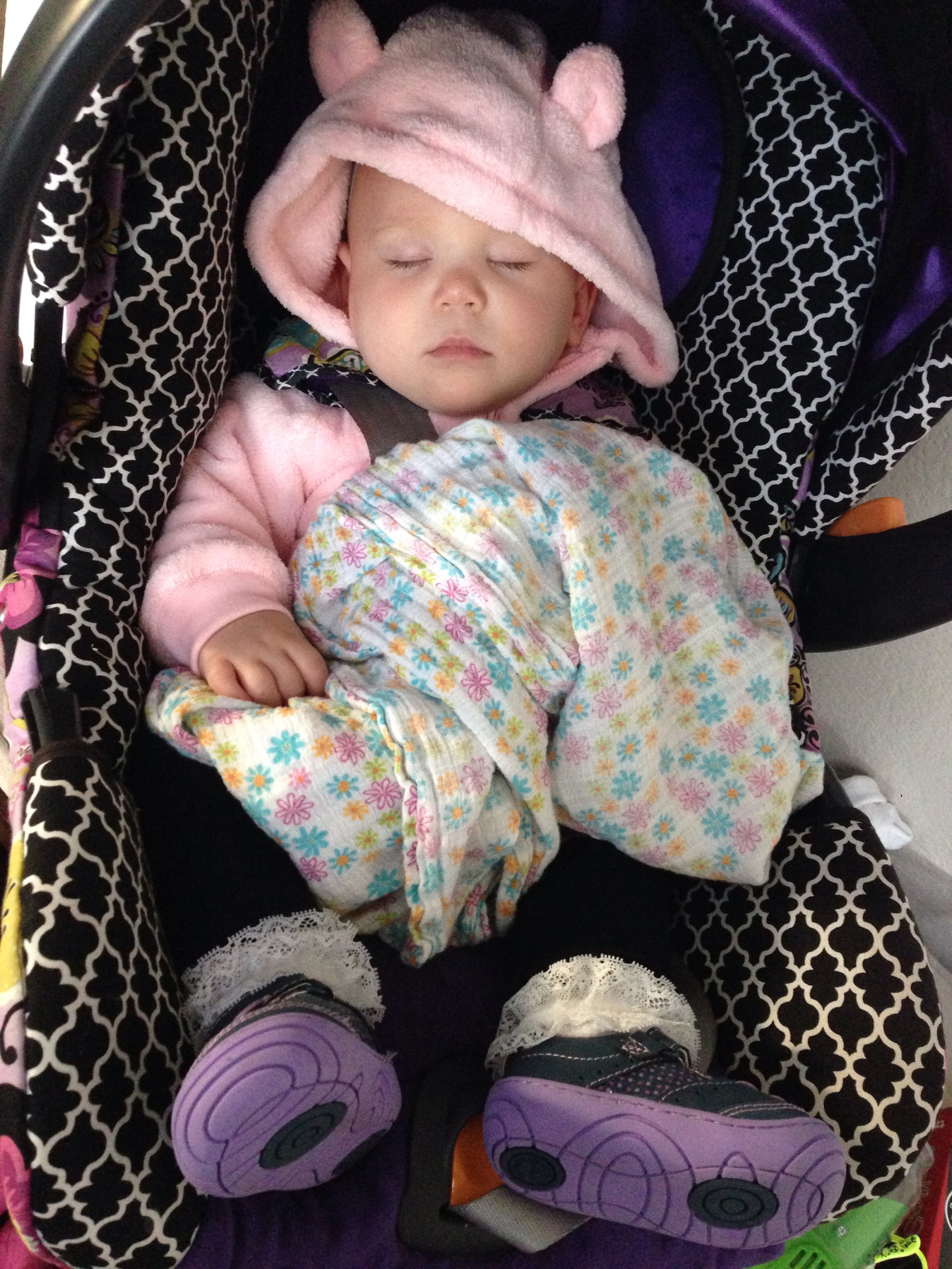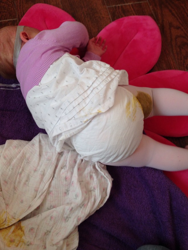 Of course she would fall asleep in her car seat on the way home though. I tried to let her sleep a little, but couldn’t handle the thought of knowing she was so messy, and woke her up. She was not happy.