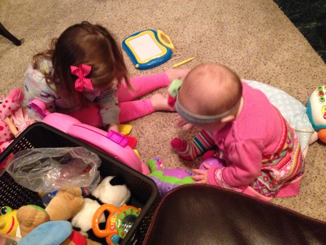 Lucy loves to play with Quinn. Quinny is so sweet with her. She is just like a little mommy.