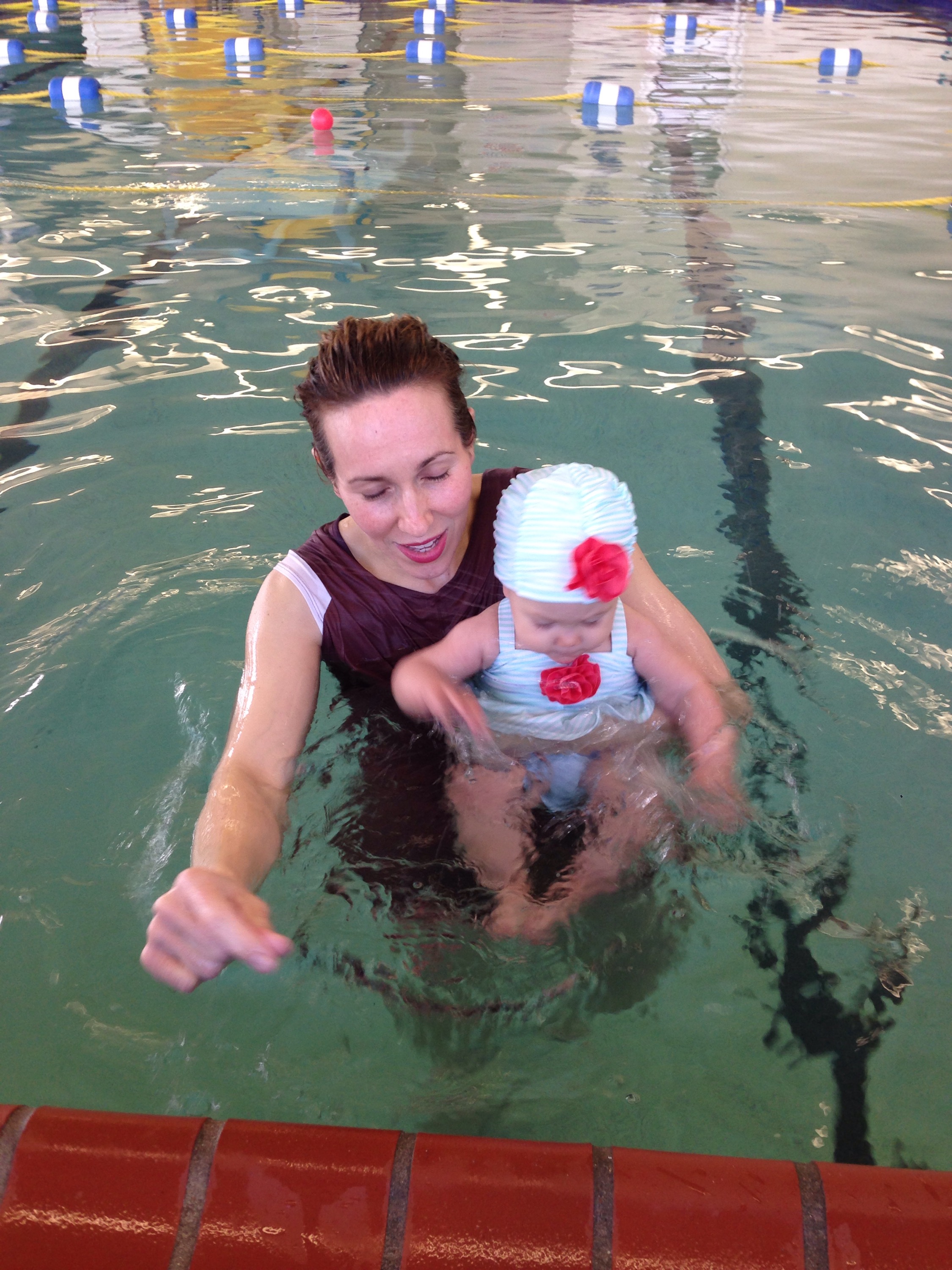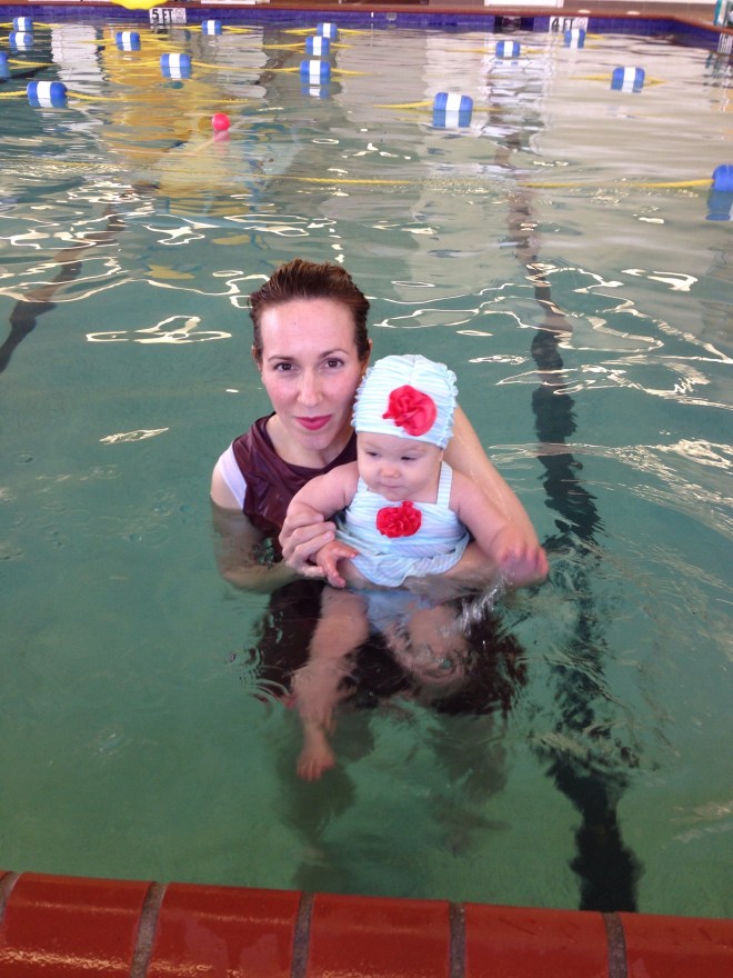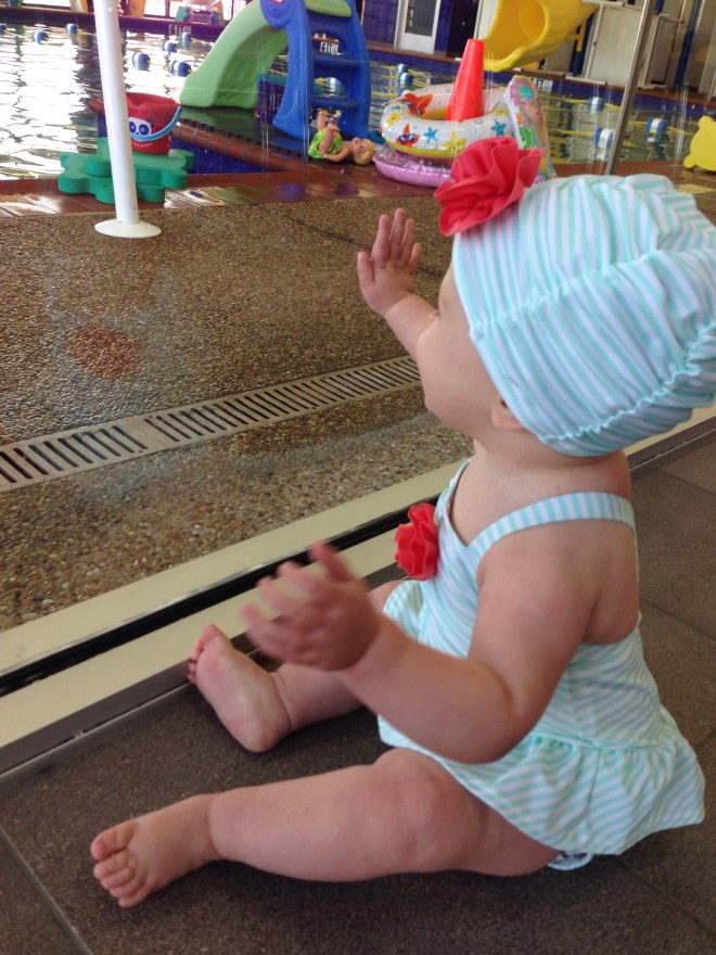I LOVE the smiles I get from Lucy when she realizes I am next to her when she wakes up. Lucy had her last day of Bathtime Babies at Elmer today. Since she woke up at almost 10:00, we had to hurry, get dressed, and head out the door to swim.