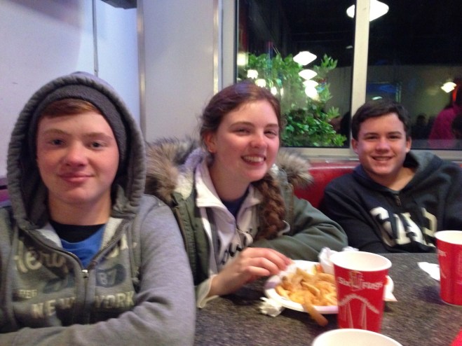 While the big kids went for some more rides, we made silly faces in the warmth of Jonny Rockets.
