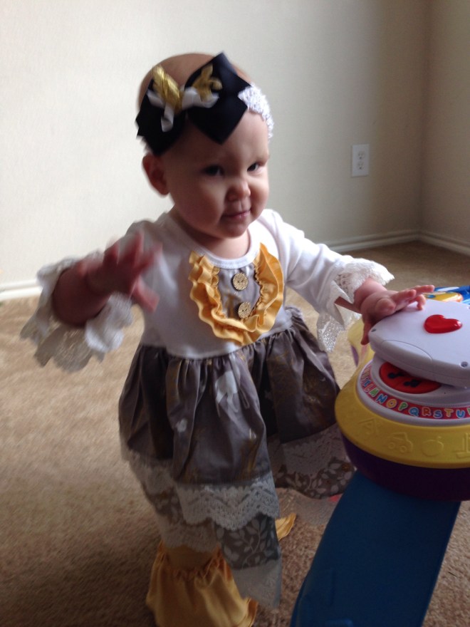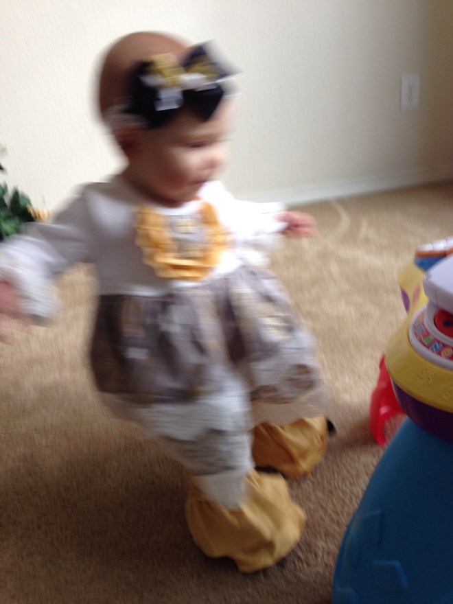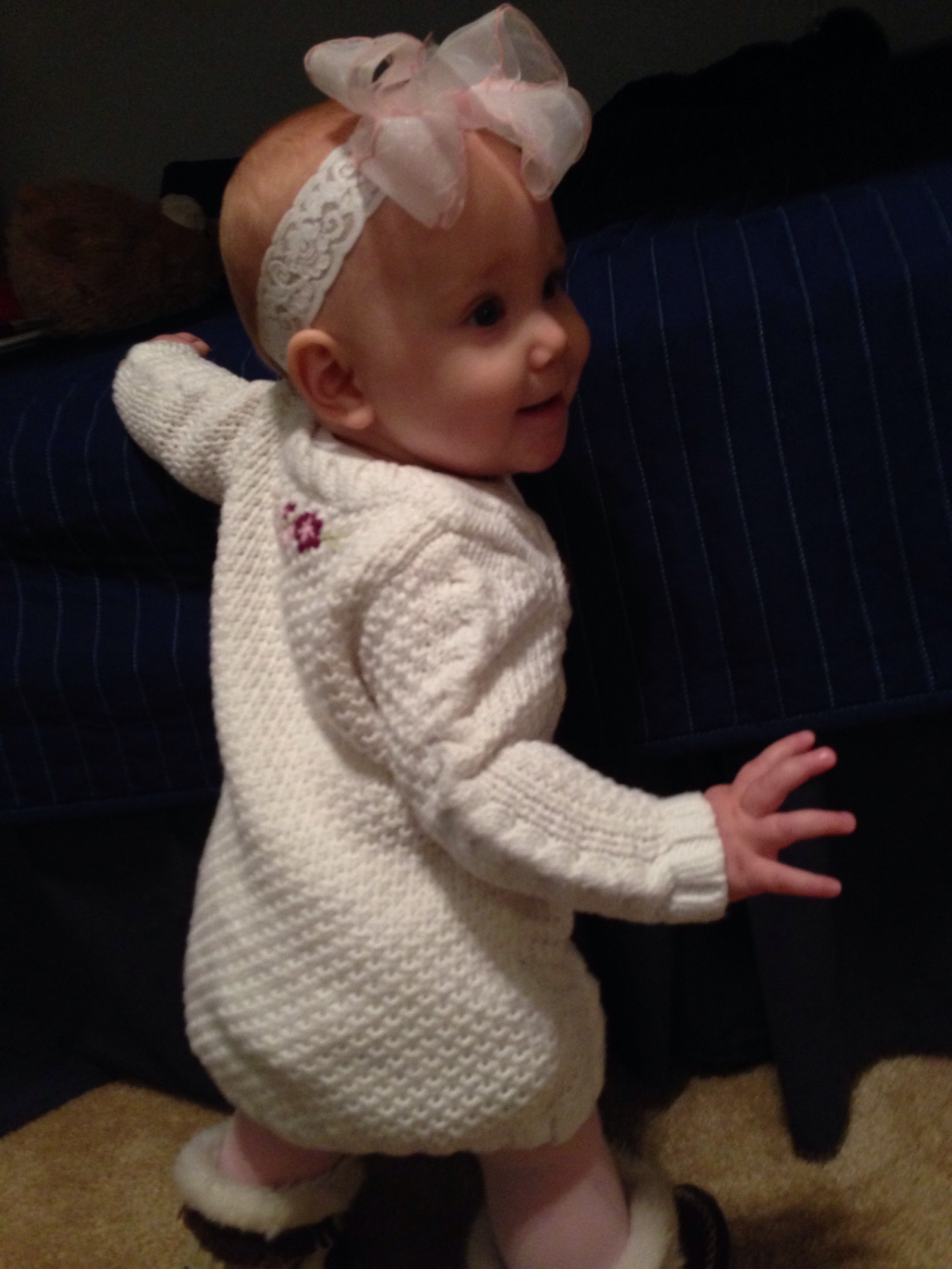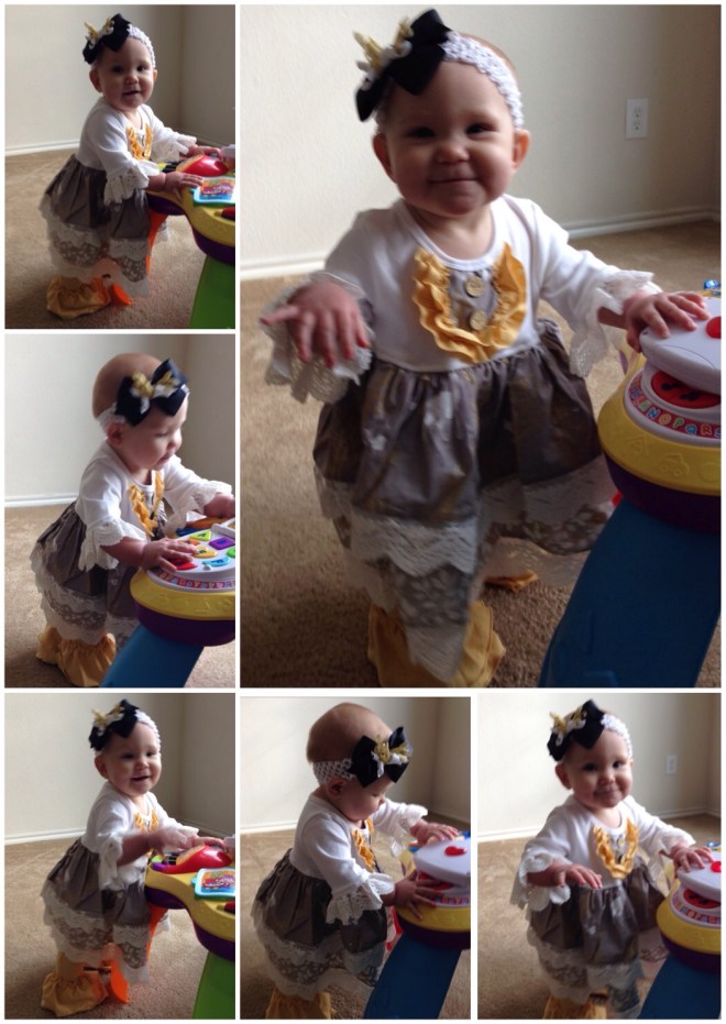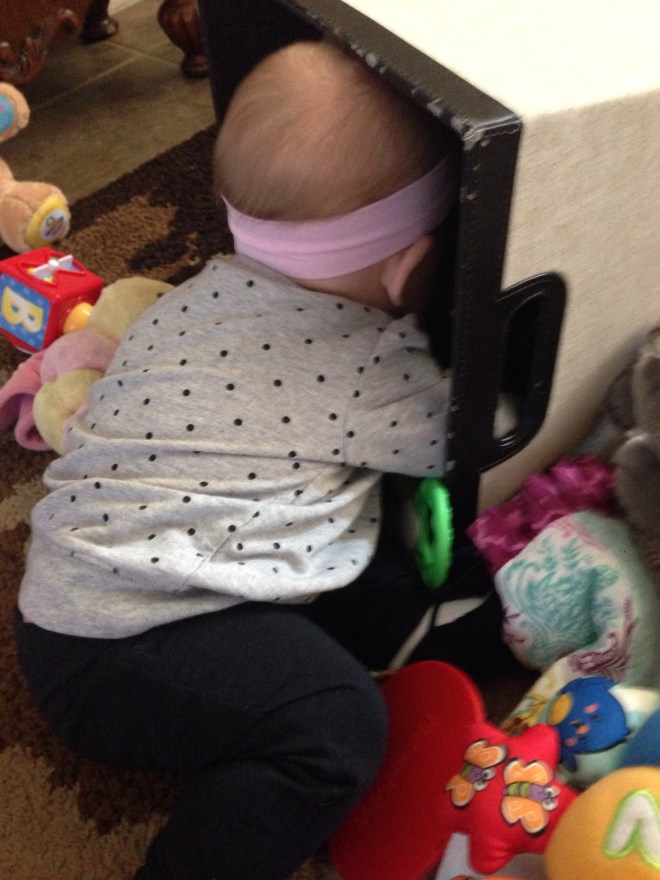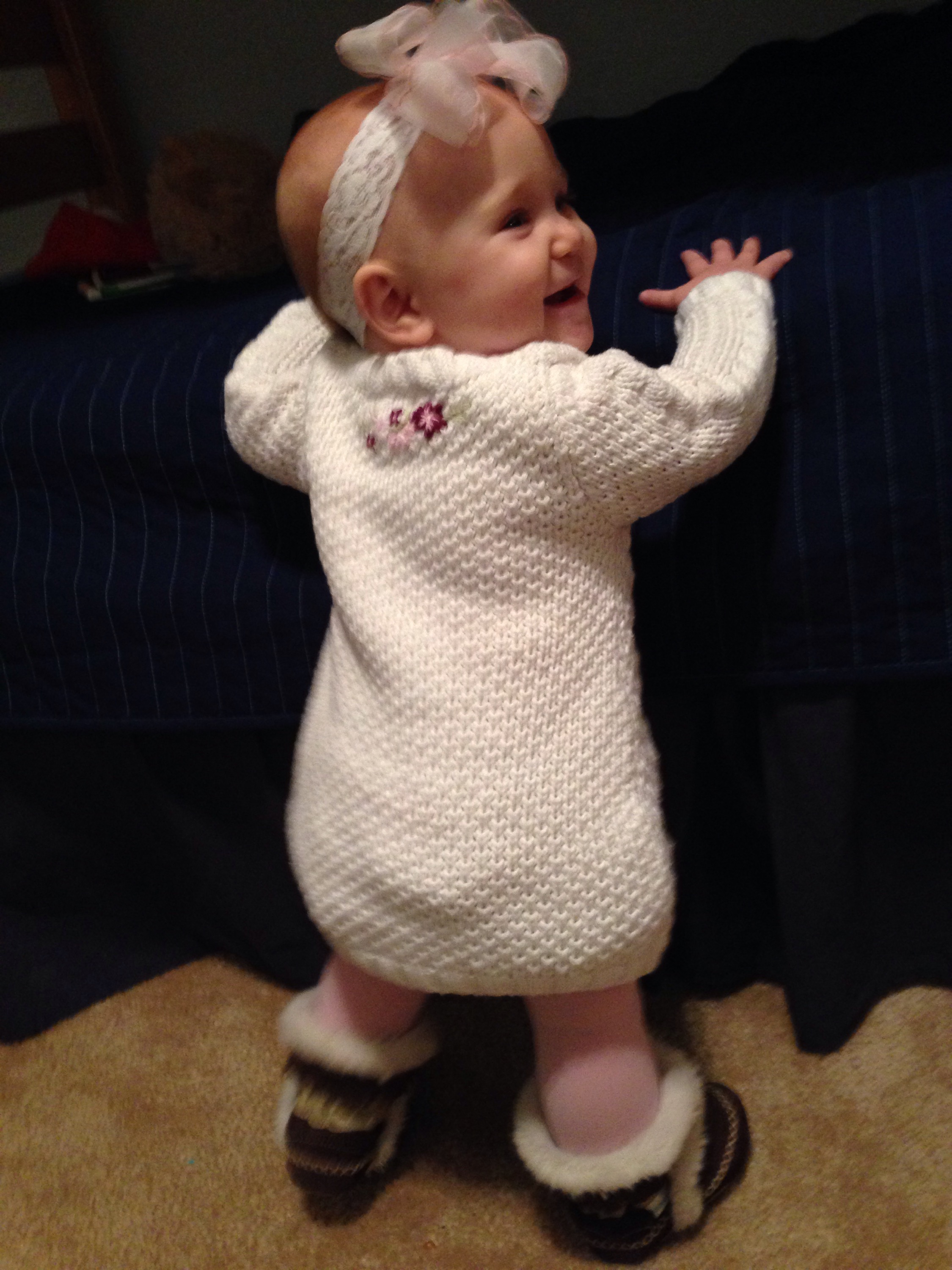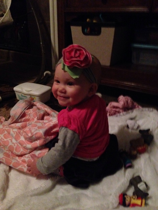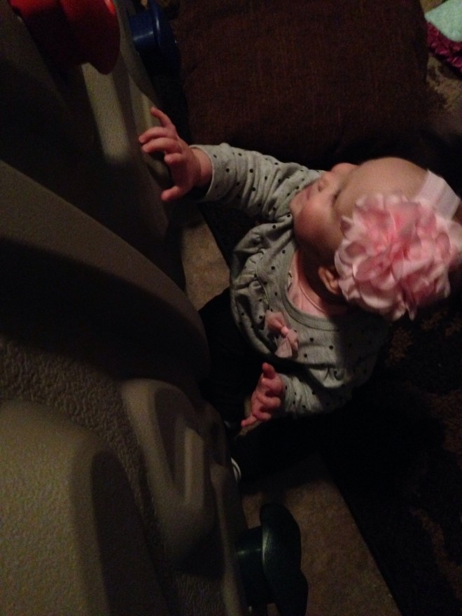 Her new “trick” the past few days has been to let go while standing to see what happens. She is really going to prove to us that she will NOT crawl, but walk instead. She thinks tummy time is for babies, and she is a BIG girl. π